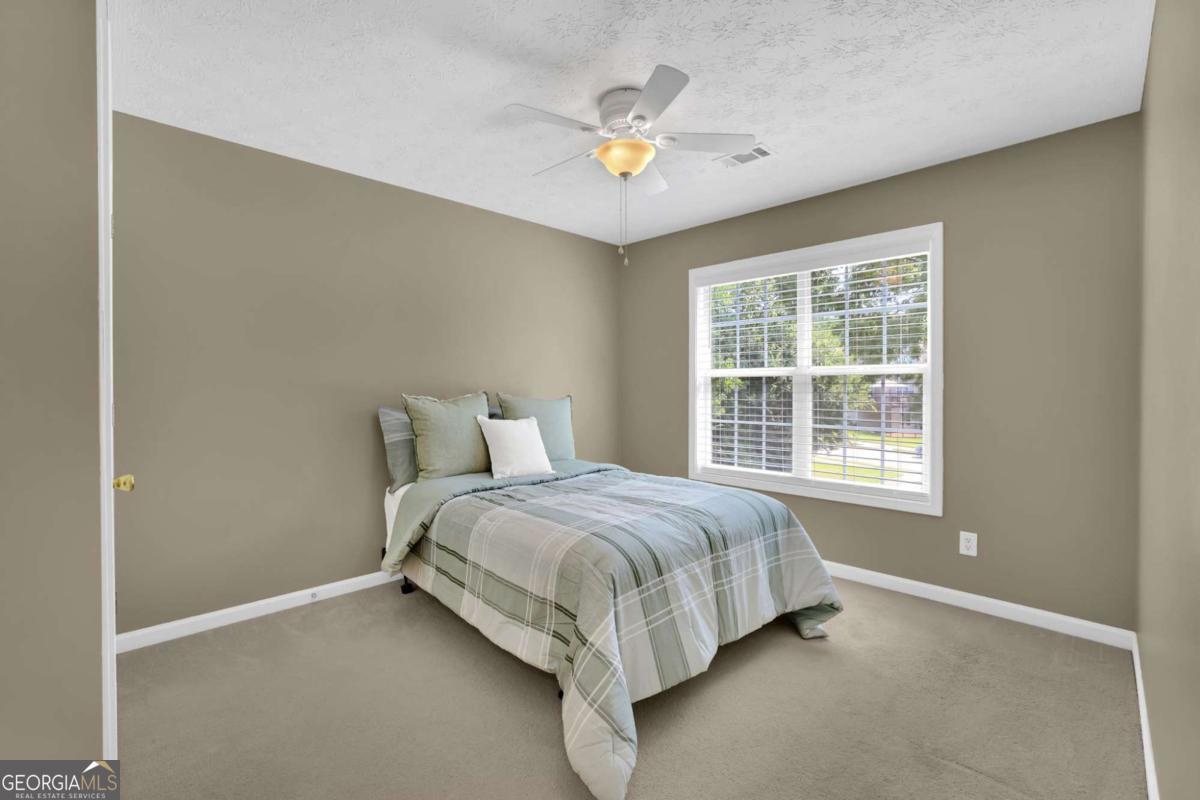 Inviting 4BD/2.5BA in Hamilton Fields - Seckinger HS Zone! Welcome to this immaculate home in highly sought-after Hamilton Fields. Soaring vaulted ceilings and abundant natural light create an inviting atmosphere. The open-concept living space is perfect for entertaining. Fresh paint throughout, including the garage! The kitchen features ample countertop space and stainless steel appliances with eat-in or counter seating options. There is a separate dining room with a bay window for gatherings. The main level includes a flexible space ideal for a home office, playroom, or exercise area. The upper level primary suite is a large retreat with a connected bath, dual split vanities, a separate shower, and a garden tub. Three additional large bedrooms and a full bath complete the upper level. Step outside to a LARGE lush green lawn, perfect for play, relaxation, or a potential pool/garden. This is an ideal setting for barbecues, fire pits, and outdoor gatherings. Neighborhood amenities include a swimming pool, playground, tennis courts, and baseball field. The HOA hosts many events throughout the year. Conveniently located minutes from the Mall of GA, Costco, Lake Lanier Islands, I-85, I985, this home combines modern comfort, functionality and an unbeatable location. Don't miss this move-in-ready gem!
