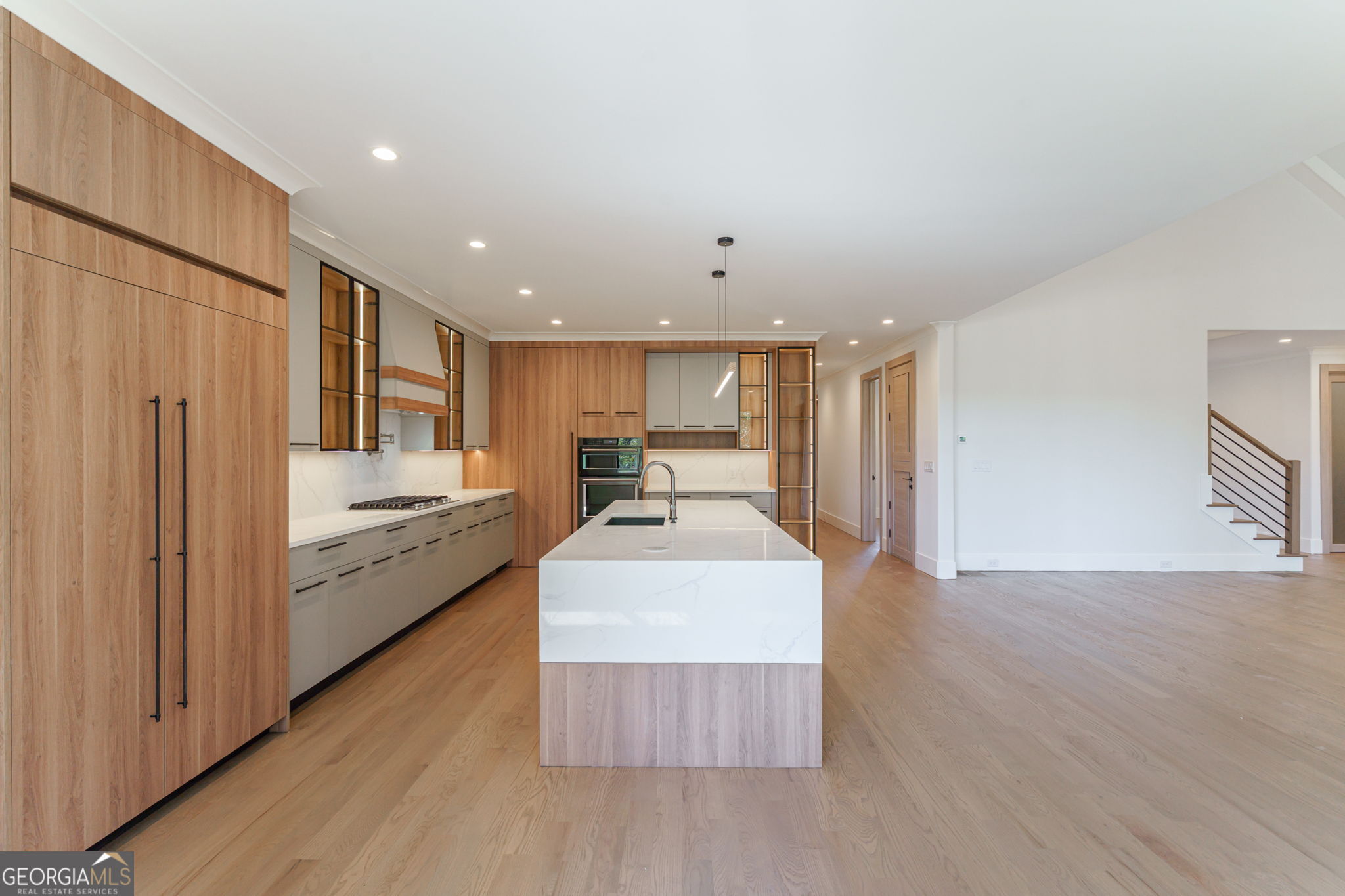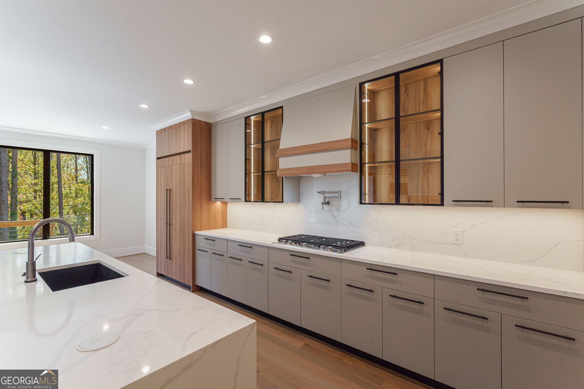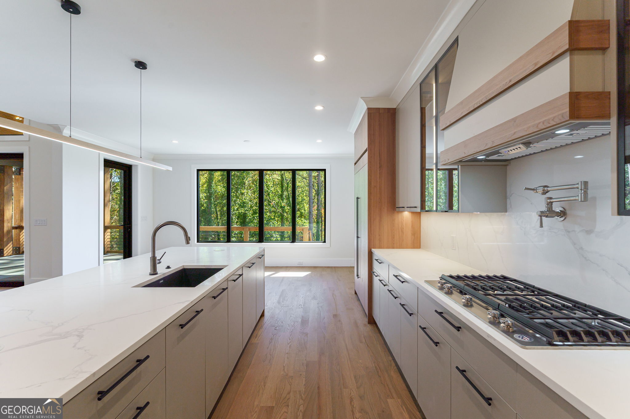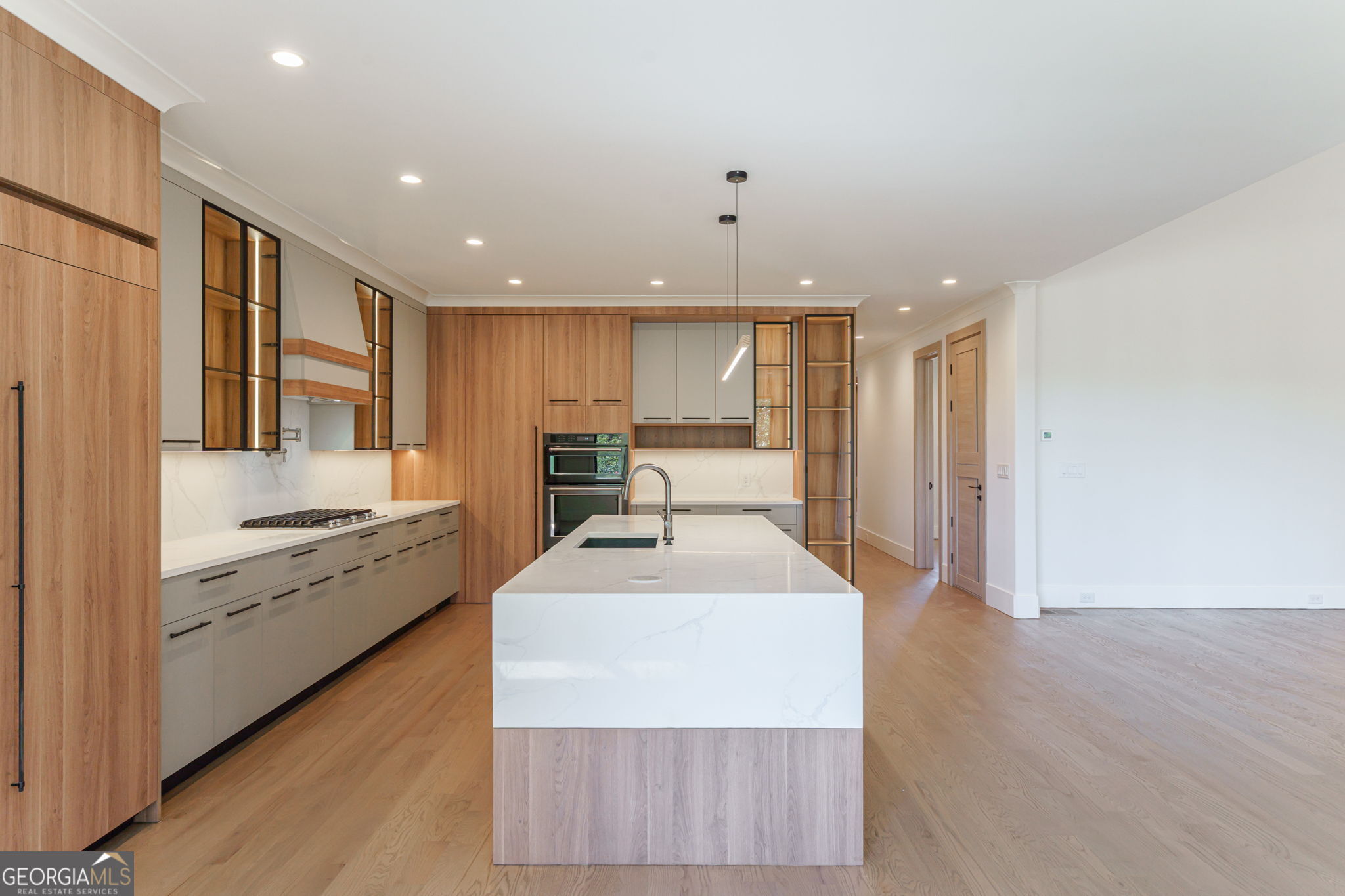 Hurry - Last home in this exclusive enclave! Exquisite Estate - Unparalleled Luxury, Prime Location. Step into a world of refined elegance with this masterfully designed estate featuring 4 bedrooms, 2 bonus rooms/office, 4 bathrooms, a kitchen and a kitchenette upstairs, and a full unfinished basement ready for additional bedrooms, offering 4,300 sq. ft. of finished living space with an additional 2,200 sq. ft. unfinished terrace level (6,500 sq. ft. total). Ideally located just steps from Mary Alice Park, the public beach, and boat ramp, and only one mile from downtown Cumming, this residence perfectly combines serene lake living with effortless convenience. Sidewalks lead directly into Mary Alice Park, making lakeside recreation just a short stroll from your front door. Impeccably crafted with 4-sided brick, hardboard siding, and energy-efficient European windows and doors, this home exudes timeless sophistication. The main level showcases soaring ceilings, gleaming hardwood floors, and a thoughtfully designed split-bedroom layout, with the primary suite privately tucked on one side and an additional bedroom and bathroom on the other. The owner's retreat features vaulted ceilings, oversized windows, and a spa-inspired bath with an elegant tile shower, integrated lighting, dual vanities, custom shelving, and a spacious walk-in closet that connects directly to a luxurious laundry room. A wall of windows opens to the expansive front porch, perfect for enjoying the breeze or entertaining, with room for a TV, grill, and lounge area. Upstairs, discover 2 additional bedroom with private bathrooms, a large office, and a second kitchenette, ideal for guests or in-laws, providing comfort and privacy for everyone. The grand unfinished basement offers endless possibilities, with rough-ins for an additional bedroom, a kitchen with island, a full bathroom, and a half bath - perfect for a home theater, gym, or recreation space. Step outside to the lower-level patio and fenced backyard, ideal for outdoor entertaining, play, or a future pool. Additional features include a concrete driveway with a 2-car garage and high-end finishes throughout, creating a harmonious blend of luxury, function, and lifestyle in one remarkable estate. Come view today!