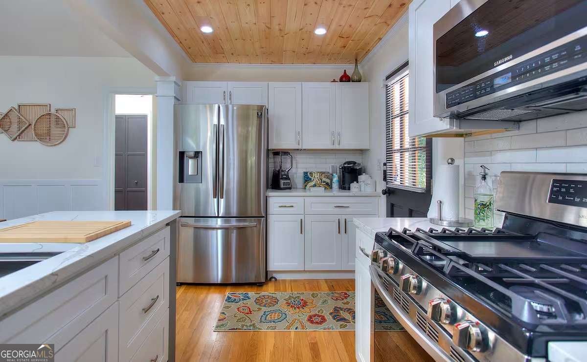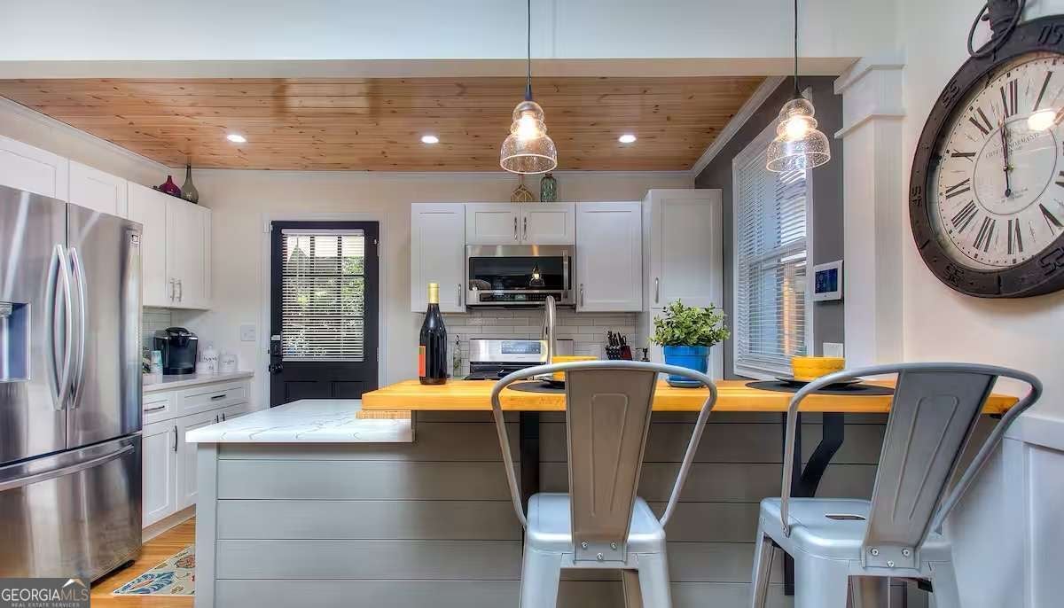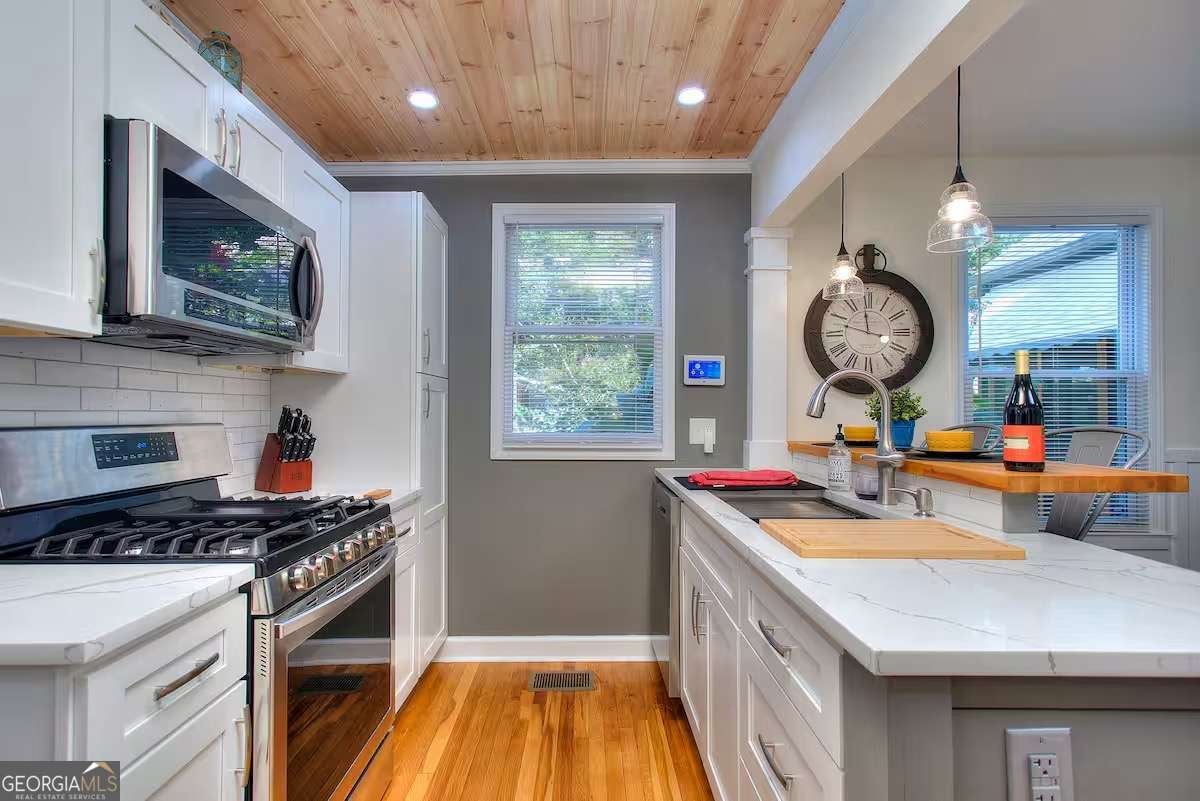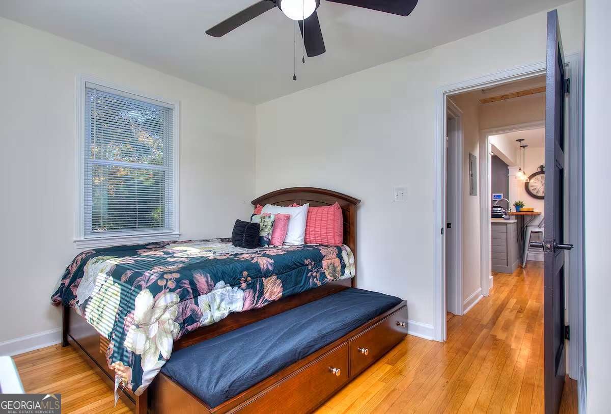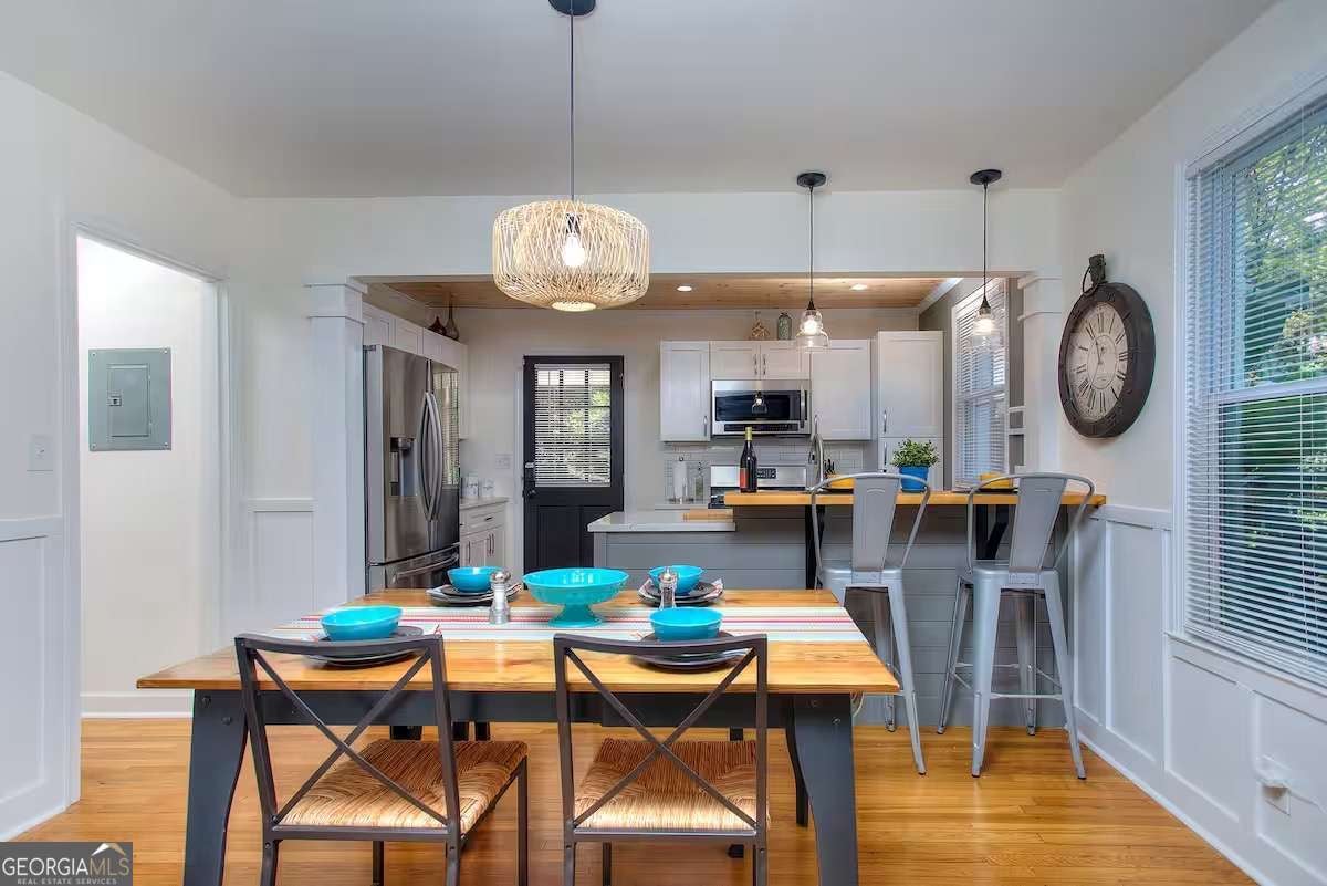 Furnished. Welcome to The Mill House, a charming 1946 renovated brick bungalow in the heart of Hapeville, where character and coziness come together to create the perfect pet-friendly retreat. This 2-bedroom cottage offers a relaxing, home-like stay with spa amenities available. From the moment you arrive, you'll feel at ease in a space where modern comforts blend seamlessly with classic details like original hardwood flooring and wainscoting. Inside, the spacious living room features a fireplace and flows effortlessly into a screened-in patio with hanging hammock chairs - a perfect spot to enjoy your morning coffee or unwind in the evening. The newly renovated kitchen boasts quartz countertops, stainless steel appliances, new cabinetry, and a convenient breakfast bar for casual dining, while a separate dining room provides a traditional space for meals or game nights. The home is fully stocked with everything you need, including toiletries, cleaning supplies, emergency essentials, and all the cookware and appliances for a hassle-free stay. For entertainment, relax with Netflix, Hulu, or cable TV, enjoy over 15 board and card games, or get creative with the giant Scrabble wall. Step outside and discover a lush perennial garden that feels like a hidden oasis. Relax in the outdoor hammock or host friends and family on the patio off the kitchen. For the ultimate treat, indulge in the hot tub/spa, available for an additional fee (contact the host for special offers). A covered parking area accommodates up to 3 vehicles - a rare feature in this area! Located in Hapeville, a City of the Arts, the home is less than 7 miles from downtown Atlanta and just 5 minutes from Hartsfield-Jackson Atlanta Airport. Walk to local restaurants, the historic Academy Theatre, and other nearby attractions. With easy access to major interstates, exploring the area is effortless. Fully furnished for short, mid or long term lease. Rates subject to change based on length of stay and occupancy. Please note, utilities are the responsibility of the tenant.Please contact for showings.