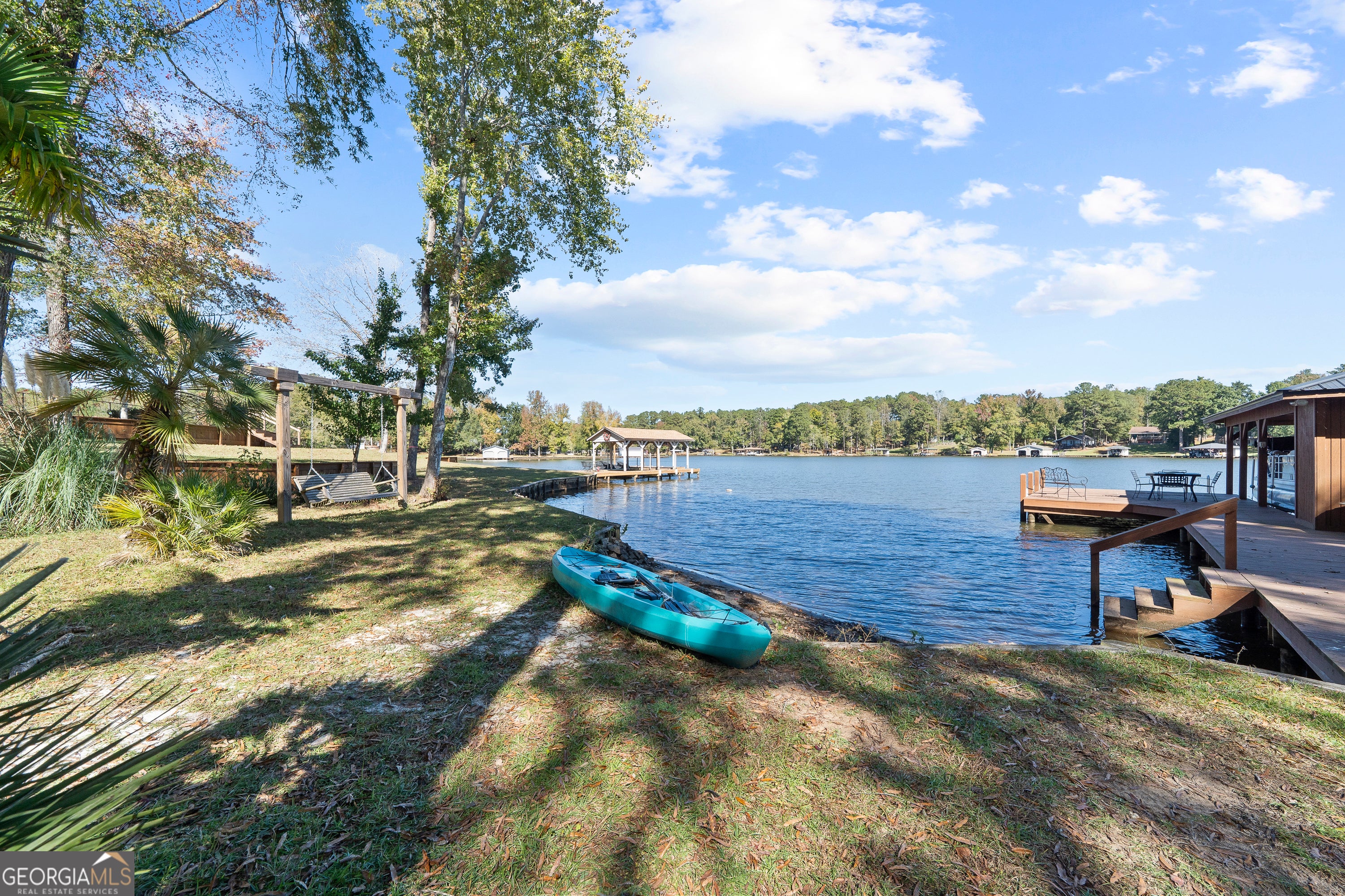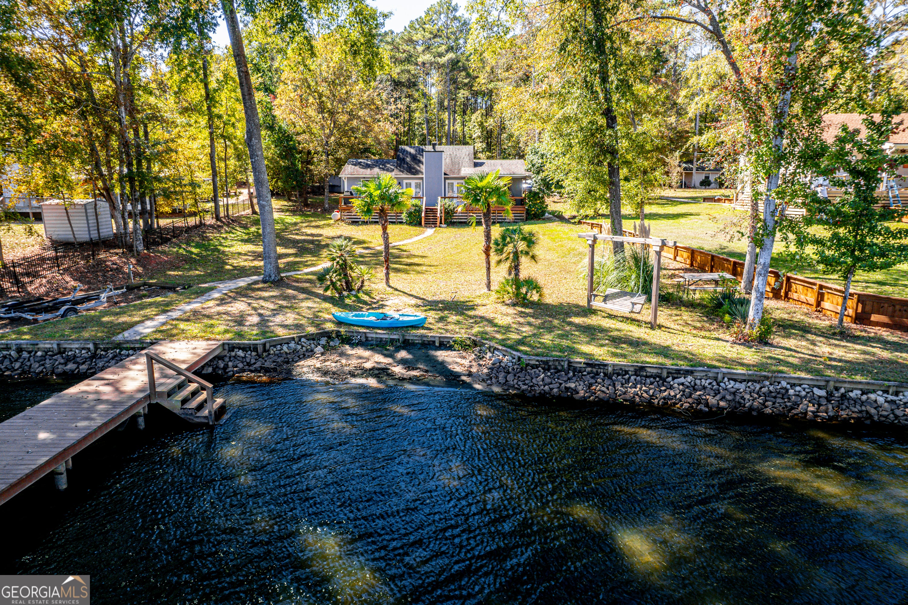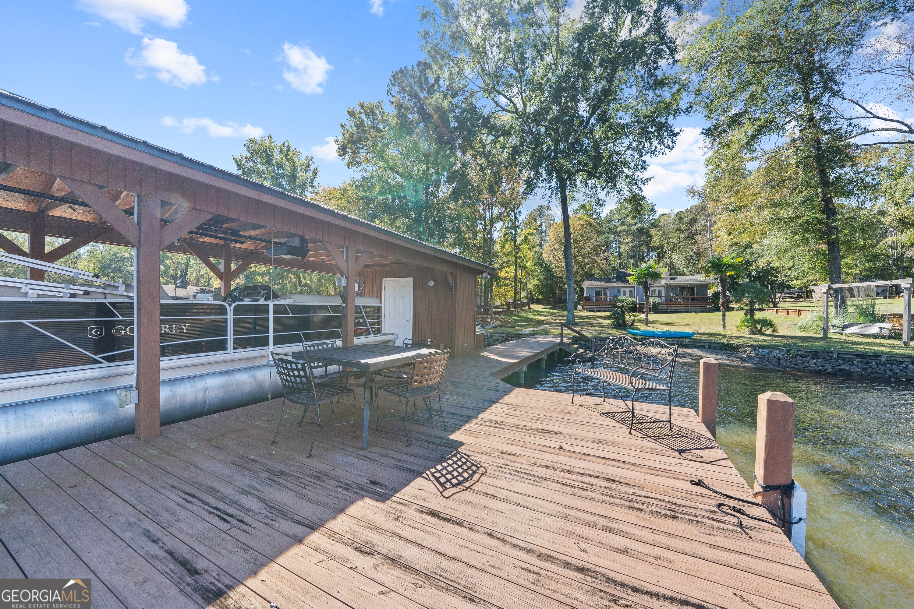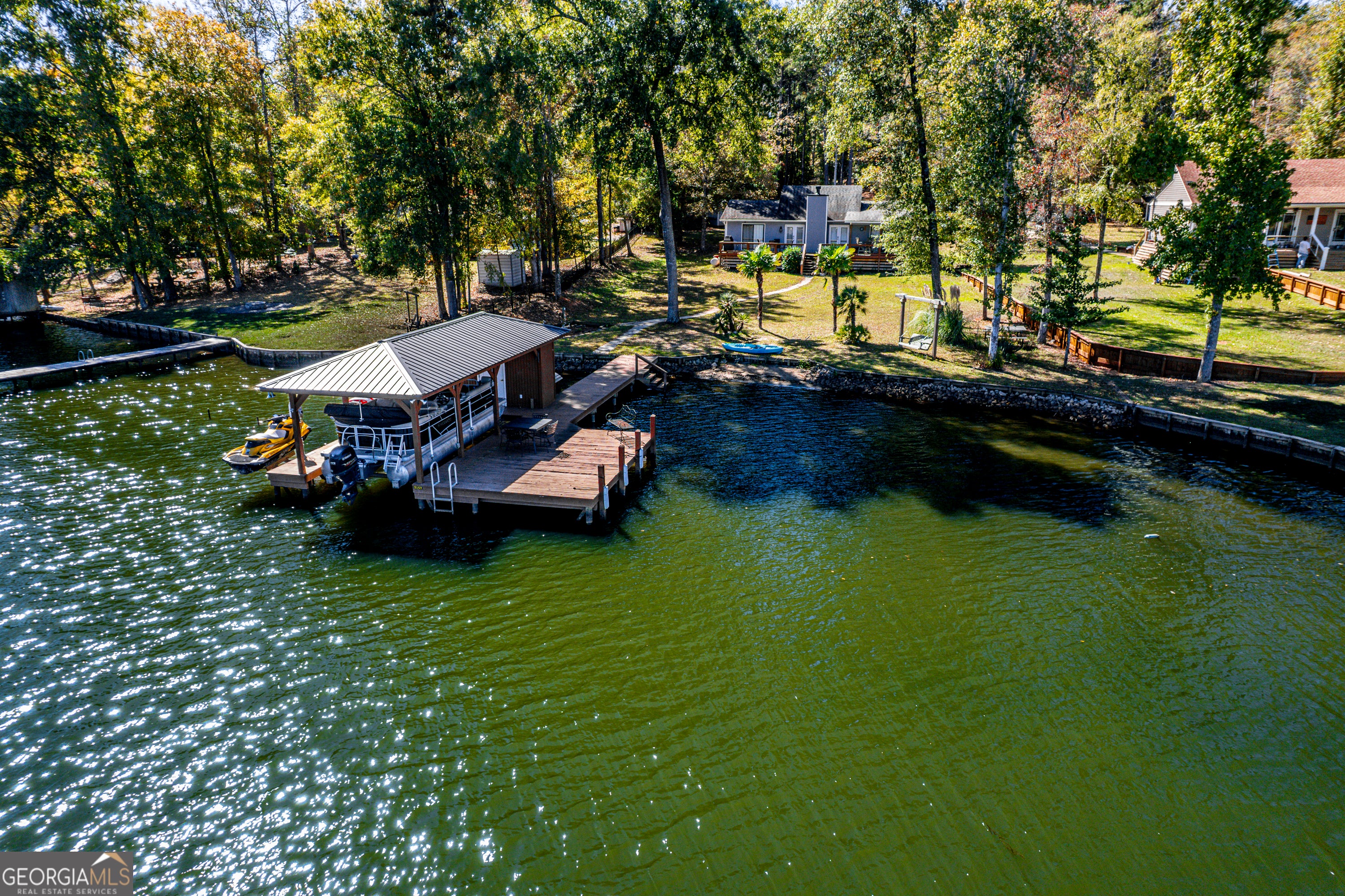 Enjoy the beauty of Lake Sinclair with this move-in ready home that features a modern, updated interior and exterior, with highlights like a fully remodeled kitchen, stainless steel appliances, and fresh paint. The spacious backyard, has a large deck with a Sony surround system perfect for entertaining. The property includes a single boathouse has a storage shed, electric boat lift and 2 jet ski lifts. (The Pontoon and Jet Skies are available for additional purchase). Furnishings are also negotiable. Call today for your showing!
