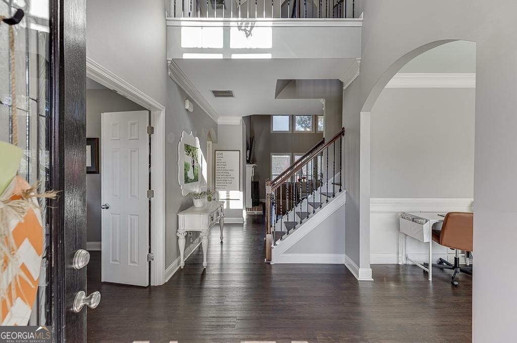 - Interior FeaturesBookcases, Double Vanity, High Ceilings, Separate Shower, Soaking Tub, Two Story Foyer, Walk-In Closet(s)