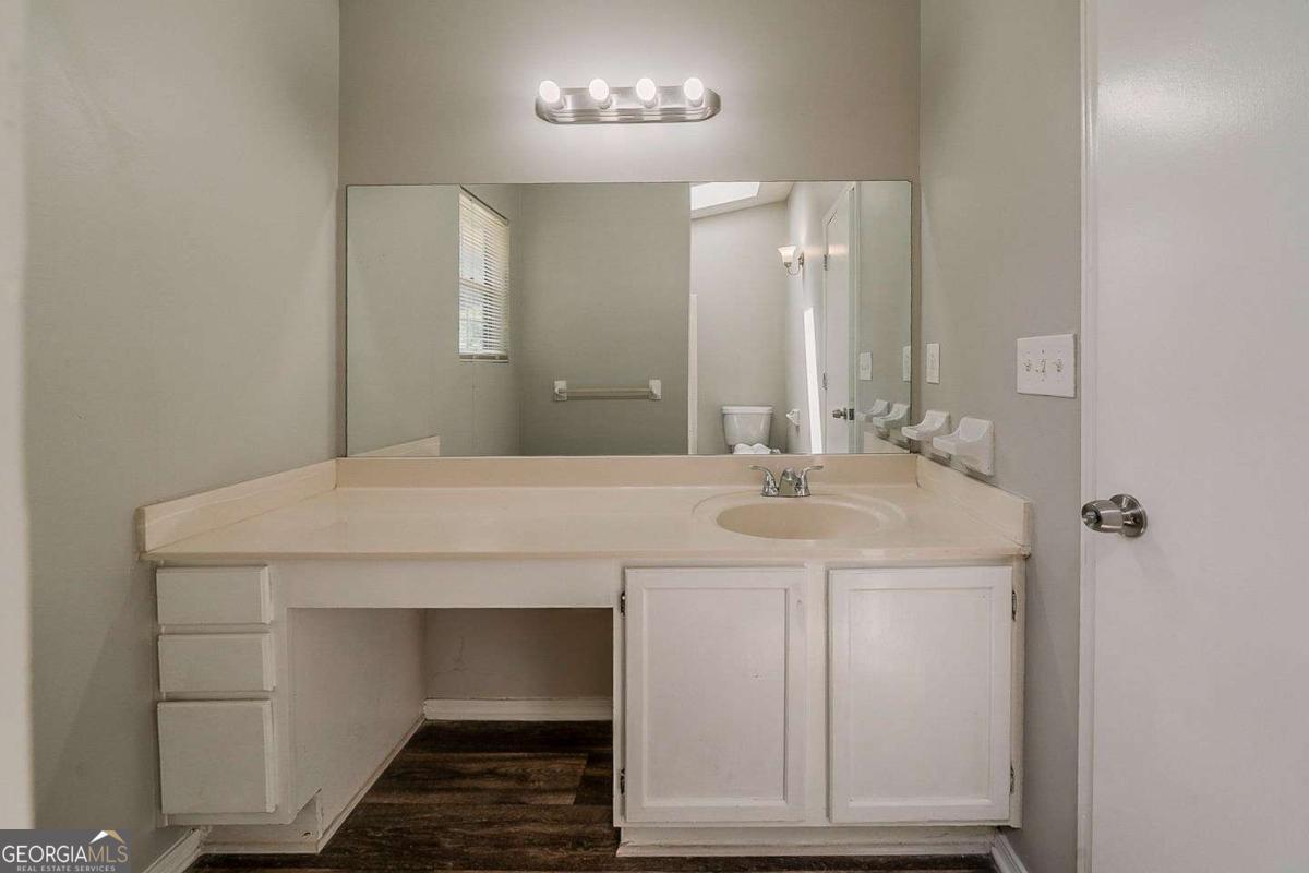 Charming 3-bedroom, 2.5-bathroom home in the established Woodcliffe West community of Lithonia. This traditional two-story layout features a spacious living room with a stone-accented fireplace, a separate dining area, and a kitchen with a breakfast bar, white cabinetry, and solid surface counters. The main level also includes a half bath and access to the rear patio and fenced backyard-perfect for relaxing or entertaining. Upstairs, the oversized primary suite includes a walk-in closet and private bath with a soaking tub. Two additional bedrooms share a full hall bath, and the thoughtful layout offers flexibility for a home office or guest space. A two-car garage, level driveway, and low-maintenance exterior add to the home's everyday convenience. Located just minutes from schools, shopping, and major highways, this home offers a great opportunity in a quiet, established neighborhood.
