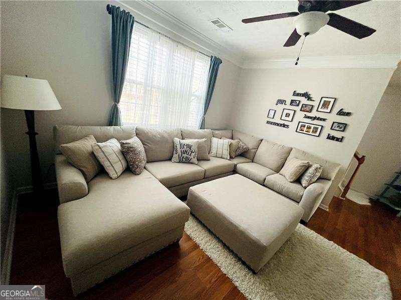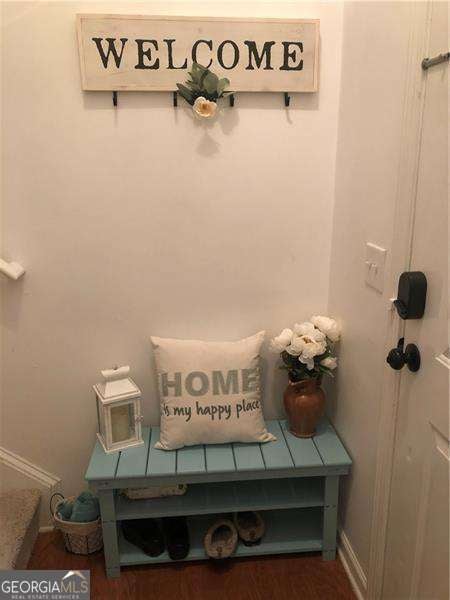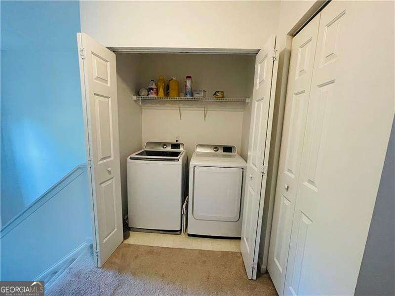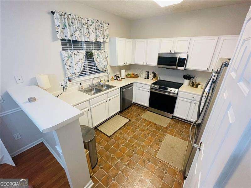 Discover comfort, convenience, and style in this move-in ready 3-bedroom, 2.5-bath townhouse in a desirable swim/tennis community with pool, playground, and walking trails. The open floor plan welcomes you with bright living and dining areas featuring beautiful vinyl flooring, crown molding, and plantation blinds. Step through the glass door to your private deck, a sunny retreat for relaxing outdoors and enjoying your morning coffee or evening unwind. The kitchen overlooks the deck and offers tiled floors, white cabinets, and brand-new stainless steel appliances - all included! Upstairs, the primary suite includes a walk-in closet and private bathroom, while the laundry closet with washer and dryer sits conveniently in the hallway. A second bedroom with its own full bath is also on this level. Both upstairs bedrooms, as well as the staircase, are fully carpeted for your comfort. A third bedroom located on the lower-level is perfect for guests, an office, or media space. Enjoy community amenities including a pool, tennis court, playground, walking trails and a large neighborhood park. A 2-car garage plus guest parking adds convenience, while trash service and grounds maintenance make upkeep effortless. Located within walking distance to shopping, schools, gyms, and minutes from downtown Woodstock, Hwy 92, I-575, GA-400, and Dupree Park. Don't miss this incredible opportunity to make this townhouse your home!