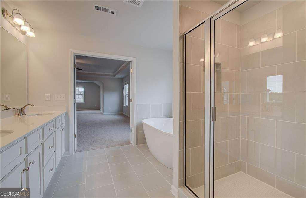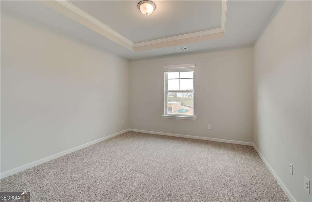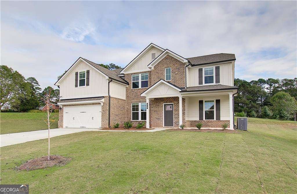 The Meridian II Plan, constructed by DRB Homes within the Grandview at Millers Mill Community, is a distinguished DOUBLE PRIMARY layout. Conveniently located with easy access to I-75 and nearby dining and shopping, it is also within walking distance of J.P. Mosely Park. This exceptional community will feature two pavilions, a walking trail, and a playground. The residence boasts 5 bedrooms and 4 bathrooms, including a guest/in-law suite with a private bathroom on the main floor. The spacious Family Room, complete with a fireplace, flows seamlessly into the luxurious kitchen, which is equipped with double ovens, stainless steel appliances, a large island, quartz countertops, and a tile backsplash. The main floor, excluding the bedroom and study, as well as the stairs, is adorned with luxury vinyl flooring. A formal Dining Room with a coffered ceiling adds an elegant touch. The second floor hosts an owner's suite featuring a generous sitting area and a bathroom with quartz countertops, tile flooring, a soaking tub with a tile surround, a separate ceramic tile shower, and a double vanity. Additionally, there is a large loft area and three spacious secondary bedrooms on this level. Please note that the images provided are stock photos and may not reflect the actual home. Colors, materials, fixtures, and lot views may vary. Please note: If the buyer is represented by a broker/agent, DRB REQUIRES the buyer's broker/agent to be present during the initial meeting with DRB's sales personnel to ensure proper representation.