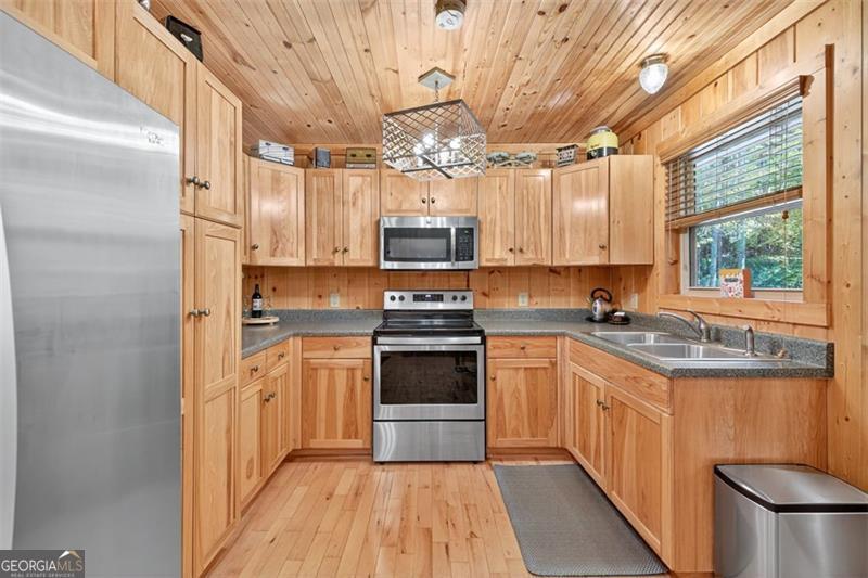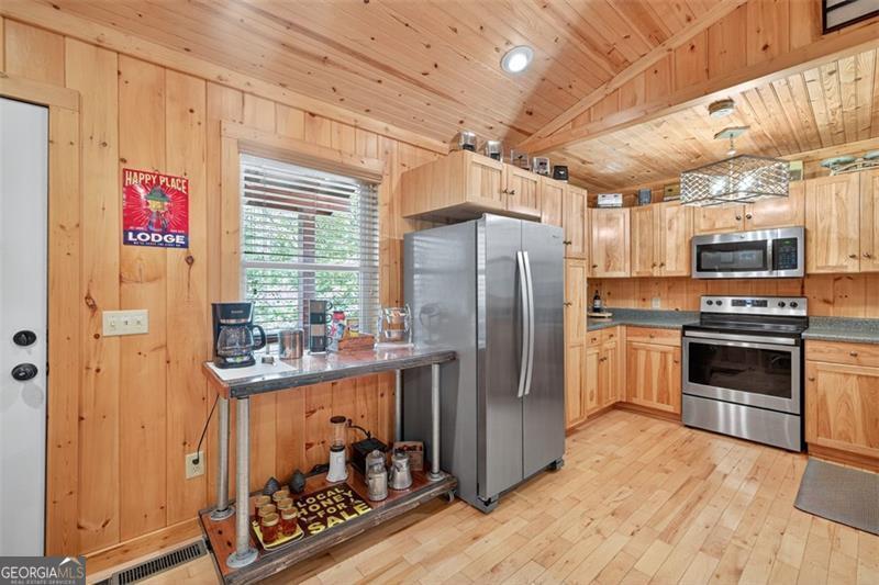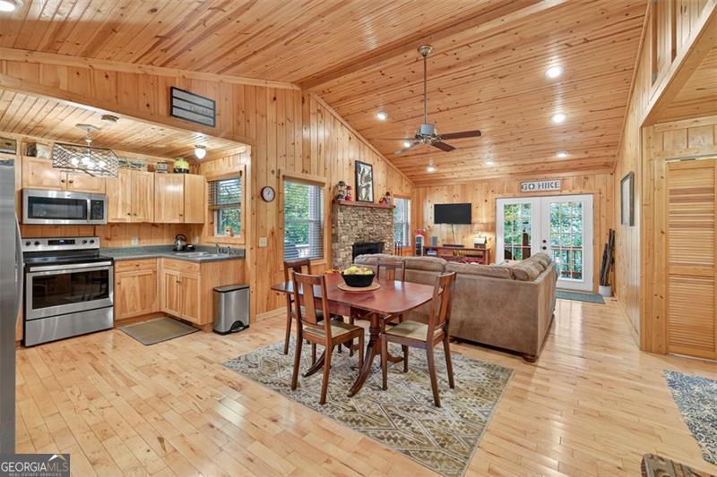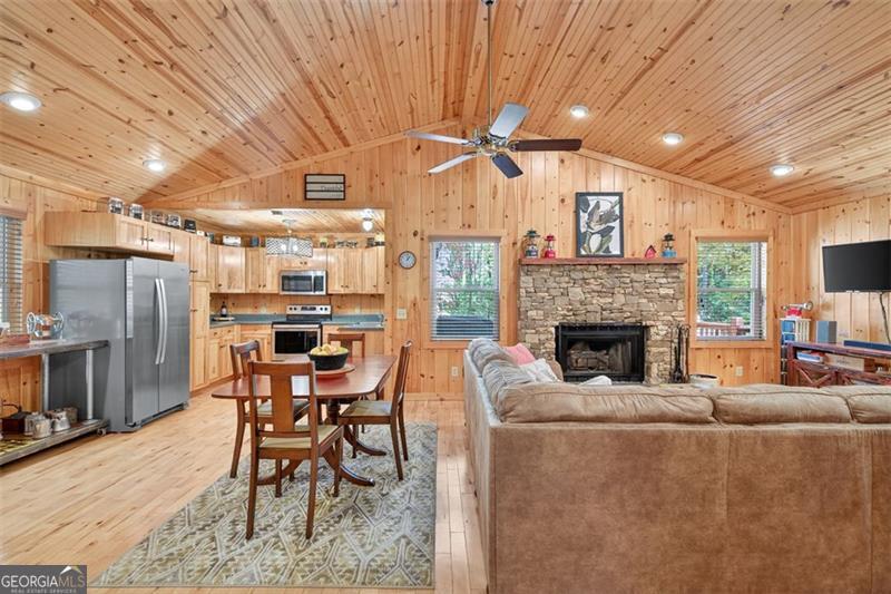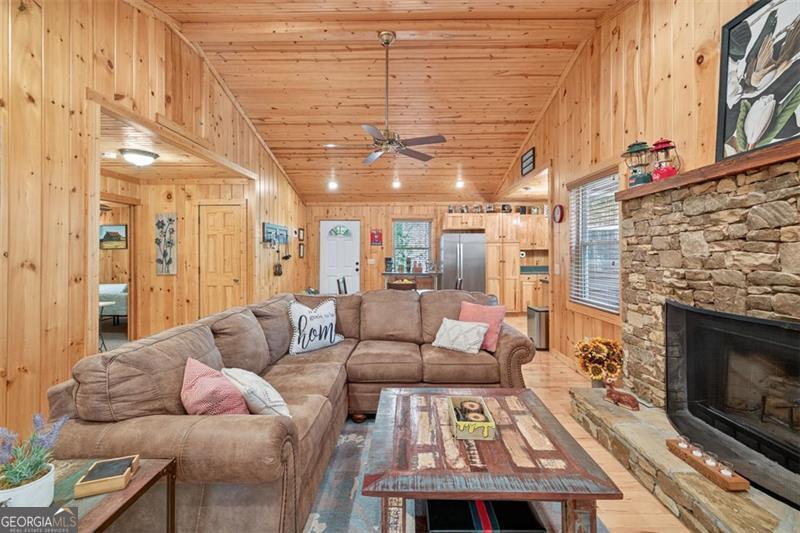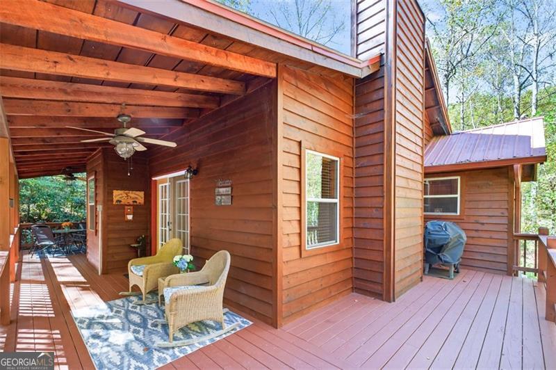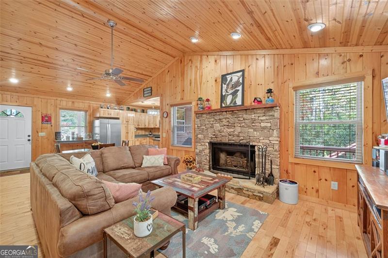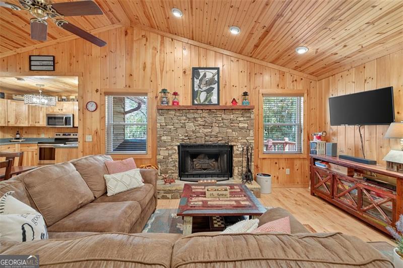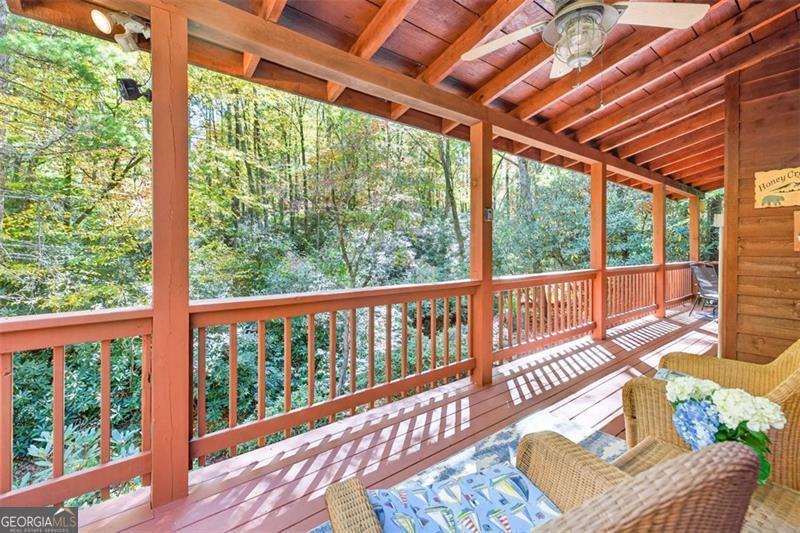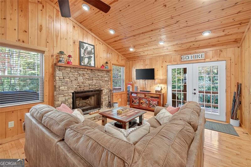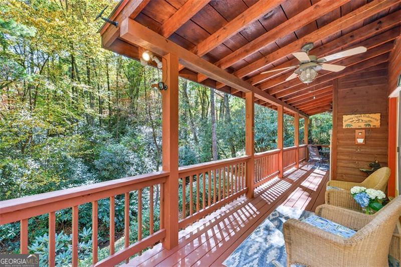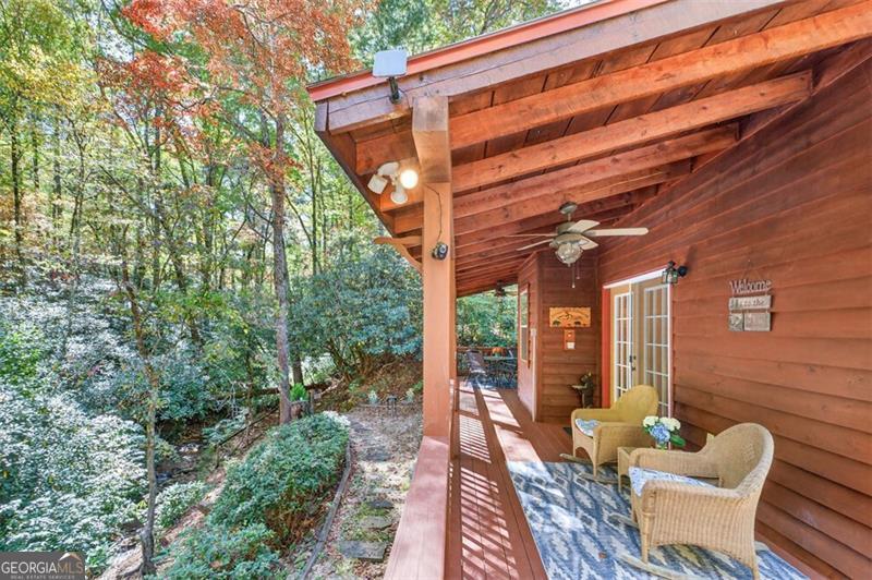 Nestled in the heart of the Northeast Georgia mountains, this adorable 2-bedroom, 2-bath cabin is the perfect blend of rustic charm and modern comfort. Whether you're searching for a full-time mountain home or a peaceful weekend escape, this property will capture your heart from the moment you arrive. Step inside to discover a warm wood interior that offers timeless beauty and zero interior maintenance. The inviting stone fireplace sets the tone for cozy winter evenings, while natural light fills the open living space with a welcoming glow. But what truly sets this home apart is its backyard paradise - it backs up to Tiger Creek, a serene mountain stream that provides a soothing soundtrack to your days and nights. The back porch is a favorite gathering spot for morning coffee, evening wine, and watching hummingbirds dance while the creek flows just below. It's a setting that photos can't quite capture - you simply have to experience it. Currently operating as a successful short-term rental, this property has been meticulously maintained and thoughtfully updated to ensure comfort and reliability for owners and guests alike. Recent improvements include: 2022: New HVAC, new hot water tank, metal roof screws replaced and ridge vent expanded, weathered siding replaced, and septic tank pumped. 2024: Home professionally stained and new well pump installed. Crawlspace features an Aprilaire dehumidifier for added protection and peace of mind. A covered carport with storage adds convenience and functionality to this charming mountain getaway. Whether you're dreaming of lazy creekside mornings, cozy fireside nights, or investing in a proven income-producing property, 489 Glassy Orchard Road offers it all - wrapped in the beauty and tranquility of Tiger, Georgia. (Home is sold by owner/agent.)