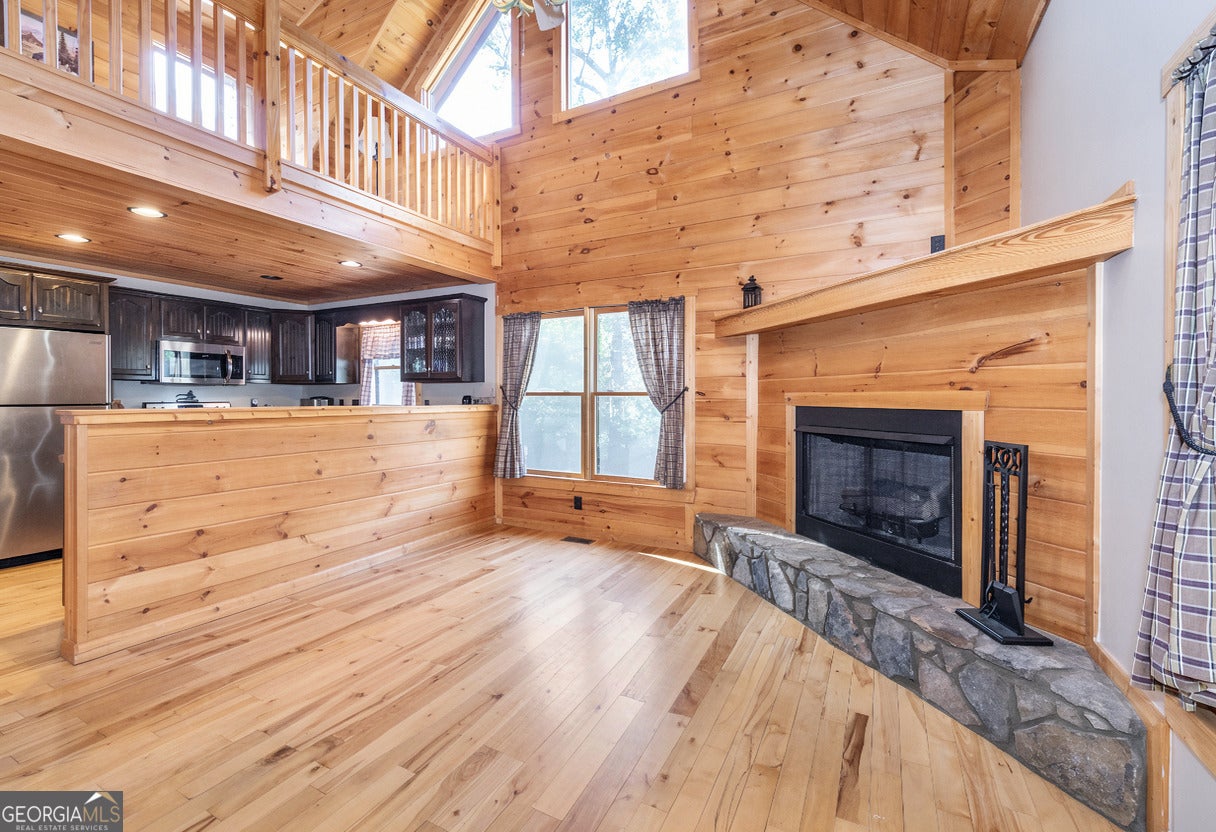 3 Bedrooms | 3 Baths | 1.4 Acres (Two Lots Included) Discover your mountain retreat in the sought-after Coosawattee River Resort! This inviting 3-bedroom, 3-bath cabin sits on 1.4 wooded acres and includes an adjoining lot for added privacy or future use. Conveniently located just moments from the Eagle Mountain gate, this property combines rustic charm with practical comfort and versatile living spaces. Pull right up to the main level with easy parking and only three steps to enter. Inside, the main level features a spacious kitchen with plenty of cabinets and counter space, a dining area, and a cozy living room with a gas fireplace-perfect for chilly mountain evenings. You'll also find a bedroom, full bath, and laundry on this level for easy one-level living. Step outside to the covered deck, where you can relax on the swing and enjoy the peaceful wooded setting. Upstairs, the private master suite offers a serene retreat with a covered porch, walk-in closet, and full bath. The loft area just outside the suite makes an ideal spot for reading, relaxing, or working remotely. The fully finished daylight basement provides even more living space with a den featuring a second gas fireplace, a third bedroom, a full bath, and a recreation room with a pool table. With its own exterior entrance and level parking, this level offers excellent potential for a separate guest suite or rental setup-by adding a small kitchenette for extra convenience. Whether you're looking for a full-time home, vacation getaway, or income-producing short-term rental, this cabin is a must see. Enjoy all the resort amenities including river access, pools, fitness facilities, heated and outdoor pools, tennis and activities -all from the comfort of your own wooded haven. (Annual HOA fees stated are for the two lots which are separate and have not been combined. Combining = lower annual fees.)