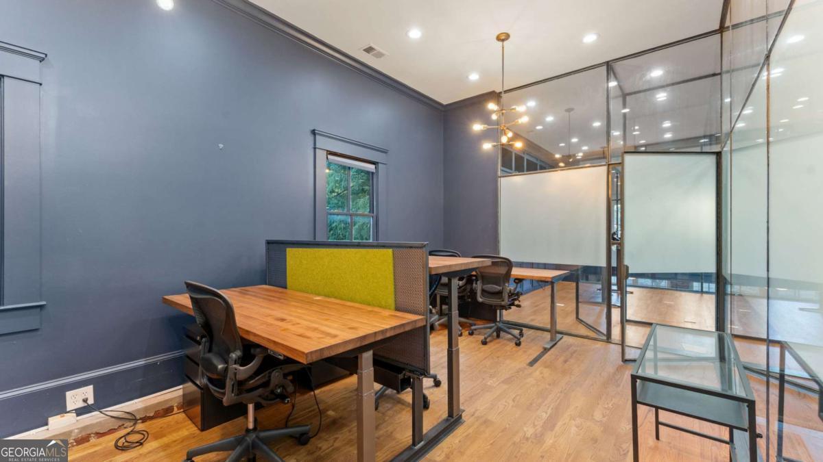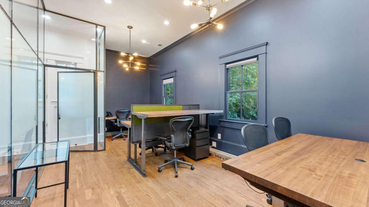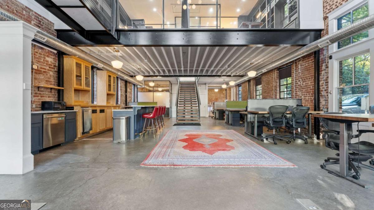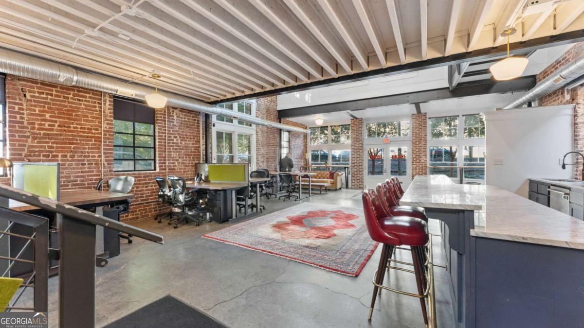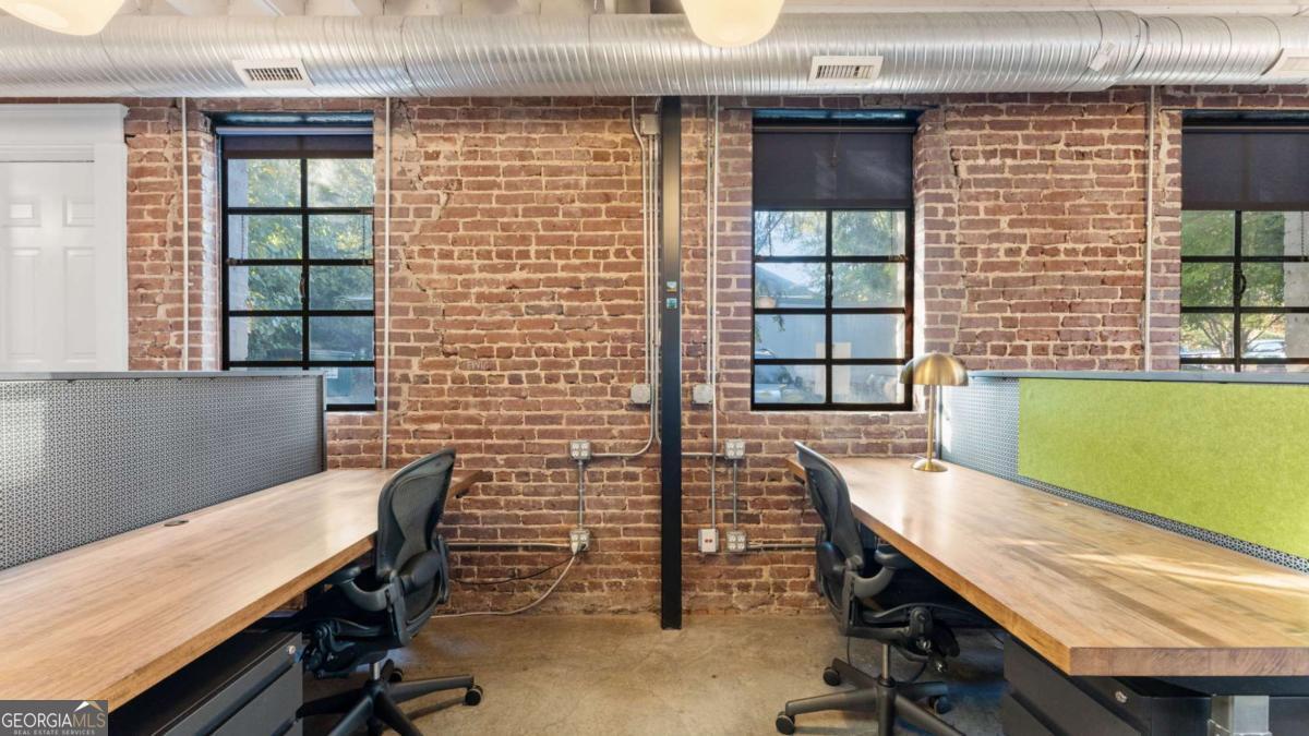 Welcome to 174 Carroll Street - a one-of-a-kind commercial property in the heart of Cabbagetown, one of Atlanta's most creative and historic neighborhoods. Originally built circa 1950, this distinctive building blends industrial character with modern functionality, offering both single- and double-height ceilings throughout. The space features a mix of open and private offices, an open kitchen area, and exposed brick walls that highlight its vintage charm. An upstairs front porch provides a unique touch and a comfortable spot to enjoy the vibrant surroundings. Situated just steps from Memorial Drive, this location offers easy access to I-75, I-85, and I-20, making it ideal for commuters and clients alike. The property includes a small on-site parking lot plus ample street parking nearby. Perfect for an engineering firm, advertising or marketing agency, accounting practice, or any business seeking a creative, open-concept workspace with character and convenience.
