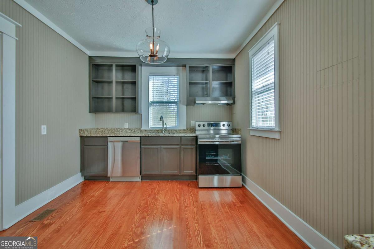 Charming Remodeled Farmhouse in Historic Downtown Monroe! Located just minutes from shopping and restaurants in the downtown area. Featuring original hardwood floors, granite countertops in both the kitchen and bathroom and a flexible floor plan with 2 bedrooms plus a room that could serve as a 3rd bedroom or a flex room. Located in the desirable Walnut Grove school district. Agent is an owner