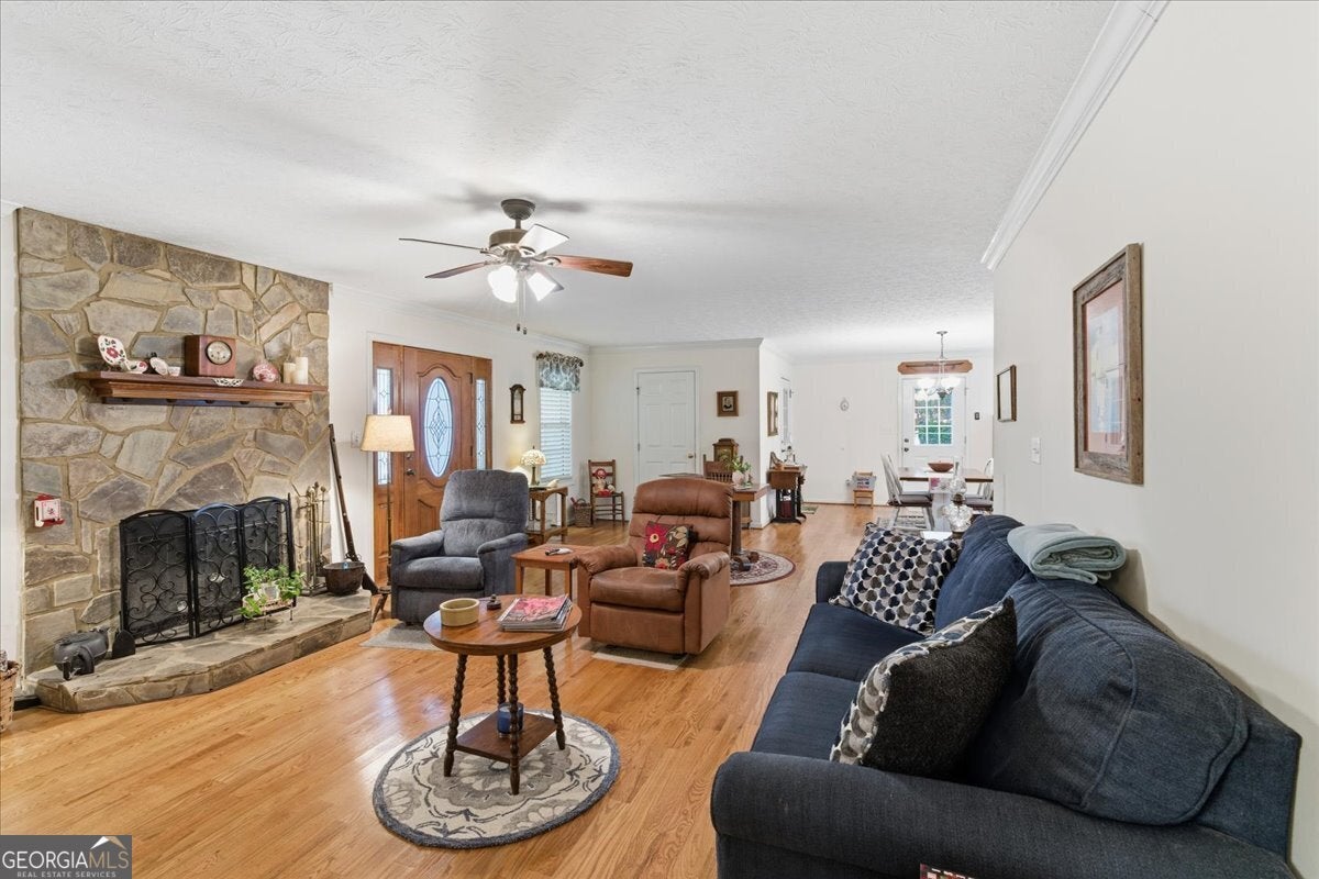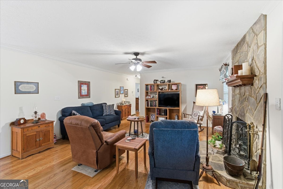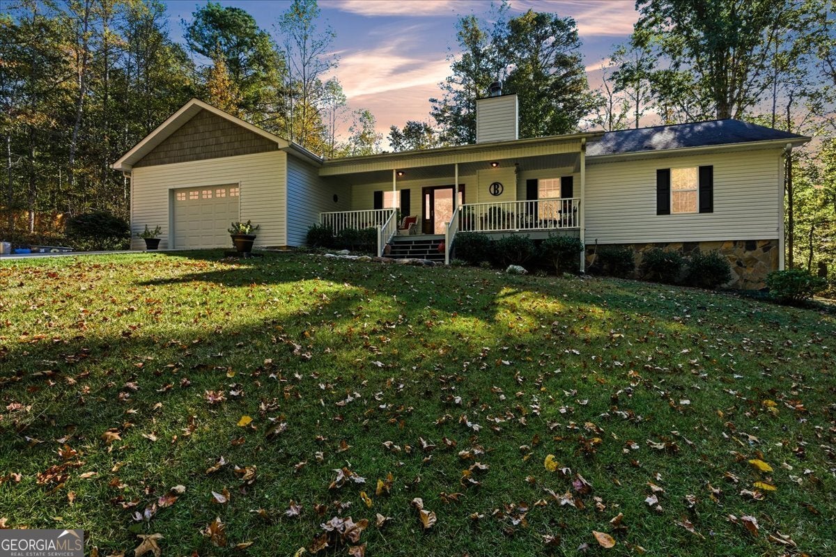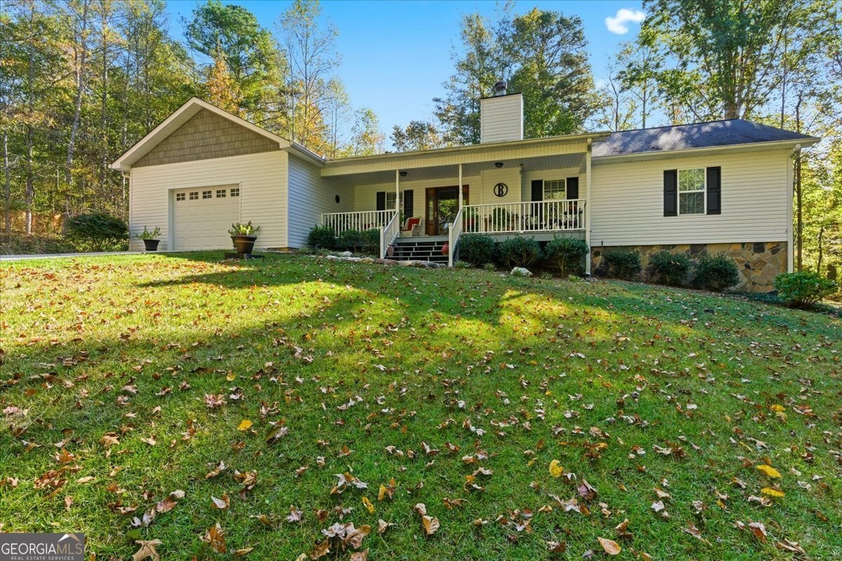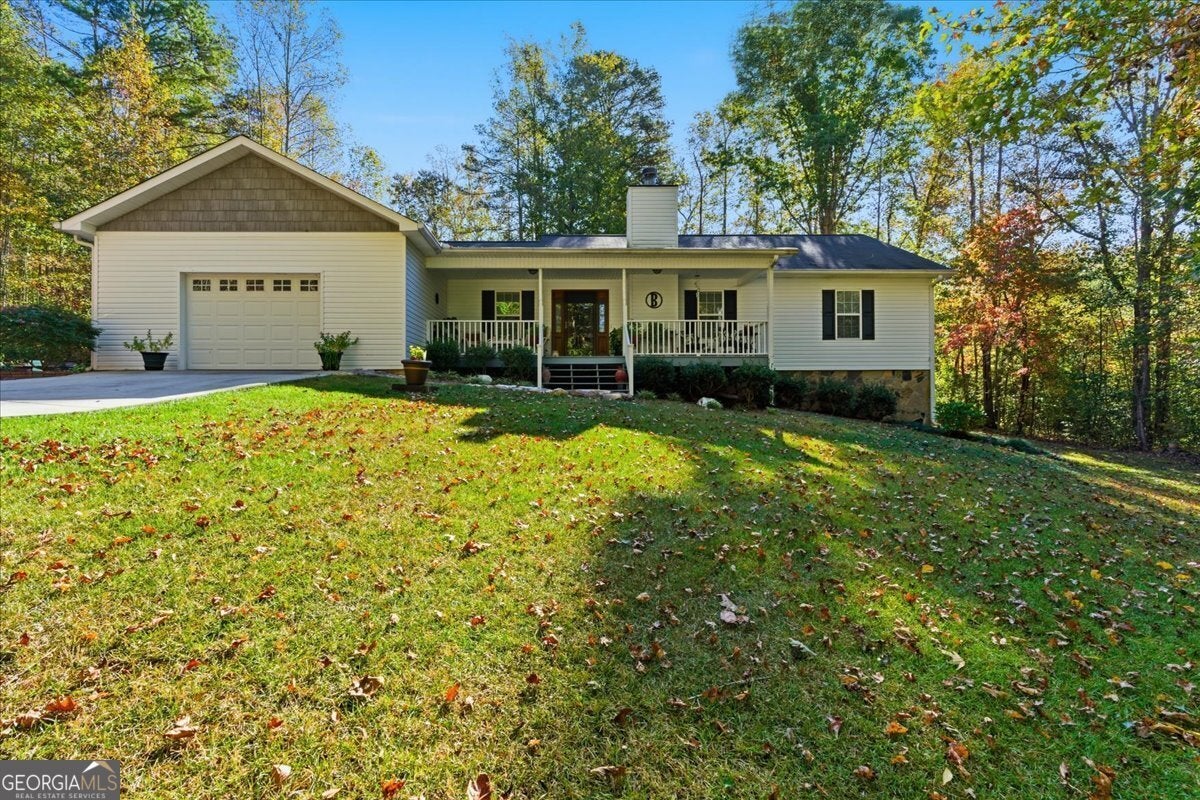 Tucked away off the road for total privacy, this charming 2-bedroom, 2-bath home offers the perfect mix of comfort and nature. Step inside to find real hardwood floors, a cozy stone fireplace that is wood burning, and a welcoming open layout that flows from the living room to the dining area and kitchen. The kitchen features solid wood cabinetry and plenty of space for home-cooked meals or coffee with a view. The full unfinished basement offers endless potential - whether you dream of extra living space, a workshop, or storage galore. Enjoy your morning coffee or unwind in the evenings on the porch overlooking a peaceful backyard surrounded by mature trees. Outside, you'll love the gorgeous 7.36-acre lot, complete with a gentle creek running through the property - perfect for exploring, relaxing, or simply enjoying the sounds of nature. This home is ideal for anyone looking for tranquility, space, and the beauty of country living - all while being just a short drive to town amenities.