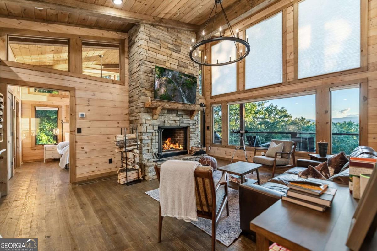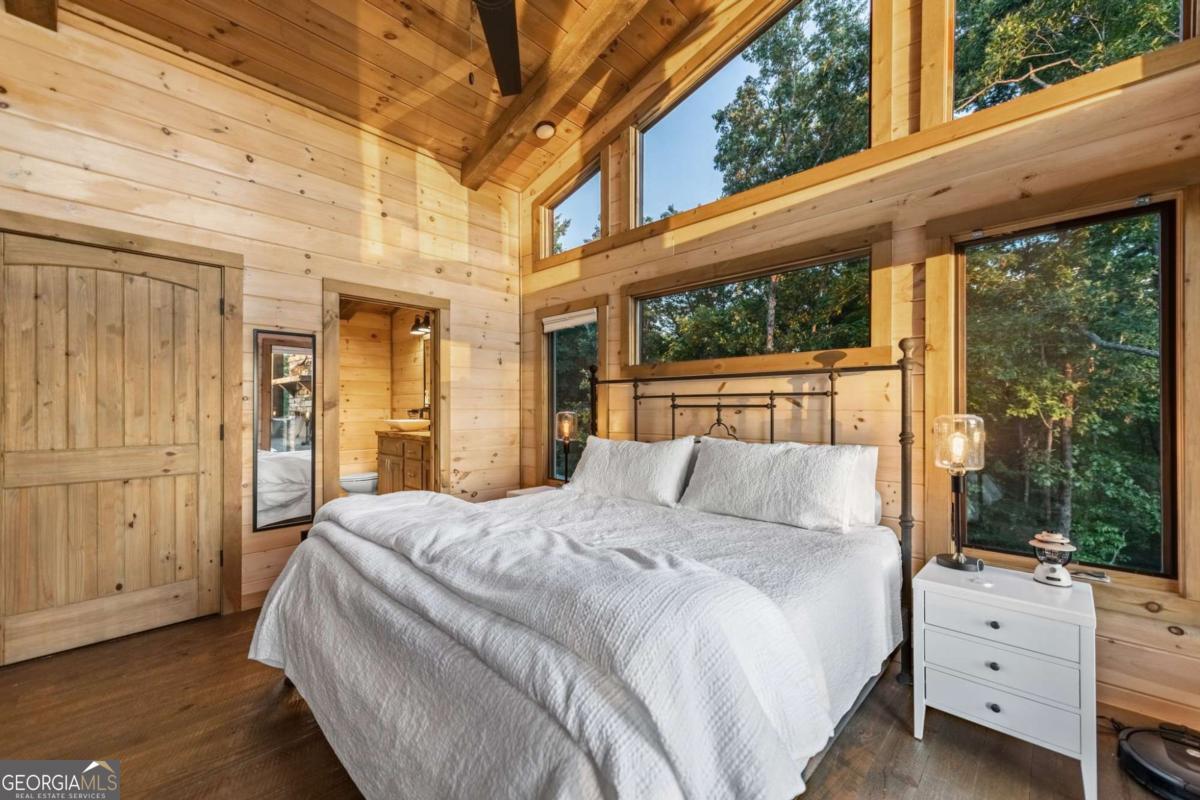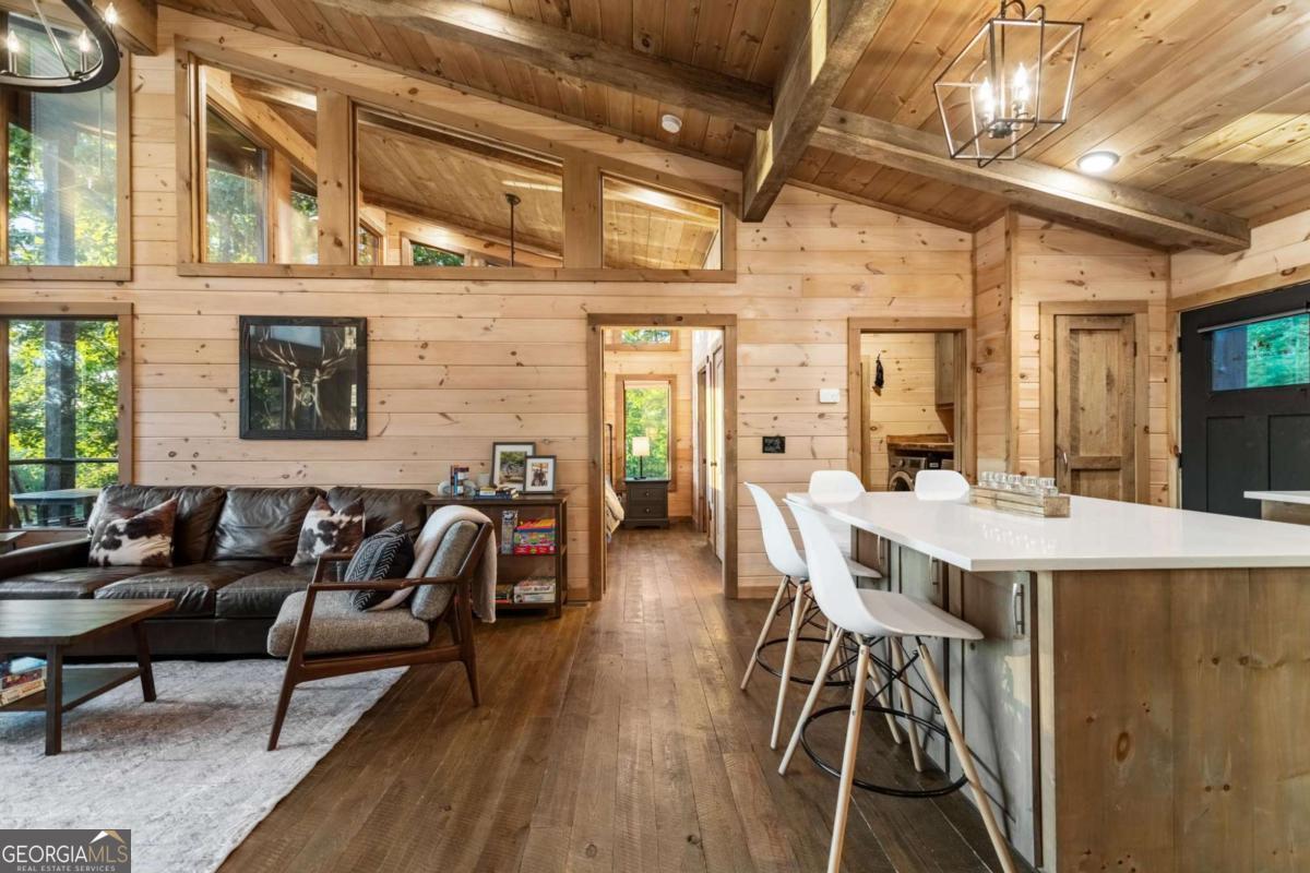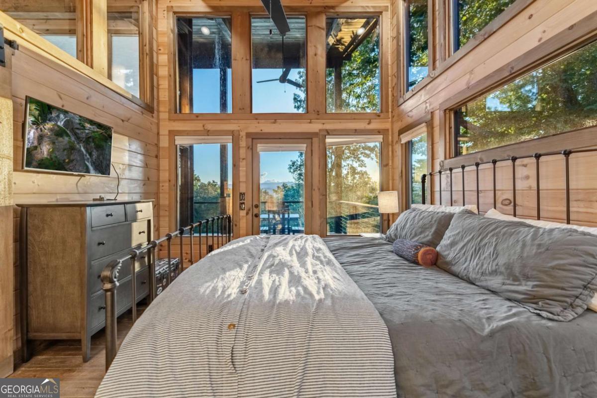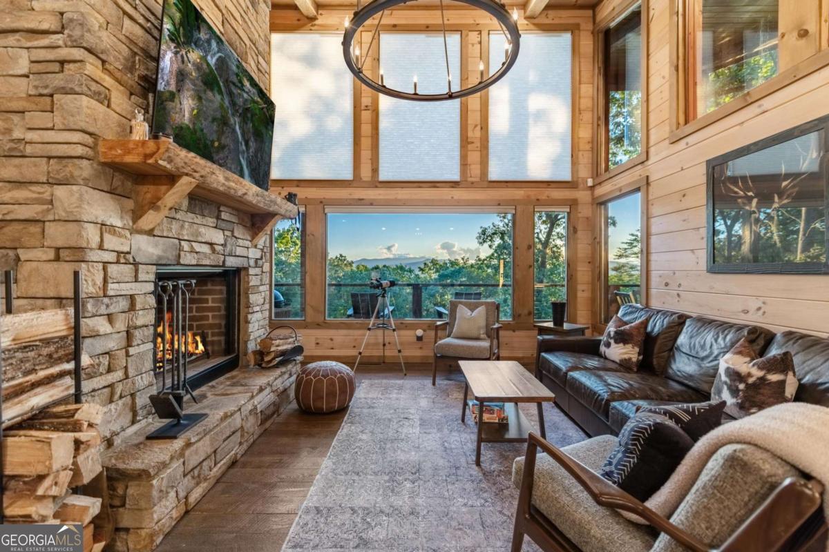 Welcome to your Mountain Modern Getaway! Less than 5 miles from downtown Blue Ridge, this exquisite home boasts stunning long-range, year-round mountain views that will captivate you from the moment you arrive. Masterfully crafted by The Gnarly Home Crafters, this residence beautifully merges rustic charm with contemporary elegance, enhanced by a modern twist. Experience main level living at its finest with an open concept floor plan designed to bring the outdoors in. Floor-to-ceiling windows fill the space with natural light and offer panoramic views of the breathtaking surroundings. The home features two generously sized bedroom suites, each showcasing stunning vistas, upgraded fixtures, and spa-like bathrooms that promise a retreat-like atmosphere. Step out onto the top deck to soak in the scenery or descend a few steps to the party porch, an ideal spot for entertaining guests while overlooking your private fire pit. This home is more than just a place to stay; it's a destination where nature meets modern luxury, ensuring an unforgettable experience for every guest.