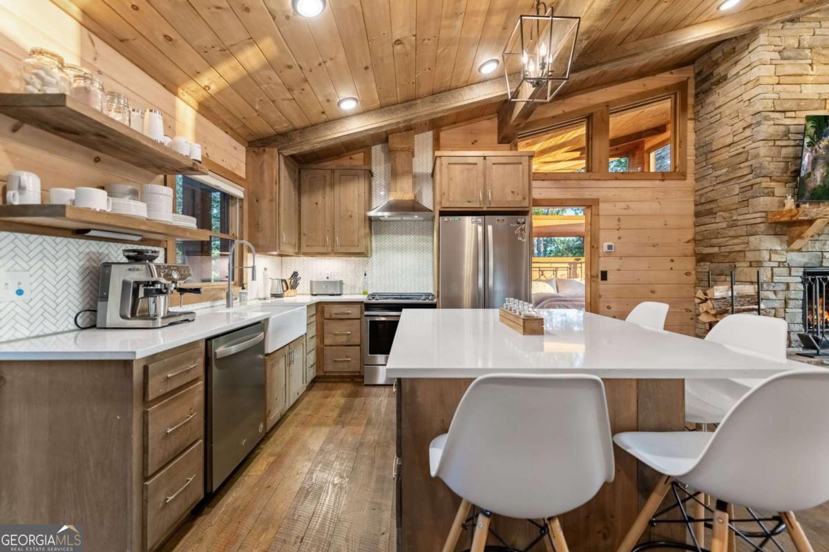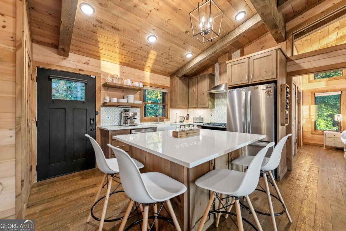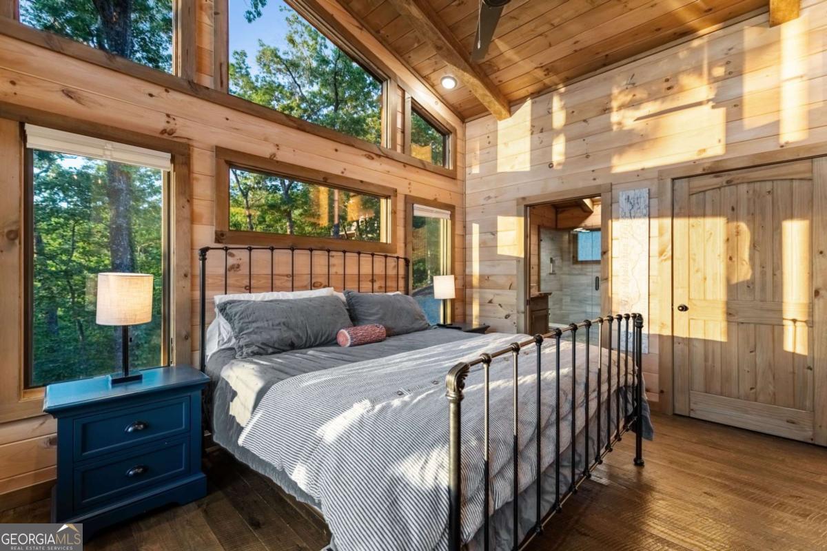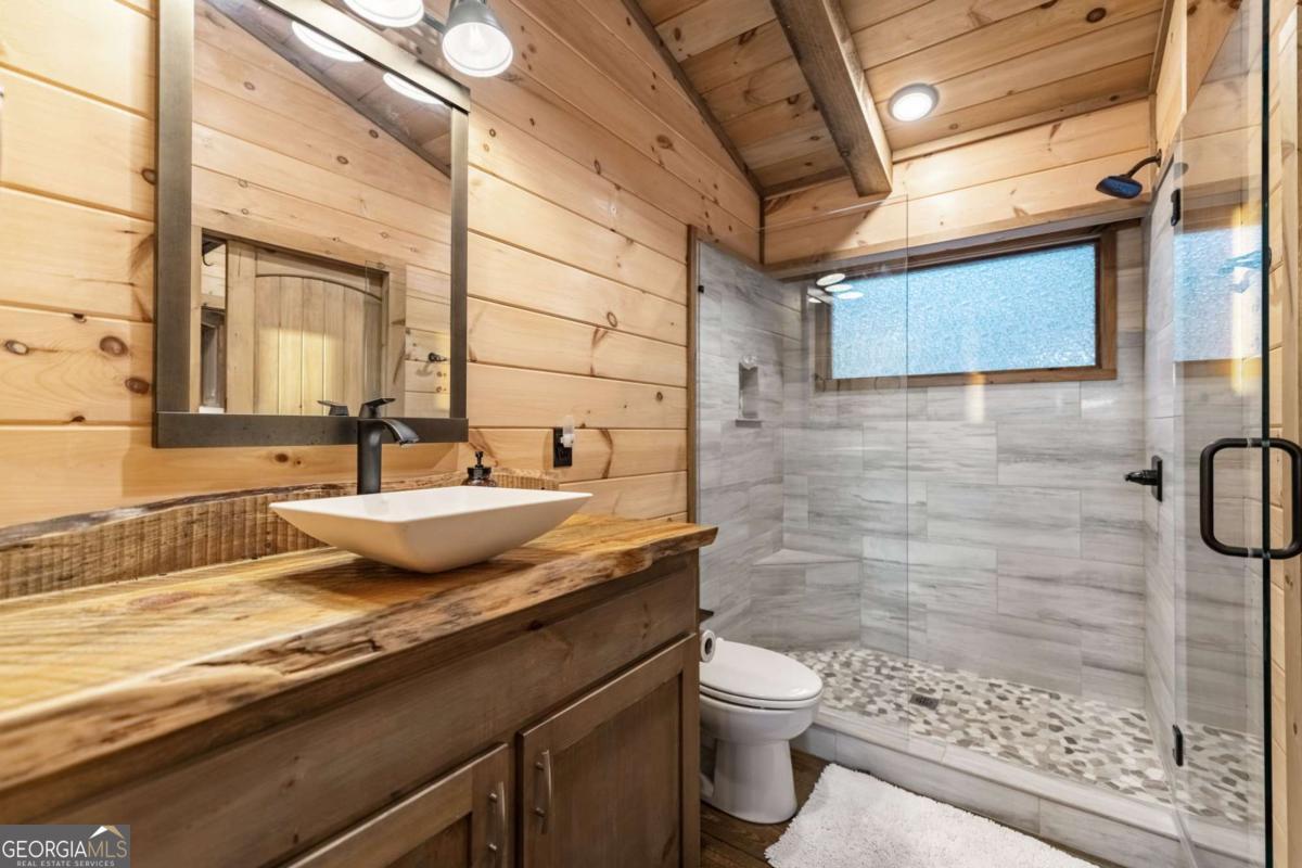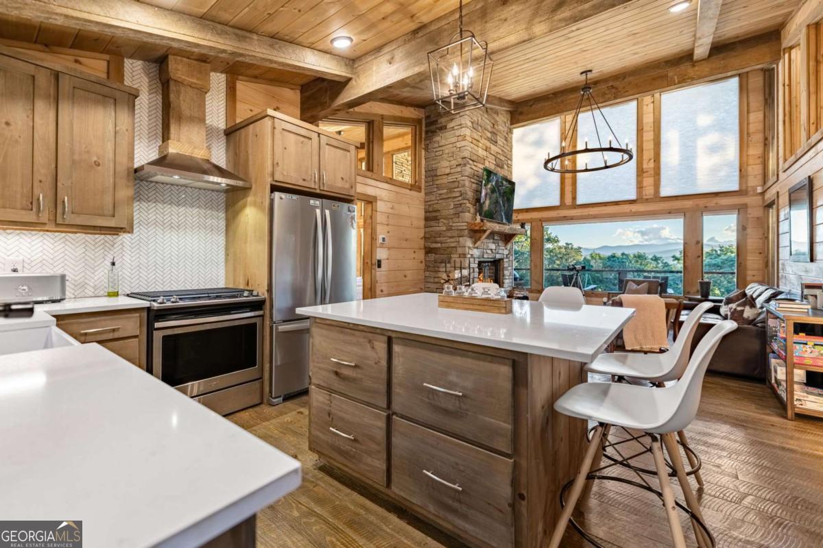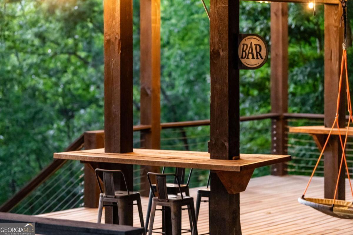 Welcome to your Mountain Modern Getaway! Less than 5 miles from downtown Blue Ridge, this exquisite home boasts stunning long-range, year-round mountain views that will captivate you from the moment you arrive. Masterfully crafted by The Gnarly Home Crafters, this residence beautifully merges rustic charm with contemporary elegance, enhanced by a modern twist. Experience main level living at its finest with an open concept floor plan designed to bring the outdoors in. Floor-to-ceiling windows fill the space with natural light and offer panoramic views of the breathtaking surroundings. The home features two generously sized bedroom suites, each showcasing stunning vistas, upgraded fixtures, and spa-like bathrooms that promise a retreat-like atmosphere. Step out onto the top deck to soak in the scenery or descend a few steps to the party porch, an ideal spot for entertaining guests while overlooking your private fire pit. This home is more than just a place to stay; it's a destination where nature meets modern luxury, ensuring an unforgettable experience for every guest.