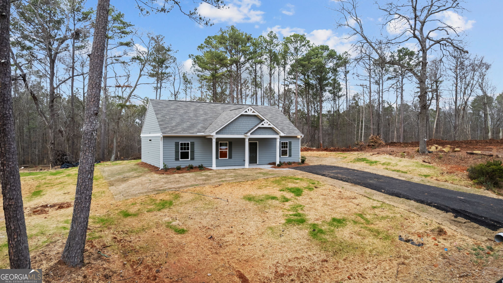 100% FINANCE USDA APPROVED! The Elmsworth plan by Piedmont Residential. Welcome to Clemit Harris Place in Newnan. New Construction RANCH PLAN for a Great Price on more than Half Acre of land! 3 Bedroom 2 Full Bath Split Bedroom style Ranch! Features Large Covered Front Porch AND Large Covered Back Porch! Beautiful Fossil Grey cabinets in kitchen and bath. Huge kitchen island with seating open to family room. Spacious bedrooms and baths. Separate laundry room for convenience. This delightful new home is ready for move in. Note: photos showing furnishings are sample pics of our Elmsworth model home. Not the actual home for sale.