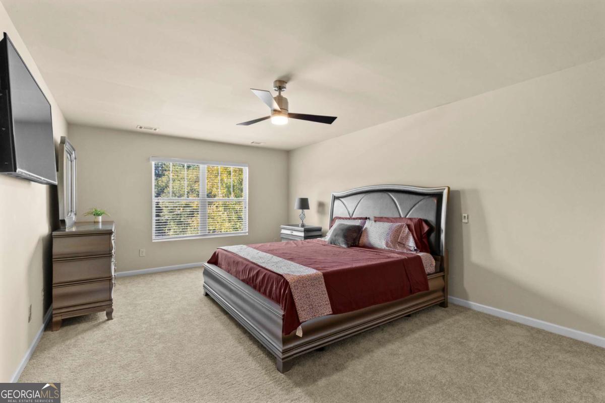 Freshly updated with brand-new interior paint and carpet throughout, this spacious home offers the largest floor plan in the Riggins Ridge community and is move-in ready! The bright open kitchen features stainless steel appliances, a large center island with breakfast bar, and abundant storage, flowing seamlessly into the family room with a cozy fireplace. A guest bedroom and full bath are located on the main level, ideal for visitors or multi-generational living. Upstairs includes four additional bedrooms, a laundry room, and a versatile loft perfect for a media room, play area, or home office. The oversized primary suite features a private bath with a double vanity and a spacious walk-in closet. The second upstairs bathroom also includes a double vanity, providing added comfort and convenience for family or guests. As part of the Riggins Ridge community, residents enjoy access to a playground, swimming pool, and tennis courts, creating a true neighborhood feel. Ideally situated with easy access to I-85, I-75, I-285, and South Fulton Parkway, this home is just minutes from Hartsfield-Jackson Atlanta International Airport, Chick-fil-A Headquarters, the Amazon Fulfillment Center, and the City of Atlanta. Enjoy close proximity to major employers, shopping, dining, sports, and more. This home offers space, style, and unbeatable value. Don't miss your chance to make it yours!