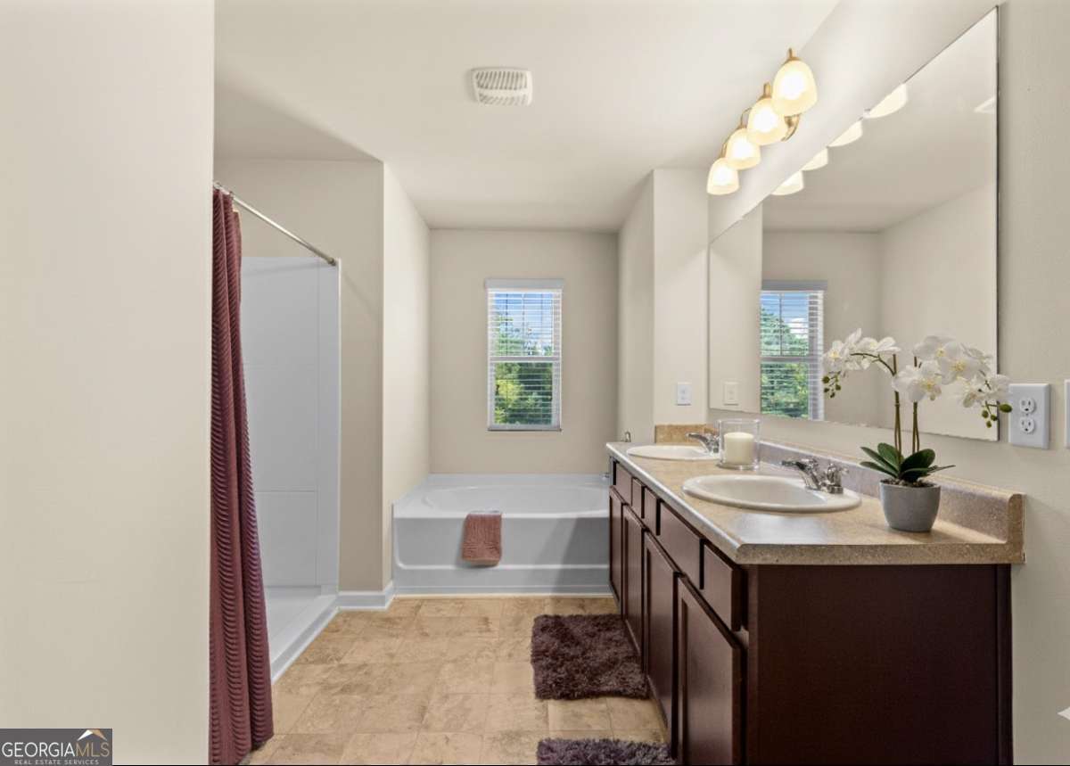 - Interior FeaturesDouble Vanity, High Ceilings, Other, Pulldown Attic Stairs, Separate Shower, Soaking Tub, Walk-In Closet(s)