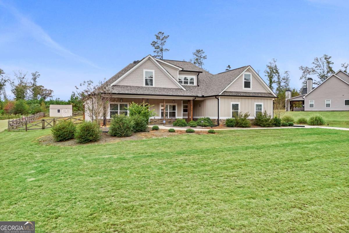 Better than New Construction! This pristine home is located in gated community, Fox Tales, offering 4 bedrooms and 3full baths. Built in 2022 boasting 2,778 square feet of luxurious living space. As you step inside, you'll immediately notice the open concept floor plan, perfect for entertaining and spending time with loved ones. The spacious living area features a cozy fireplace, creating a warm and inviting atmosphere. The kitchen is a chef's delight, complete with granite countertops, stainless steel appliances, reverse osmosis drinking water system and additional upper/lower cabinet space added by the owners themselves. The separate dining room provides a dedicated space for hosting dinner parties and special occasions. The owners suite, located on the main, offers a peaceful retreat with its double vanity, soaking tub, separate shower, and walk-in closet. 2 additional bedrooms, large closets and full bath on main, upstairs features a perfect guest suite with bedroom, 3rd full bath, bonus room, and the coziest office space, plenty of room for a growing family or overnight guests. Step out onto the extended back patio with fireplace and discover your own private oasis in the fenced in back yard. Shed and garden area to remain. Whether you're enjoying a morning cup of coffee or hosting a summer barbecue, this outdoor space is perfect for relaxation and making memories. The home also includes a 2-car garage for convenient parking and storage. Additional features of this move-in ready home include an installed water softener. Don't miss out on the opportunity to make this exquisite home yours. Schedule a showing today and experience the epitome of modern living in a highly desirable neighborhood. Call Adriane Bomar 404-319-5918 for all the details and to view anytime!