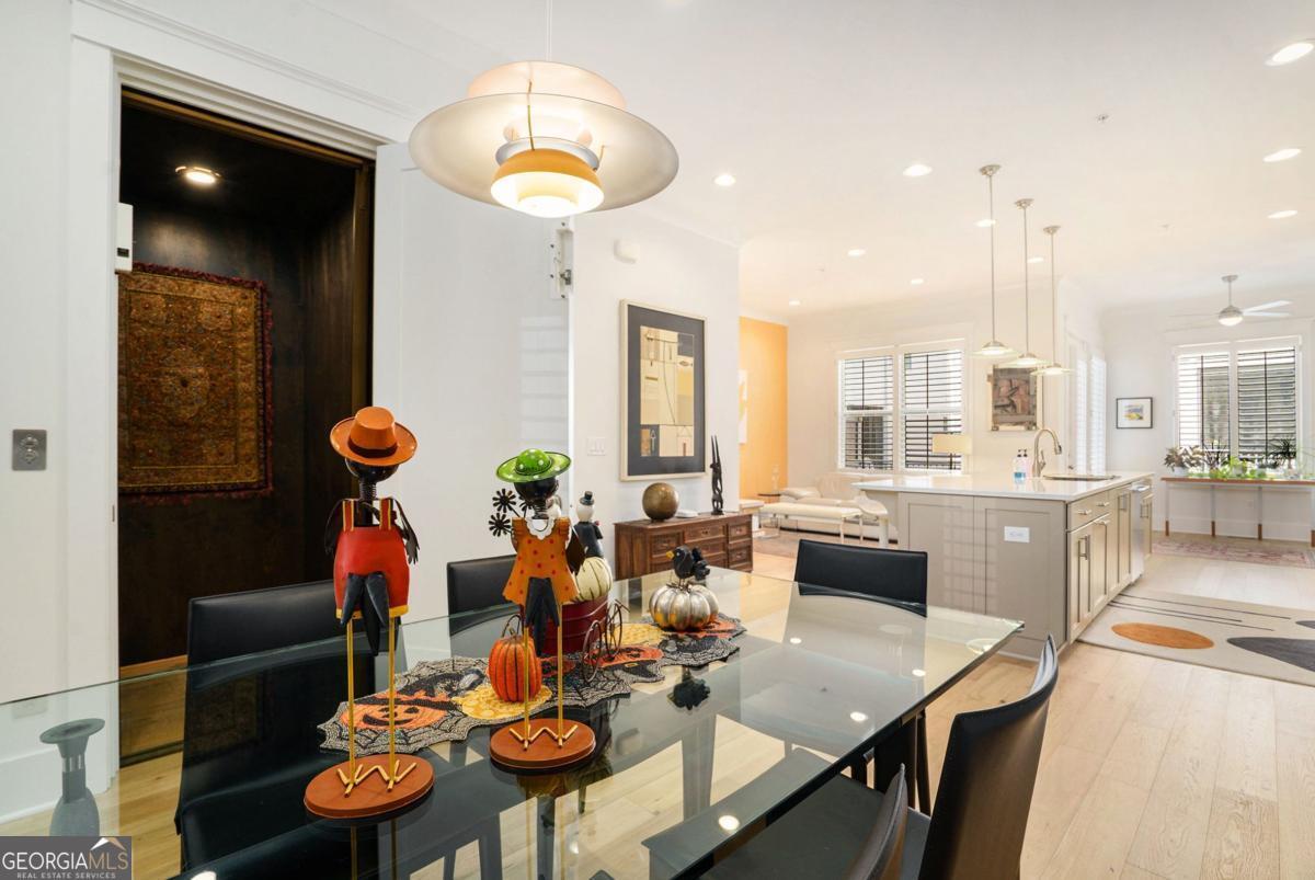 Luxury Townhome with Elevator, Rooftop Views & Extensive Upgrades in Marietta's Premier John Wieland Community - Meeting Park- offering luxury, convenience, and an unbeatable location just steps from Historic Marietta Square. This exceptional home features an elevator to all levels (inspected annually), brand new hardwood floors on the top three levels with a lifetime transferrable warranty, and plantation shutters throughout. The main level boasts 10' ceilings, a fireside family room, elegant dining area with new designer lighting, and a light, bright sunroom with an adjacent keeping room-ideal for relaxing or entertaining. The chef's kitchen shines with new induction LG range, new Bosch dishwasher, new Sharp microwave drawer, new garbage disposal, new under-cabinet lighting, new cabinet hardware, and new lighting fixtures, all beautifully complemented by quartz countertops and a custom herringbone tiled backsplash. The primary suite includes a large custom walk-in closet and a spa-inspired bath with a freestanding soaking tub, frameless glass shower, and new shower fixtures and lighting. Each secondary bedroom features an en-suite bath with updated lighting and plumbing hardware. The terrace level provides a full bath with new shower hardware and versatile living area-perfect for a guest suite, gym, or hobby/playroom-a home safe, and custom designer wallpaper. Interior paint throughout the entire home. The top floor is designed for entertaining and relaxation, featuring a spacious living area and an expansive rooftop deck showcasing panoramic views of Kennesaw Mountain and Downtown Marietta-ideal for sunsets and fireworks. Major updates and features include: * Complete custom interior paint throughout * New HVAC system (July 2025) with two Lennox high-efficiency units and furnaces (transferable warranty) * New hardwood floors and matching stair treads (lifetime transferable warranty) * New lighting in kitchen, dining room, and all bathrooms * New ceiling fans throughout * New powder room vanity, mirror, lighting, and plumbing hardware * New LG washer and dryer * Fiber optic internet connection * Fireplace and in-home sprinkler system inspected within the last two years. Enjoy Meeting Park's resort-style amenities, including a two story clubhouse with pool, dog park, pocket parks, fire pit gathering spots-all within walking distance to the shops, art galleries/museums, restaurants, trails, and year-round events of Marietta Square. Designer-upgraded, meticulously maintained, and move-in ready-this home delivers the ultimate in luxury and lifestyle!