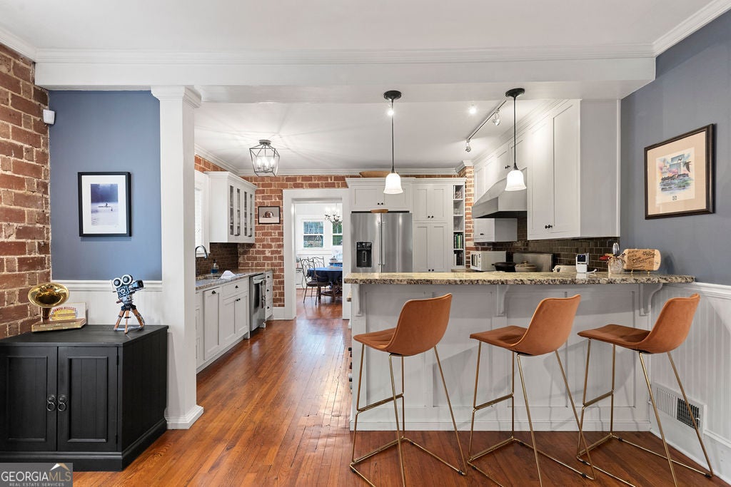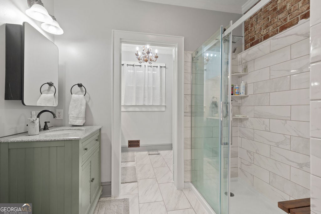 ** Seller is ready to make a deal. Now offering $6,000 toward buyer closing costs** Filled with timeless character, this breathtaking 1935 four-sided brick Craftsman home perfectly blends classic charm with modern luxury. Located in the heart of Gainesville on a quiet one-way street, you'll be just a short stroll from Historic Downtown's restaurants, shops, Brenau University, Northeast Georgia Medical Center, and the scenic Rock Creek Greenway. Step inside this stunning 3-bedroom, 3-bath ranch to find nearly 2,400 square feet of single-level living, where every inch has been lovingly maintained, tastefully updated, and already Pre-Inspected! Original features like hardwood floors and exposed brick walls have been preserved, while thoughtful renovations bring today's conveniences home. The expansive master suite is a true retreat, offering its own sitting area, multiple closets-including a spacious walk-in laundry-and a private bath with updated vanities and gleaming hardwood floors. Two additional bedrooms also feature original hardwoods, and their own bathrooms, and exterior access-perfect for guests or an in-law suite. Bonus room off of center bedroom can be used as a second laundry, sunroom, or office. At the heart of the home, the open-concept kitchen and living room create an inviting space for gathering. The kitchen boasts a powerful stainless-steel Five-Star professional oven range, granite countertops, custom cabinets with glass doors, and a newer stainless appliances. The adjoining living room, accented by a cozy gas-burning fireplace, makes entertaining effortless. Step outside to discover even more upgrades - including a brand-new custom garage designed for a Jeep enthusiast, a peaceful private backyard, and charming outdoor spaces ideal for morning coffee or evening relaxation. This home offers beauty, functionality, and location all in one. With unmatched walkability, abundant storage, and a perfect balance of historic charm and modern updates, this is the home YOU NEED in Downtown Gainesville.