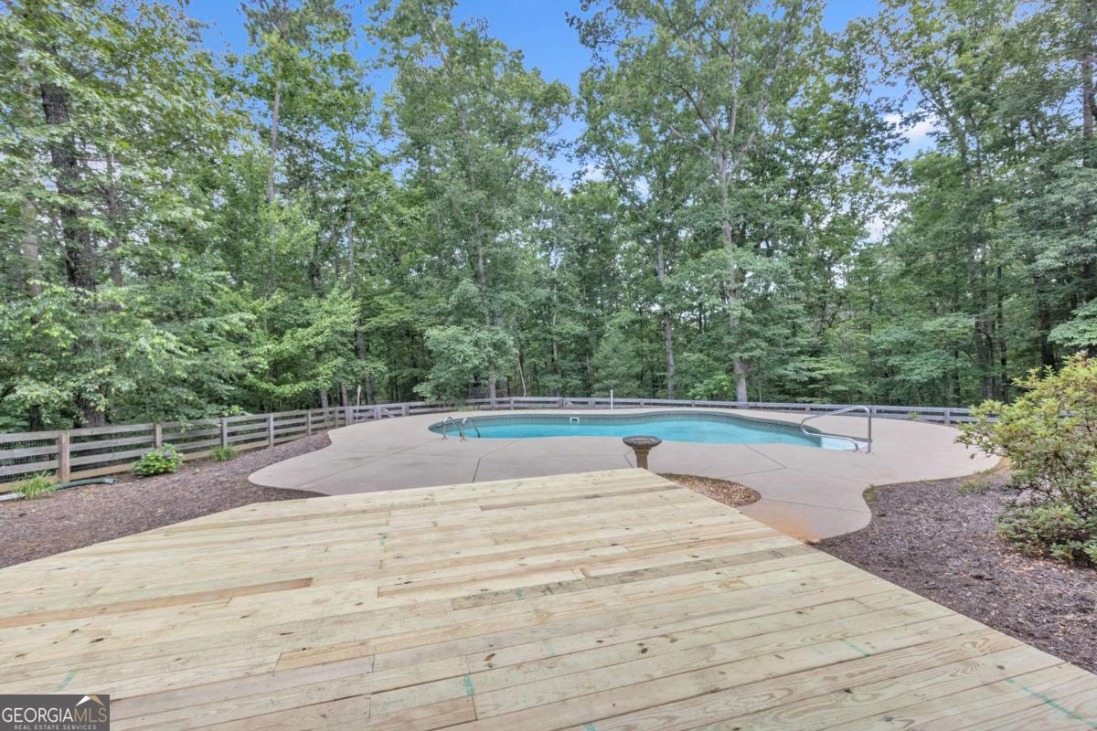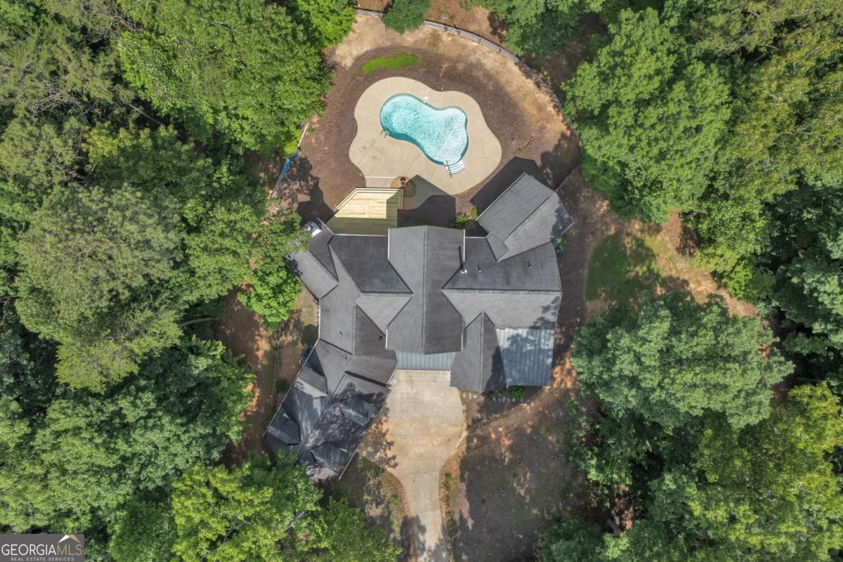Nestled in the community of Fisher Creek Estates, this unique 4-bedroom, 3.5-bathroom custom home offers the perfect blend of luxury, comfort, and natural beauty on over 3 acres of private, wooded acreage. Ideal for entertaining or tranquil everyday living, every inch of this residence exudes thoughtful design and high-end finishes, making it a true gem. Step inside to an open-concept main level bathed in natural light from a dramatic wall of windows, creating an airy and inviting atmosphere that seamlessly connects indoor and outdoor spaces. The heart of the home is the gourmet kitchen, a chef's dream featuring exotic Brazilian granite countertops, sleek tiled flooring, and top-of-the-line stainless steel appliances-including a gas range with convenient pot filler and a spacious island with an additional sink for effortless meal prep and gatherings. Custom cabinetry provides ample storage, while the adjacent dining area flows effortlessly into the living spaces. Relax year-round in the sunroom, complete with a cozy adobe-style fireplace and direct access to a private patio-perfect for morning coffee or evening stargazing amid the surrounding trees. The main-level primary suite is a private oasis, boasting oversized windows with breathtaking views of the lush backyard and inground pool. Unwind in the spa-like en-suite bathroom, outfitted with a luxurious waterfall showerhead, oversized soaking tub, dual vanities, and expansive walk-in closet. Upstairs, discover a versatile space, ideal for remote work, hobby room or as a fourth bedroom with its own full bath. A large mudroom and laundry area, complete with a utility sink, leads to the attached 2-car garage, which includes abundant storage space. Outside, there is a sparkling inground pool surrounded by mature hardwoods and gentle terrain, offering endless opportunities for outdoor enjoyment in this peaceful neighborhood. Recent updates, including fresh interior paint and a beautifully landscaped front yard, enhance the home's move-in-ready appeal.