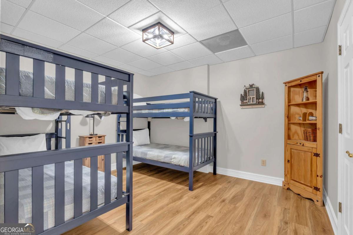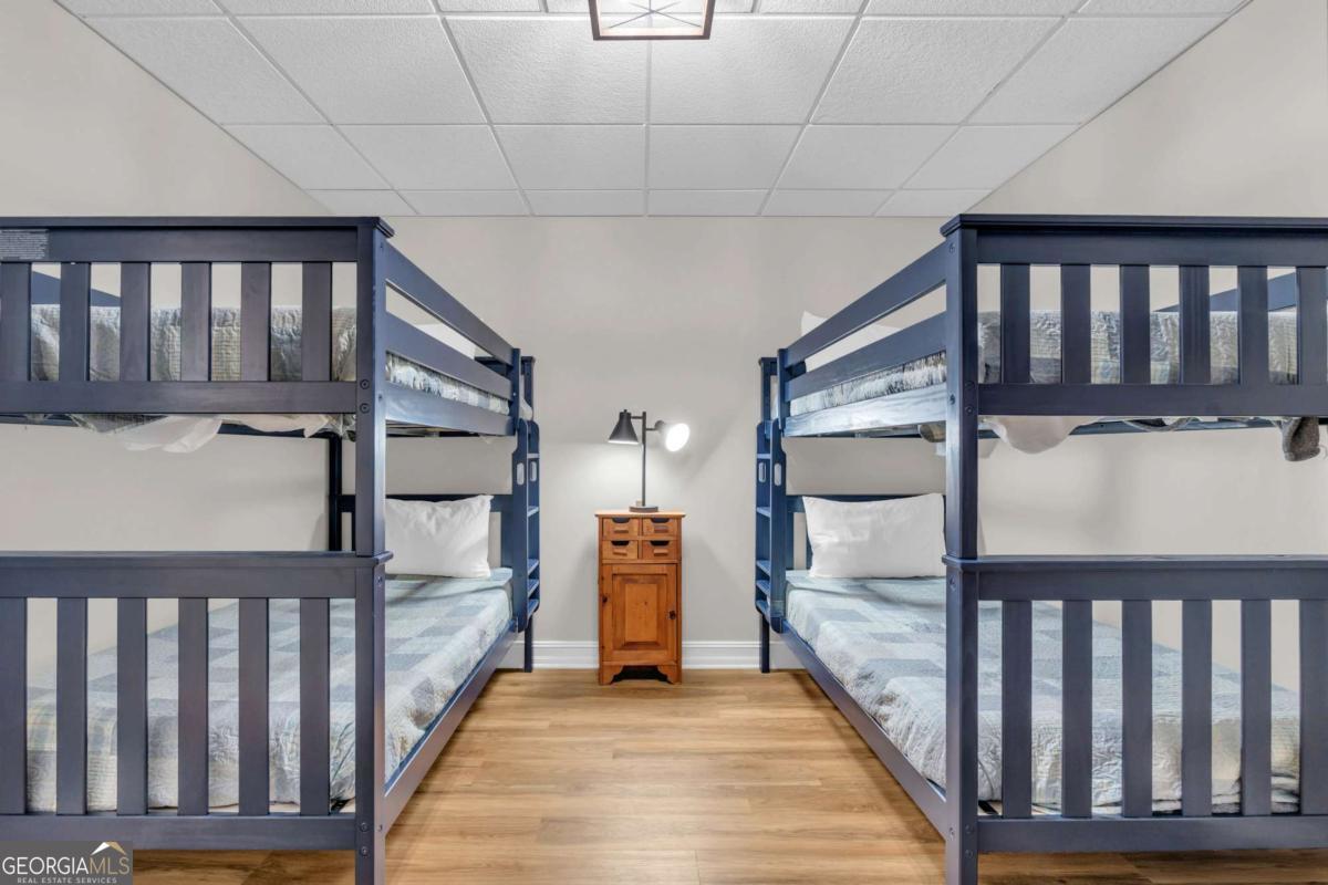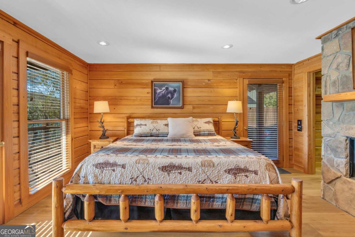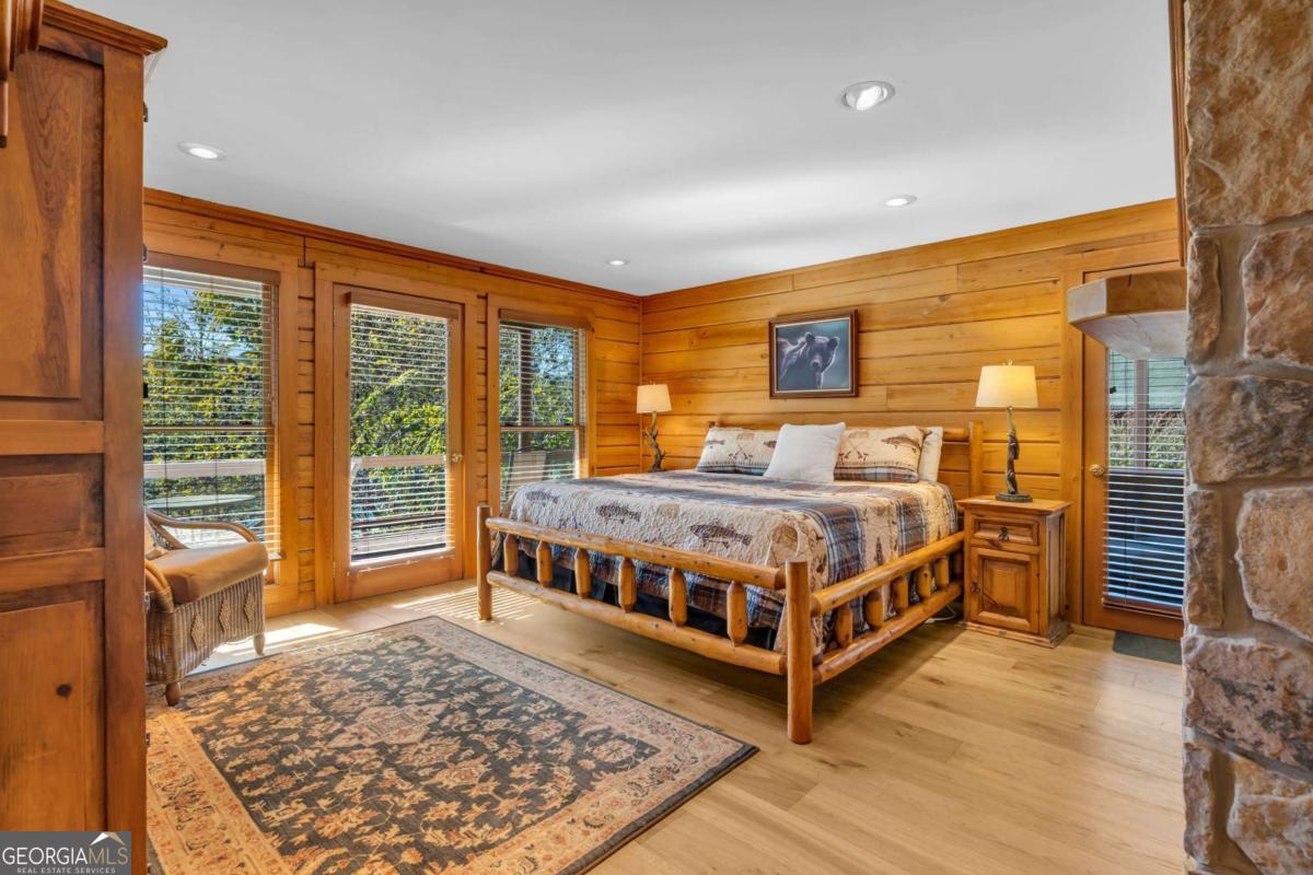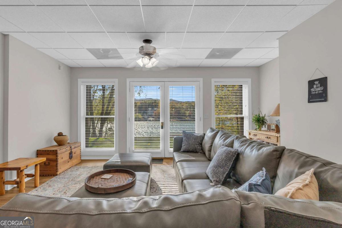 As you arrive, the mountains and lake unfold before you, hinting at the beauty that greets you at every turn. Stepping through the large entrance foyer, sunlight filters across tongue-and-groove walls and beamed ceilings, giving a sense of warmth, space, and care. Your eyes are drawn to the great room, where a stone fireplace anchors the space, and walls of windows frame a view that could never be captured in a photograph-Brasstown Bald rising in the distance, long-range peaks stretching, and the lake glimmering. To your left, the dining area opens onto one side of the screened porch. A ping pong table waits for afternoons of laughter, games, and friendly competition, blending fun with the serenity that surrounds the home. On the other side, the owner's suite steps onto its own screened porch, a private perch for morning coffee or quiet reflection as sunlight dances across the water. Inside, the suite offers a fireplace and small kitchenette, creating a self-contained space that feels like a personal retreat. Descending to the basement, you find a modern living area and kitchen, along with three sleeping rooms, offering flexibility for guests or family, keeping the home's focus-the connection to the lake, the mountains, and life outdoors. Outside, the land slopes gently toward the lake, where a two-slip dock with a large sun deck awaits, perfect for boating, lounging, or sunsets. Evenings might be spent around the fire pit under a starry sky or enjoying a spontaneous swim. Every step outside brings a new perspective, whether a long-range mountain vista or the sparkling lake reflecting light. Throughout the home, every detail encourages you to pause: the crackle of a fireplace, the soft mountain breeze through porch screens, laughter from a game of ping pong, and quiet moments when it's just you and the view. This is a home designed to be lived in, experienced, and cherished, where everyday life feels extraordinary-the mountains and lake are always at your doorstep.