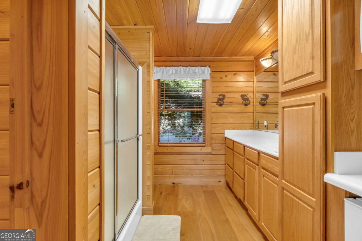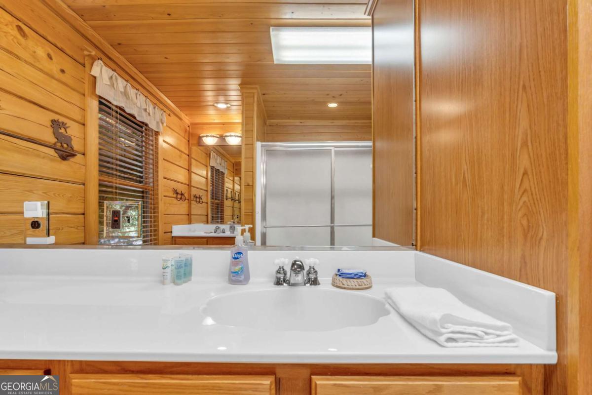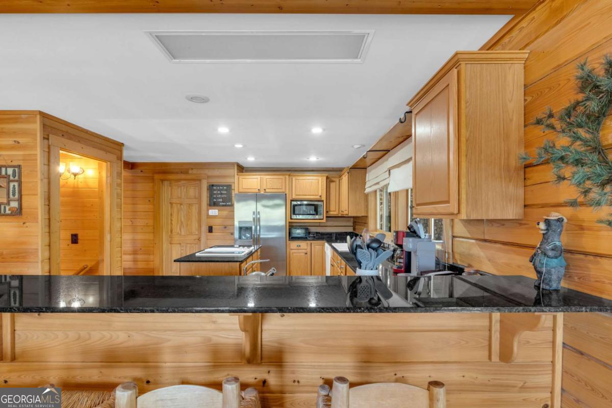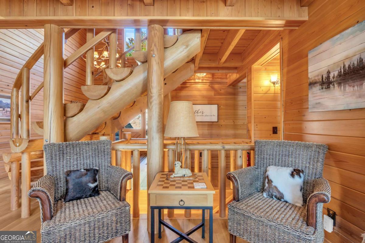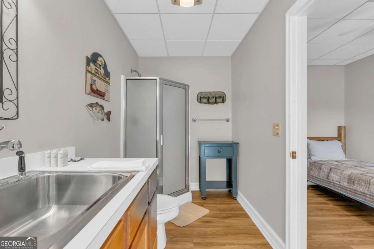 As you arrive, the mountains and lake unfold before you, hinting at the beauty that greets you at every turn. Stepping through the large entrance foyer, sunlight filters across tongue-and-groove walls and beamed ceilings, giving a sense of warmth, space, and care. Your eyes are drawn to the great room, where a stone fireplace anchors the space, and walls of windows frame a view that could never be captured in a photograph-Brasstown Bald rising in the distance, long-range peaks stretching, and the lake glimmering. To your left, the dining area opens onto one side of the screened porch. A ping pong table waits for afternoons of laughter, games, and friendly competition, blending fun with the serenity that surrounds the home. On the other side, the owner's suite steps onto its own screened porch, a private perch for morning coffee or quiet reflection as sunlight dances across the water. Inside, the suite offers a fireplace and small kitchenette, creating a self-contained space that feels like a personal retreat. Descending to the basement, you find a modern living area and kitchen, along with three sleeping rooms, offering flexibility for guests or family, keeping the home's focus-the connection to the lake, the mountains, and life outdoors. Outside, the land slopes gently toward the lake, where a two-slip dock with a large sun deck awaits, perfect for boating, lounging, or sunsets. Evenings might be spent around the fire pit under a starry sky or enjoying a spontaneous swim. Every step outside brings a new perspective, whether a long-range mountain vista or the sparkling lake reflecting light. Throughout the home, every detail encourages you to pause: the crackle of a fireplace, the soft mountain breeze through porch screens, laughter from a game of ping pong, and quiet moments when it's just you and the view. This is a home designed to be lived in, experienced, and cherished, where everyday life feels extraordinary-the mountains and lake are always at your doorstep.