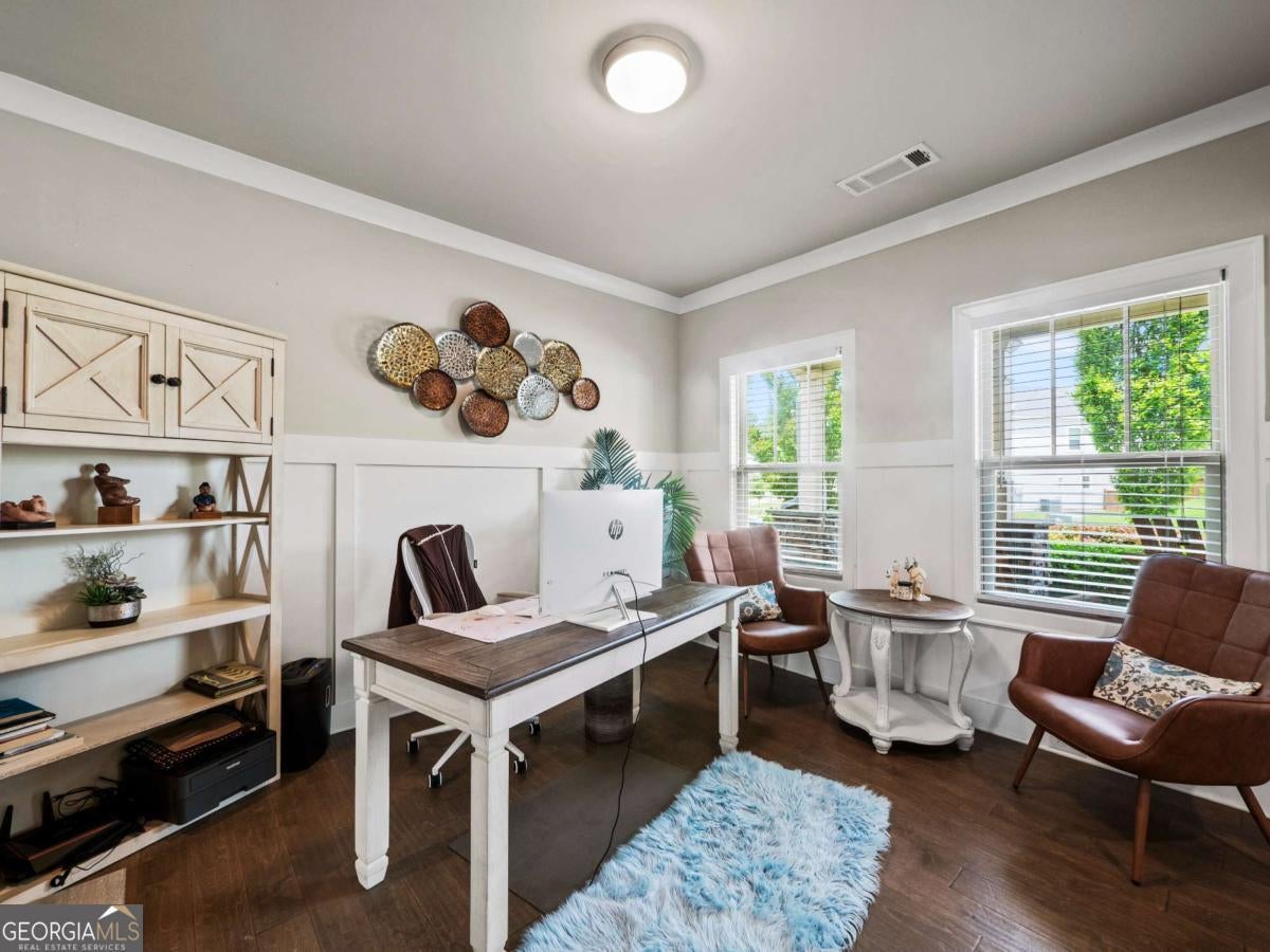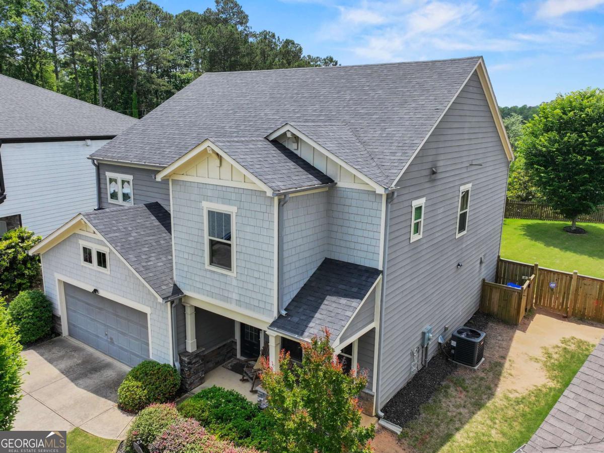 Perfectly located off Hwy 20, between Forsyth and Gwinnett Counties, this beautifully maintained home offers quick access to GA 400, I-985, and I-85. You'll be just minutes from charming Downtown Sugar Hill and a short drive to the Mall of Georgia. This home is packed with upgrades and thoughtful extras-truly ideal for modern family living. Step inside to find elegant wainscoting and modern crown molding in the formal dining room. The open-concept kitchen is a chef's dream, featuring gorgeous neutral granite countertops, rich dark cabinetry, and a massive island perfect for casual dining or entertaining. Just off the kitchen, enjoy the convenience of a large walk-in pantry, a handy butler's pantry nook, and a cozy sunroom perfect for relaxing with your morning coffee. The living room offers abundant natural light and a gas fireplace, creating a warm and inviting atmosphere. Gleaming neutral wood floors flow throughout the main level, which also includes a stylish half bath and a functional mudroom/drop zone with built-in seating and storage, just inside the spacious two-car garage. Upstairs, you'll find four generous bedrooms and a versatile loft space currently set up as a home theater, complete with luxurious velvet blackout curtains and theatre seating for four-your private movie night haven! The secondary bedrooms share a large full bath with double vanities and a tub/shower combo. Retreat to the expansive primary suite featuring a spa-like ensuite bath, an oversized tiled shower, and a large walk-in closet filled with natural light. Step outside to your private, fenced backyard oasis-featuring an impressive 40' x 20' custom stamped concrete patio, Hot Tub, pergola, and fruit-bearing Peach and Pear trees, plus a Blackberry bush. Perfect for entertaining or simply enjoying peaceful moments outdoors. Additionally, there is also a walking path with access to a fishing pond and nature trails a few doors away from this property (neighborhood access path) Additional highlights of this home include a freshly painted Exterior, tankless water heater, upgraded spray foam insulation, Custom window blinds, and enhanced energy efficiency throughout! NOTE: Hot Tub, pergola/awning and firepit plus 4 chairs, and custom made, blackout home theatre curtains (All included with sale of home) Make your Appointment through Showing Time TODAY! 24HR Notice is Requested for showings. $2000 Lender Credit being offered if you use Preferred Lender