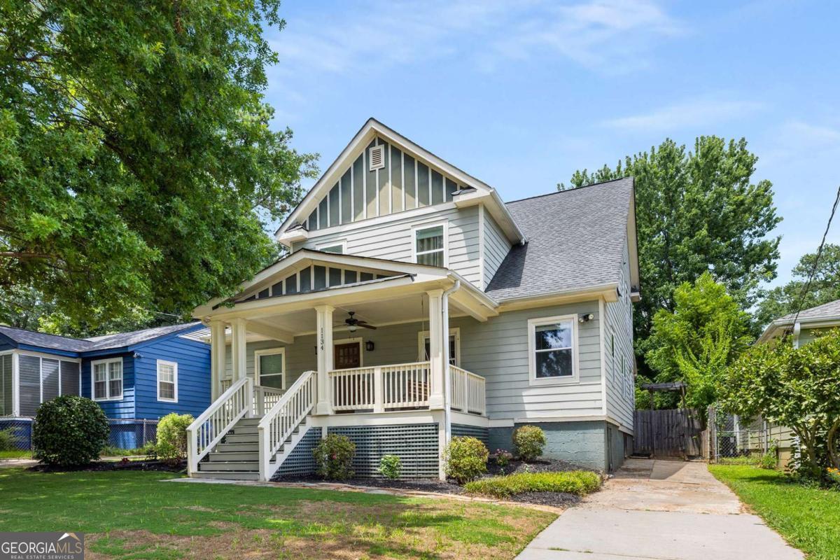 Set in the Woodland Hills neighborhood, this home offers an open layout, good space, ample storage and a location that makes getting around the city simple. A wide front porch welcomes you in. Inside, natural light, hardwood floors, and an open connection between the living room, dining area, and kitchen make everyday use feel effortless. The kitchen has granite counters, stainless appliances, and a large pantry. Upstairs, the primary suite includes a large walk-in closet, dual vanities, a soaking tub, and separate shower. The secondary bedrooms are generous in size, each with walk-in closets, plus there's a bonus space that works well as an office or playroom. Outside, the backyard is private and tree-lined, with room to relax and a storage shed for extras. The location is a key strength - quick access to I-75/85, I-20, I-285, and I-675 streamlines commuting across Atlanta and beyond. It's also less than a mile from the Southeast BeltLine Trail and minutes to Grant Park, Ormewood Park, and East Atlanta Village. And being only 15 minutes from Hartsfield-Jackson International Airport makes travel especially convenient.