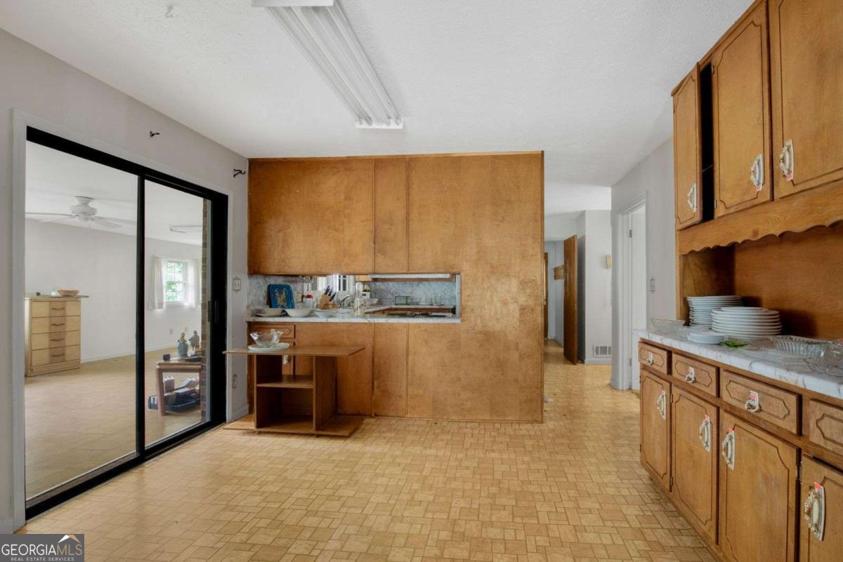 Endless Possibilities in a Prime Location! Welcome to this exceptional O&I property offering the perfect blend of business opportunity and residential potential! Situated on a high-visibility corner lot with steady drive-by traffic, this space is ideal for medical professionals, attorneys, or small business owners seeking a convenient, well-located office. There is 250 feet of road frontage on Flat Shoals and 132 feet of frontage on Avalon Blvd with 2 curb cuts. The property features a wrap-around driveway with 2 road entrances & plenty of parking options including a 2-car garage and covered entrance carport. Inside, discover 3 spacious bedrooms that can be private offices and 3 full bathrooms on the main level, a beautiful family room with vaulted ceilings with a stone fireplace, a massive open formal living room that would be a great waiting area that connects to the dining room & kitchen and a large back porch. There is a separate laundry room & full bathroom off the kitchen near another front entrance/exit and the garage. A full basement with a fourth bathroom & second stone fireplace is accessible in the front entry hallway by a charming spiral staircase & provides additional space for storage, expansion options, or creative use. Outside, another driveway leads to the back of the property with a small pond and a large as-is barn, offering even more versatility for storage with the right renovation. The corner lot provides excellent visibility and easy access to I-20 (directly across from the Salem Road Corridor), public transportation, shopping, and restaurants - making it a truly convenient and desirable location for both work and home life. Whether you're looking to establish your business in a premier spot or renovate this property into a stunning private residence, this property is full of potential and ready for its next chapter!