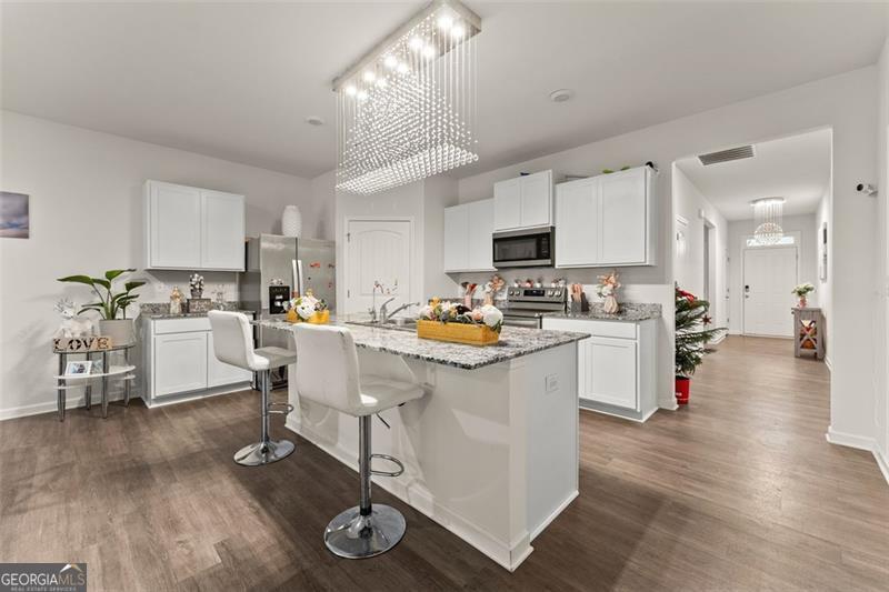 Welcome to this stunning 4-bedroom, 2-bath ranch-style home in the charming community of Walnut Grove. Designed for comfort and style, this move-in-ready residence features an open, spacious layout ideal for modern living. The bright living area flows seamlessly into the inviting kitchen, which features hardwood flooring, granite countertops, and a large island perfect for entertaining. This floor plan includes a serene owner's suite with a double vanity, a relaxing garden tub, and an oversized walk-in closet, along with three additional bedrooms that provide ample space for family or guests. Step outside to enjoy a private backyard complete with a covered patio. The community offers fantastic amenities, including a pool, park, and playground, enhancing your everyday living experience. This home feels like new and provides the perfect blend of modern design and comfort. Conveniently located near downtown Pendergrass, with easy access to shopping, dining, and I-85.
