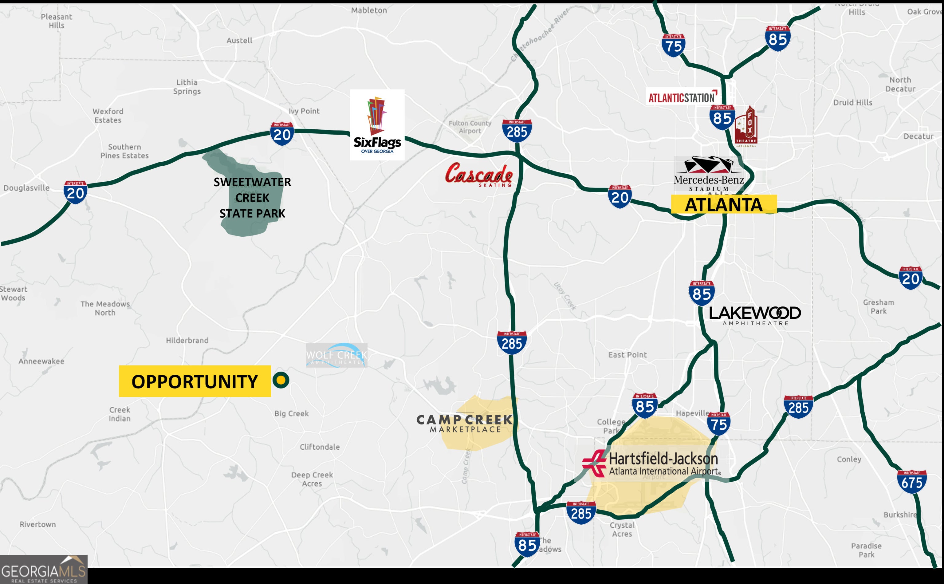 Exceptional opportunity to acquire 7 acres of CUP-zoned land, within the City of South Fulton's Cliftondale Overlay District, positioned for flexible development or future assemblage. This gently rolling, mostly wooded tract features an average slope of only 6, providing highly usable terrain for estate construction, modular homes, or small residential development. Located minutes from Hartsfield-Jackson Atlanta International Airport, Camp Creek Marketplace, and the I-285/I-20 corridors, the property benefits from quick access to Atlanta's major transportation and employment hubs while retaining a quiet, private setting. Utilities include public water and electric service at the road, with sewer located nearby (connection subject to easement and verification). The CUP zoning allows a broad range of uses from single-family or modular homes to multifamily or continuing care communities (up to 9 units/acre). Its strategic location and adjacency to other large tracts create an ideal assemblage opportunity for developers seeking additional scale in South Fulton's growth corridor. Whether envisioned as a private homesite, boutique residential enclave, strategic land hold in South Fulton's growth corridor, or part of a larger master-planned community, this tract offers a balanced blend of location, infrastructure access, and long-term upside in one of metro Atlanta's most dynamic submarkets.