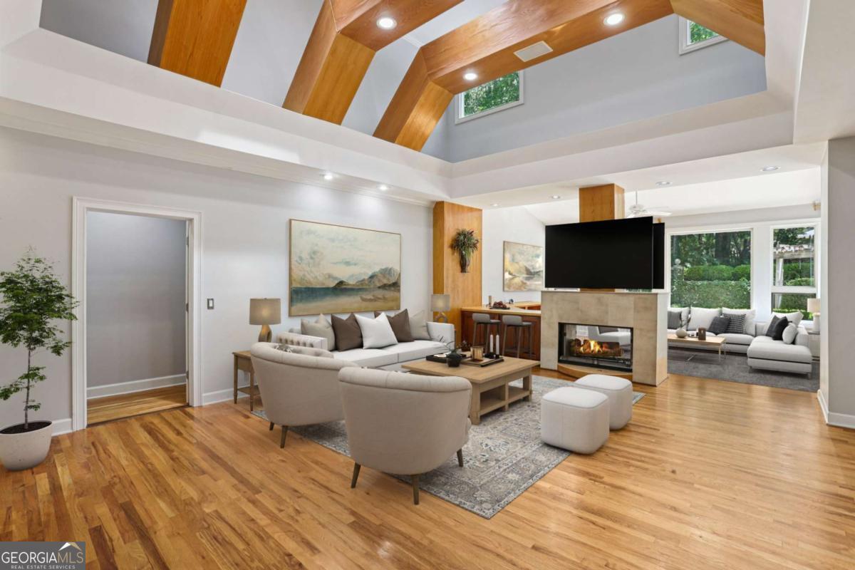 ***Top Rated Schools***Sun Room w/ Double Sided Fireplace***Finished Terrace Level***Motivated sellers-bring your offers! Tucked beneath mature trees and zoned for highly sought-after Sope Creek Elementary, Dickerson Middle, and Walton High, this beautiful home offers a peaceful retreat just moments from Indian Hills and Atlanta Country Club. A striking two-story foyer leads to elegant formal living and dining spaces, while the main living room features dramatic wood-beamed ceilings and a double-sided fireplace shared with the light-filled sunroom. The updated kitchen showcases granite countertops, a large island with second sink and gas cooktop, stainless steel appliances, and two dishwashers. The expansive main-level primary suite features a generous bedroom with a sitting area and a spa-style bath with dual sinks, soaking tub, and frameless glass shower. Upstairs, 3 hardwood-floored bedrooms each offer private or shared en-suite access. The finished terrace level includes a spacious open living area, two flex rooms, a bedroom, full bath, and unfinished storage-ideal for a rec room, gym, or office setup. Outside, relax in your private backyard haven with stone patio, pergola, peaceful pond, fire pit, and meandering garden paths. Book your tour today to see this showstopping home!