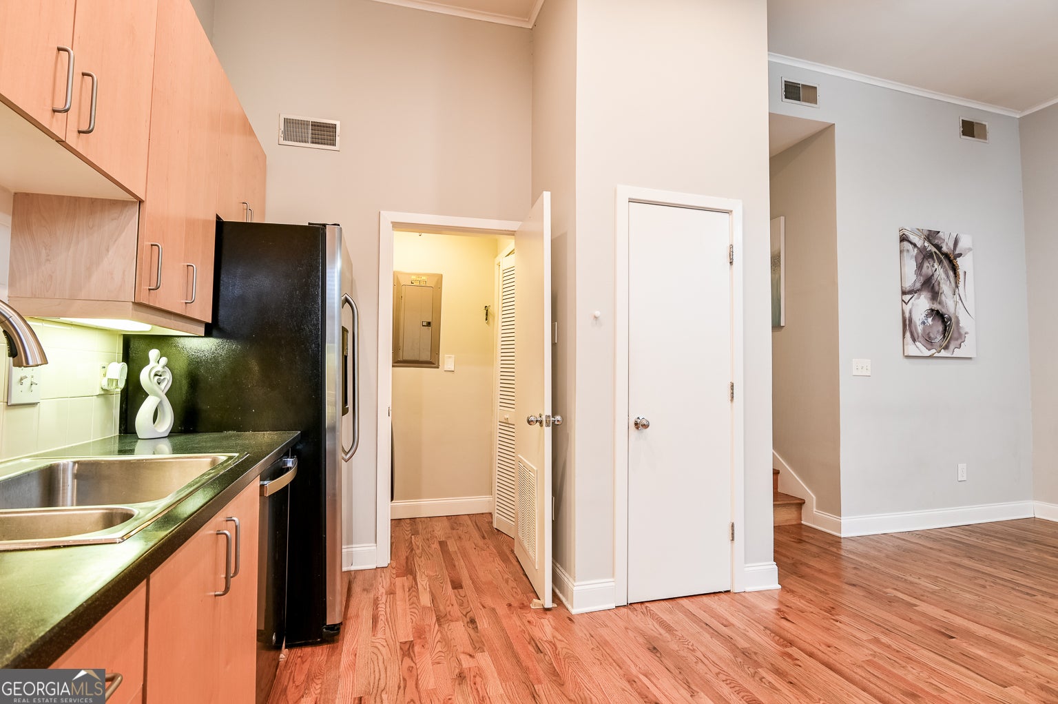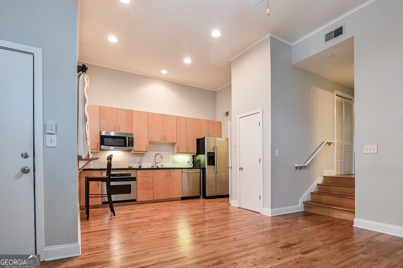 Beautiful Midtown Condo Steps from GEORGIA TECH! Welcome to this spectacular 1-bedroom, 1-bath condo located in a small, secure GATED COMMUNITY with LOW monthly HOA fees. This wonderful home features TWO COVERED, DESIGNATED, PARKING SPACES plus a separate storage unit, and there's even visitor parking available. Enjoy an open floor plan with soaring 14-foot ceilings and gleaming hardwood floors, freshly painted in neutral tones. The modern kitchen offers ample cabinet space, stainless steel appliances, a new dishwasher, tile backsplash, and a pantry for extra storage. Additional highlights include a laundry room and a spacious custom-built closet in the bedroom. Perfectly situated within walking distance to Atlantic Station, Fox Theatre, and Piedmont Park, with easy access to shopping, restaurants, public transportation, and entertainment. Don't miss your chance to experience the best of Atlanta living in this exceptional Midtown condo!