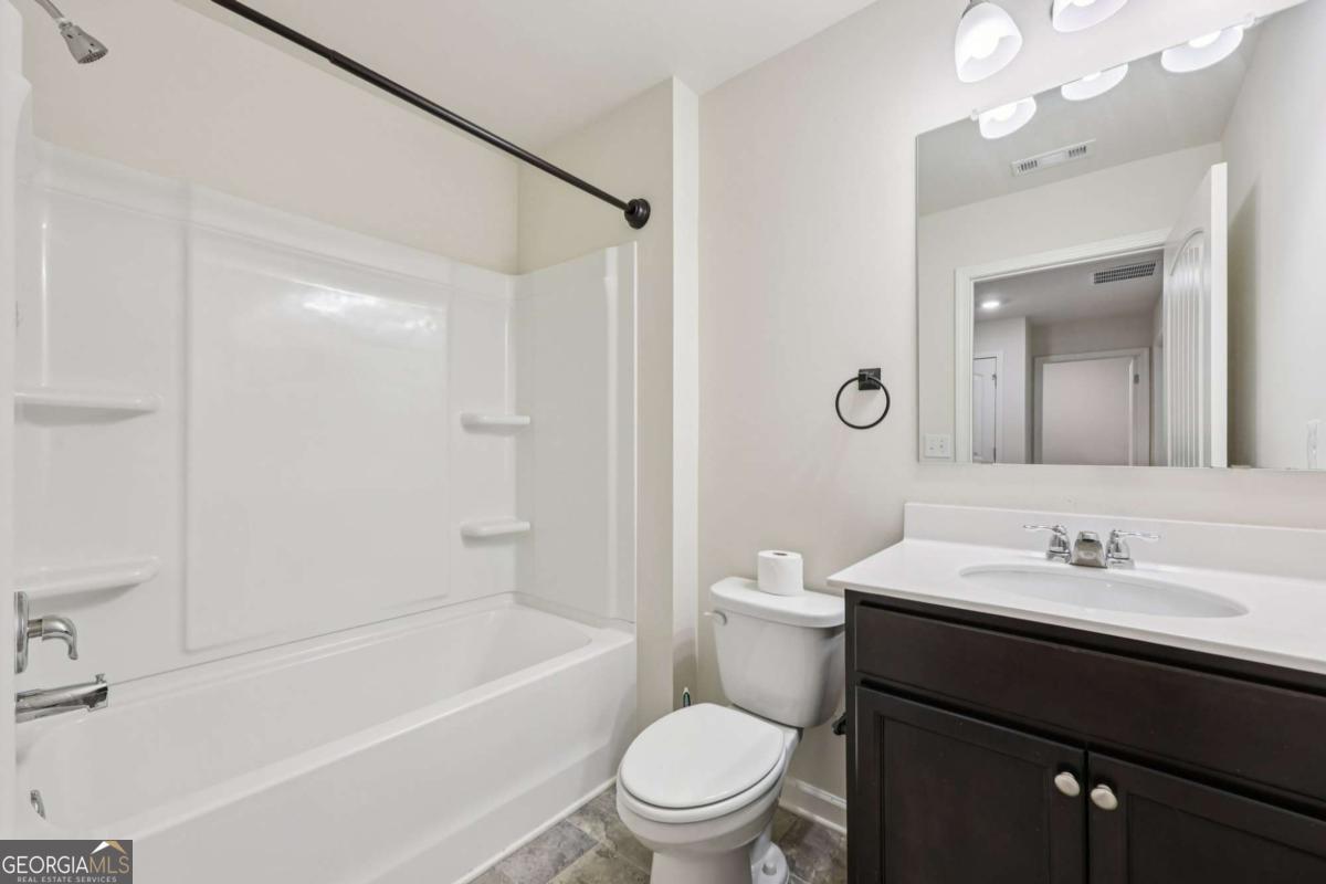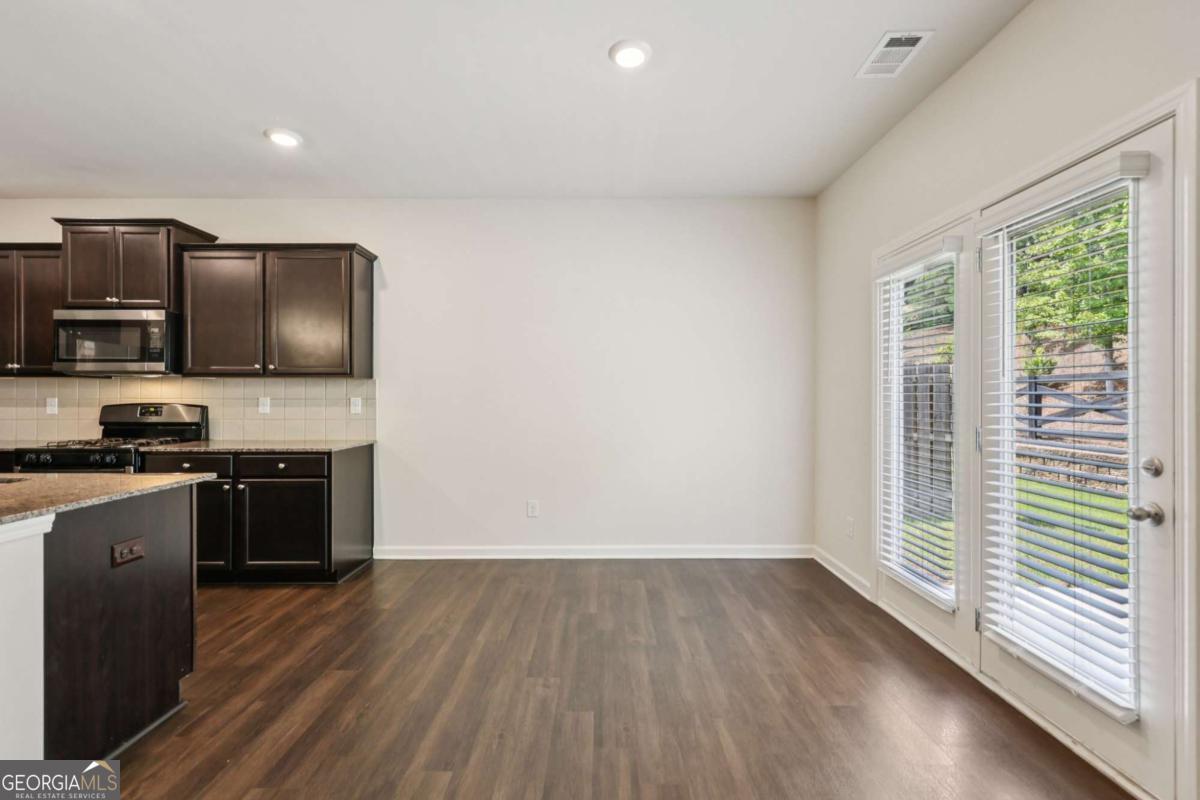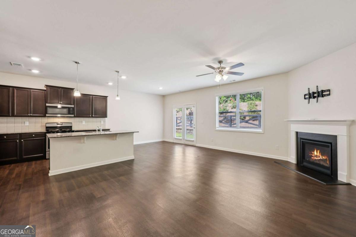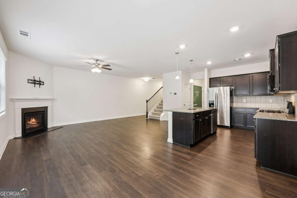 Move-in ready home offering fresh updates and everyday convenience! The main level features beautiful, low-maintenance vinyl wood flooring throughout. Enjoy a bright, open-concept living room with plenty of natural light and a cozy fireplace, flowing effortlessly into the stylish kitchen with a large island with seating, granite counters, stainless steel appliances, and generous cabinet storage. A half bath completes the first floor. Upstairs, the primary suite impresses with a tray ceiling, en-suite bath with dual sinks, soaking tub, separate glass shower, and two walk-in closets. Two secondary bedrooms share a full hall bath, and the laundry room is conveniently upstairs as well! Outside, relax on the spacious patio ideal for grilling and entertaining, plus a private green space backing to woods. Two storage areas provide extra organization! Recent updates include fresh caulking and exterior pressure wash, plus all wood trim painted including fascia, soffits, gutters, and downspouts. Fantastic location near Hwy 92-schedule your showing today! Mortgage savings may be available for buyers of this listing.