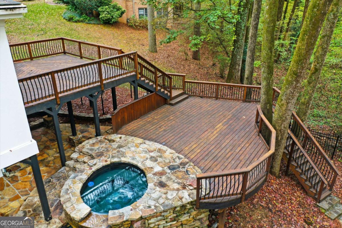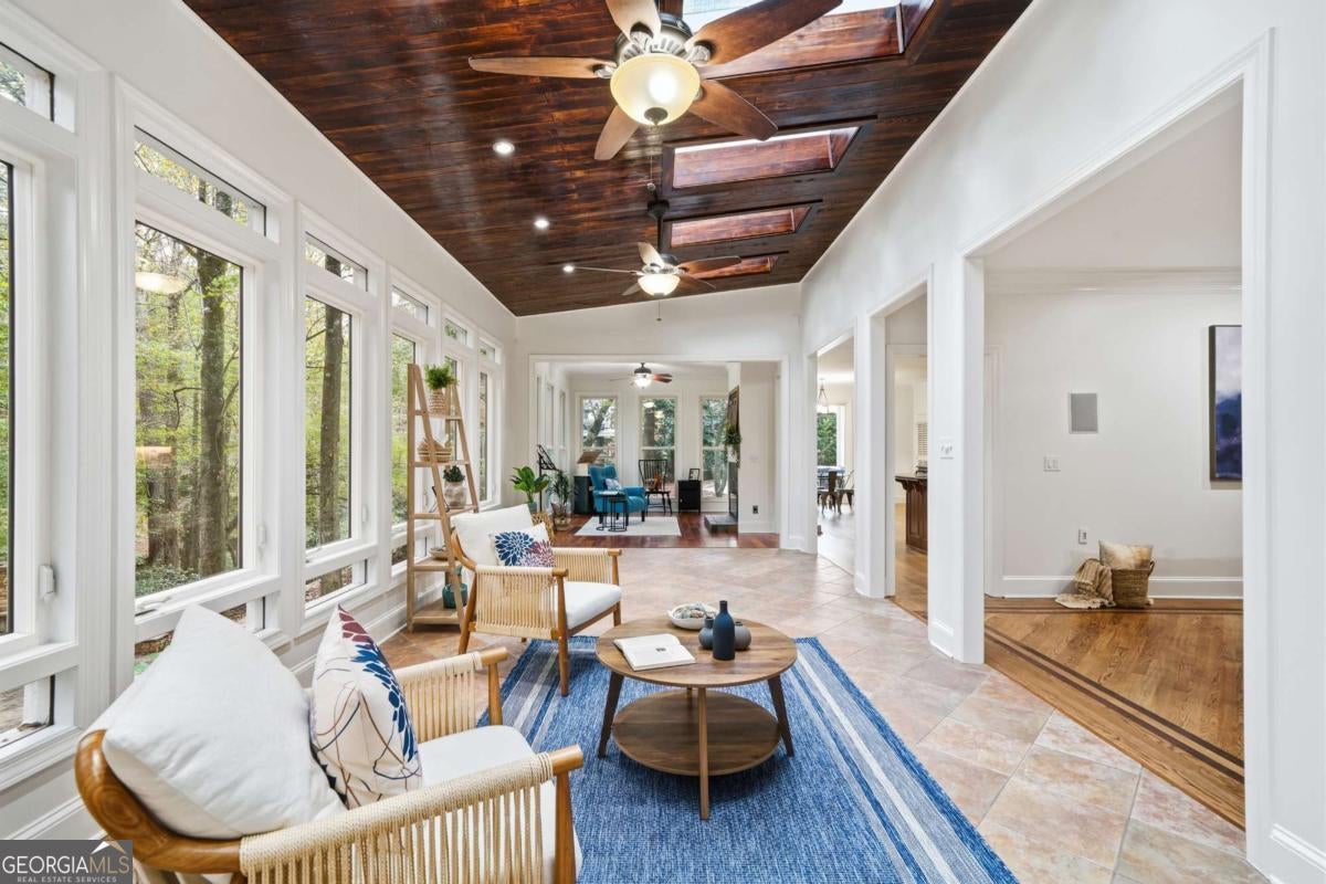 Nestled on a serene cul-de-sac in the heart of Brookfield Country Club, this traditional two-story estate home combines timeless elegance with resort-style living! From the moment you enter, you'll appreciate the refined details - newly refinished hardwood floors, generous living spaces, and sun-filled rooms that flow beautifully for entertaining and everyday comfort. The main level features a stunning sunroom spanning the back of the home, showcasing vaulted ceilings, skylights, and sweeping views of the heated gunite pool, hot tub, and stone patio with outdoor fireplace. The open kitchen adjoins the sunroom and includes its own cozy fireplace - the perfect gathering space for casual meals or morning coffee. A spacious family room with fireplace, oversized living room perfect for home office or keeping room, and a formal dining room with seating for twelve complete the main level, offering a seamless blend of sophistication and warmth. Upstairs, the oversized primary suite is a true retreat with a private sitting area and fireplace. The spa-inspired bath boasts an oversized steam shower with six body sprays, a separate garden tub, and dual vanities - creating a luxurious space to unwind. The finished daylight terrace level expands the home's living and entertaining potential, featuring a beamed-ceiling den with fireplace that opens to a covered patio and the pool area. This level also includes two mirrored exercise rooms, a steam room with seating for eight, and a bedroom with full bath - ideal for guests, an au pair suite, or multi-generational living. Outdoor living takes center stage with multiple spaces designed for relaxation and entertainment - from the two-tiered deck off the sunroom to the beautifully landscaped pool and patio area featuring a custom designed stone hardscape with fireplace, that feels like a private resort and is id.eal for gatherings, relaxation or weekend entertaining. Located within one of Roswell's most desirable golf and tennis communities, and just minutes from Roswell's best restaurants, shopping, and parks, this Brookfield Country Club estate offers the perfect blend of luxury, lifestyle, and location. - just minutes from Historic Downtown Roswell, Southern Post, and Roswell's premier parks including Leita Thompson Memorial Park.