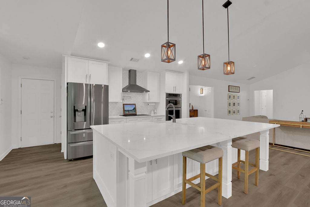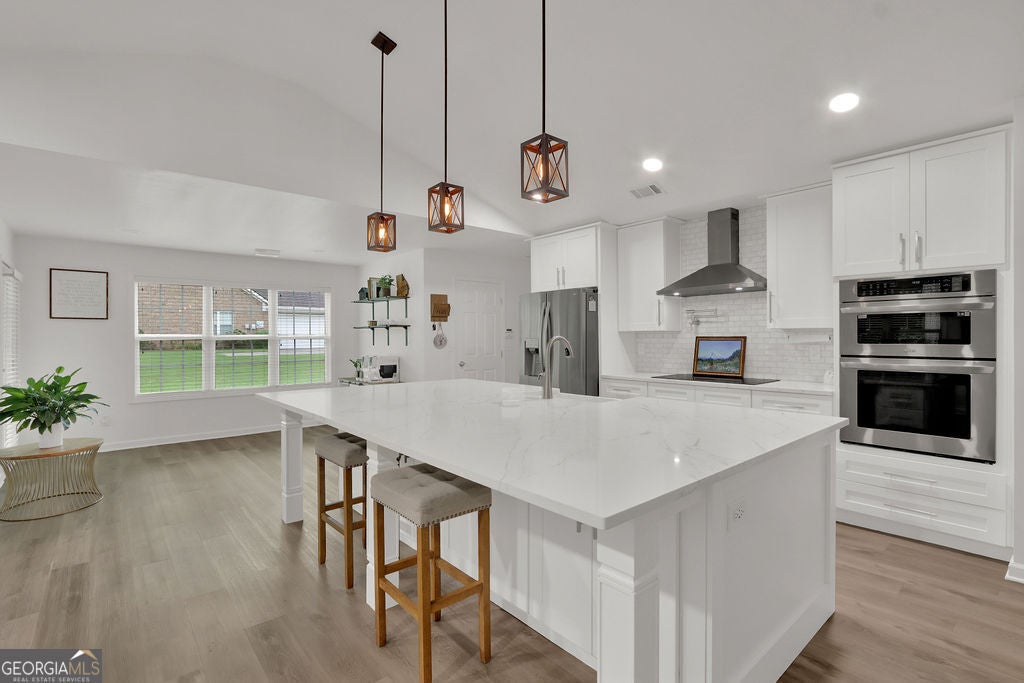 Welcome to this beautifully renovated farmhouse-style home, situated on a large, level .62-acre lot on a quiet cul-de-sac. This 4 full bedrooms and 3 full baths, this home updated by the current seller, offers modern comfort with timeless charm. Step inside to an open and inviting walk-in foyer with all-new luxury vinyl flooring throughout. The main floor boasts 3 spacious bedrooms, while a bonus room upstairs-complete with its own full bath and closet-offers the perfect flex space for a guest suite, office, bedroom or media room. Enjoy cooking and entertaining in the oversized kitchen, features a large kitchen island that will seat 8, all-new white cabinetry, stainless steel appliances, a farmhouse sink, eat-in breakfast area, oversized casual dining room, with direct access to the patio. The newly designed walk in pantry and under stair storage offers you plenty of space to organize. This area is fully open to an expanded living space featuring a gas starter, ceramic logs white brick fireplace. This room also allows you direct outside to a paved patio perfect for gatherings, with plenty of space to expand or create your backyard oasis. Additional features include, 3-car garage, true farmhouse design details. This home is in a quiet area but also a prime location near shopping, schools, and Hwy 316-ideal for commuting to Atlanta or Athens. This home is gorgeous, move-in ready, and offers the perfect blend of style, function, and location. Don't miss your chance to own this unique gem!