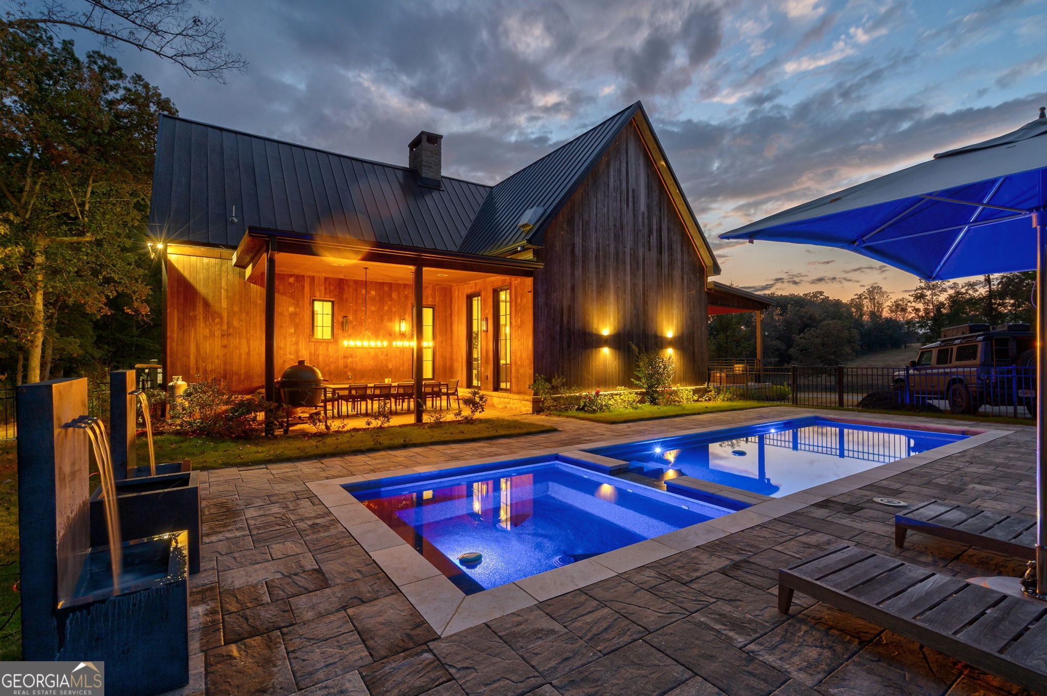 Where Luxury Meets Country Living - Northern Morgan County Estate - Welcome to an extraordinary 123-acre turnkey retreat in northern Morgan County, ideally situated between the historic charm of Madison and the culture/football of Athens, Georgia. Designed by Studio BNA with interiors curated in collaboration with Restoration Hardware, the vast estate is composed a 4,022-square-foot main luxury home with two bedrooms, two full baths and one half bath. Mirroring the main house is the stunning two-car garage with glass-paneled garage doors, which is also home to the spacious, beautifully furnished 1,440 square-foot guest loft apartment, complete with a full kitchen, soapstone countertops, and another luxurious bath featuring Carrara marble, soaking tub, and Kohler bidet toilet. Truly a nature-lovers dream, this estate effortlessly blends modern luxury with timeless sophistication. Offered fully furnished, it is ready to enjoy from the moment you arrive. A long stretch of black-board fencing frames the property's impressive road frontage, leading to rolling pastures, mature hardwoods, and a spring-fed pond that reflects the serenity of the landscape. Fenced and cross-fenced with multiple water sources, the acreage is perfectly suited for horses or cattle. A large open-air barn with water and electricity provides ample functionality for agricultural or entertaining needs. From the front of the home, enjoy sweeping vistas of the stocked pond, rolling hills, and pastoral sunsets through the massive glass sliding doors that define the architecture's seamless connection between indoors and out. Inside, the home is light-filled and inviting, with vaulted ceilings, a grand fireplace, and exquisite designer lighting throughout. Multiple porches-each designed for leisure or entertaining-offer fireplaces, TVs, and dining areas to enjoy every season in comfort. The chef's kitchen features custom raw oak cabinetry, soapstone countertops, and a full suite of professional-grade appliances, including 2 Sub-Zero refrigerators with glass panel doors, Scotsman icemaker, Viking dishwasher, and 6-burner Viking range with double ovens. The main-level owner's suite is a private sanctuary with over 10-foot ceilings, hardwood floors, and a spa-caliber bath boasting Kallista fixtures, a Kohler bidet toilet, Carrara marble shower, and soapstone vanity. Upstairs, a charming bunk room with two queen beds and ensuite bath provides a perfect space for guests. Each bedroom includes flat-screen TVs, elegant lighting, and serene property views. The finished basement level offers dual purpose-half an entertainment or media space, and half a reinforced safe room for peace of mind. Outdoors, unwind beside the heated saltwater pool and hot tub, or tend to the deer-fenced garden and grow house, complete with irrigation and raised beds ready for the next harvest. From its architectural pedigree to its panoramic views, turnkey elegance, and exceptional privacy, this Morgan County estate represents the perfect balance of luxury, leisure, and land stewardship-a rare find where every element has been thoughtfully crafted to elevate rural living to an art form. This property is in Morgan County's Tax Conservation use program.