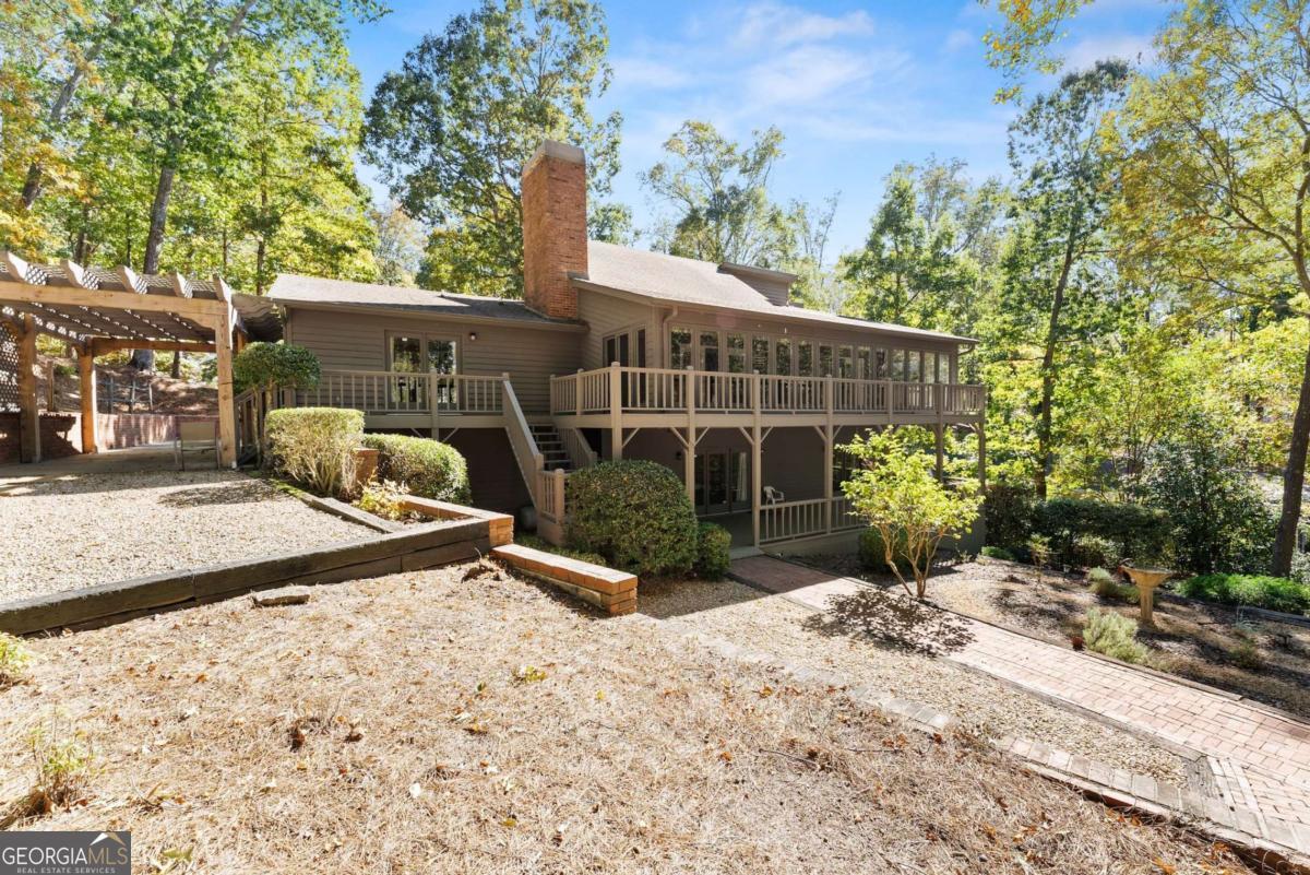 Never before on the market. One-owner, meticulously maintained, custom-built LAKE LANIER home with Deep Water and PRIVATE DOCK in a prime location perfectly positioned between the Chestatee and Chattahoochee Rivers, offering a balance of luxury, leisure, and lake life serenity on stunning 0.91 Acre Lot. This one-owner residence features over 3,000 square feet of inviting space designed for both relaxation and entertaining. This 3BR/2.5 Bath, open-concept main level welcomes you with a brick fireplace, expansive lake-view windows, and effortless flow into the dining and living spaces. Primary Suite on the main level boast a large primary bath. The home features an expansive sunroom off the back of the house with wonderful views of the lake, great to enjoy year-round. Spacious Great room, Separate dining area could be a keeping room. The terrace level includes a second full kitchen, recreation area, and another brick fireplace, providing flexible space for guests, family, or easy conversion into a fourth bedroom. Additional space for storage. Two car attached garage, additional park space. Beautiful covered arbour with great views of the lake make for a charming entertaining space. Step outside to a gentle, easy walk to your private, deep-water, single-slip dock. Endless Possibilities. Located in the heart of the lake, you're minutes from popular marinas(Port Royal,Aqualand,Sunrise Cove and lakeside restaurants (Pelican Pete's & Scogies) by water, combining convenience with the peaceful charm of lakefront living. Close to River Forks Park, 10 minutes to Downtown Gainesville. Conveniently located between Hwy 400 and I985.