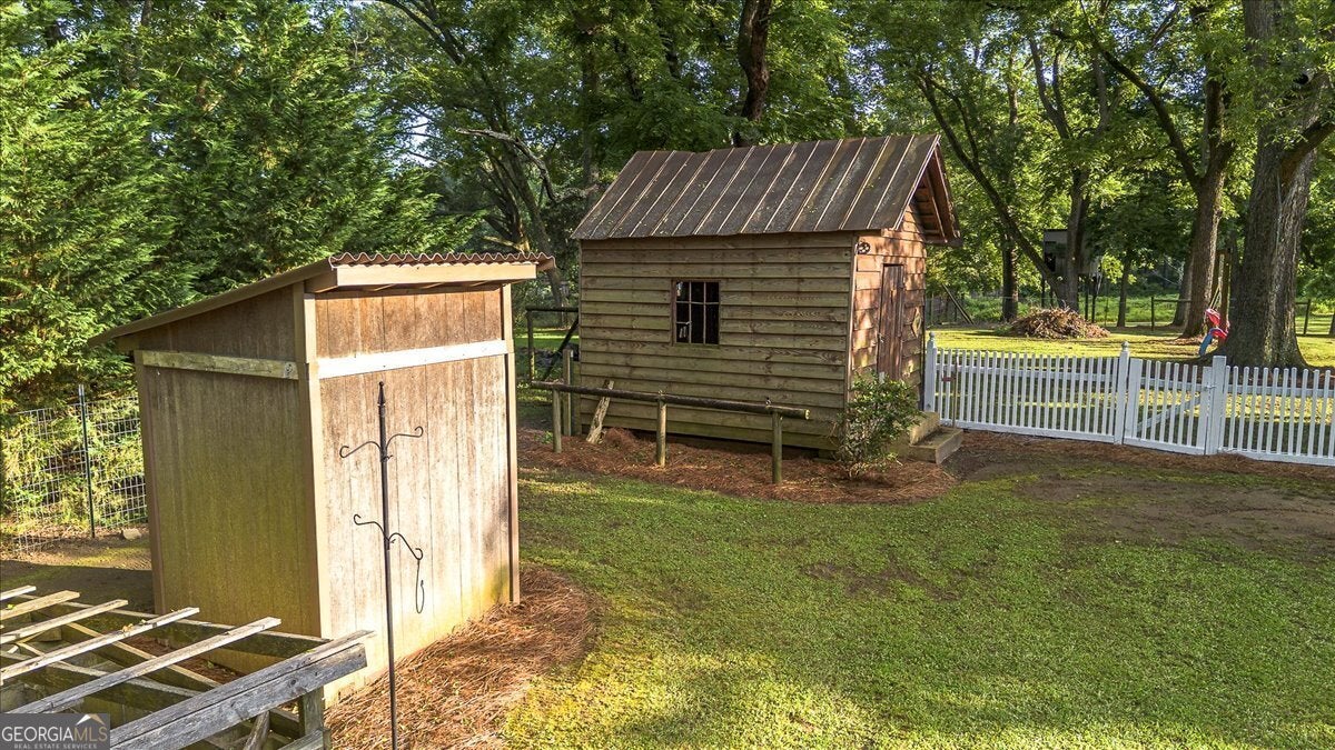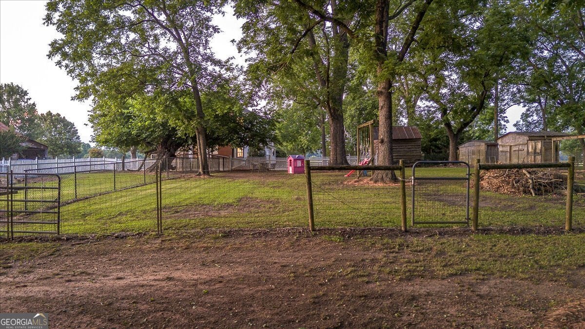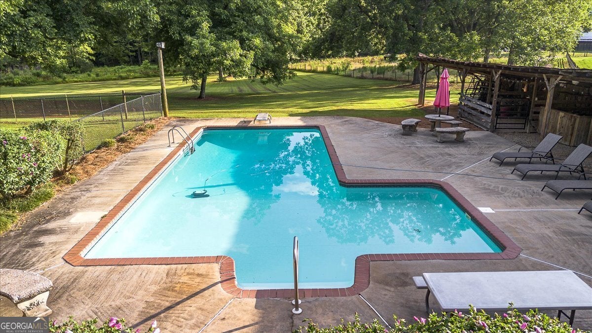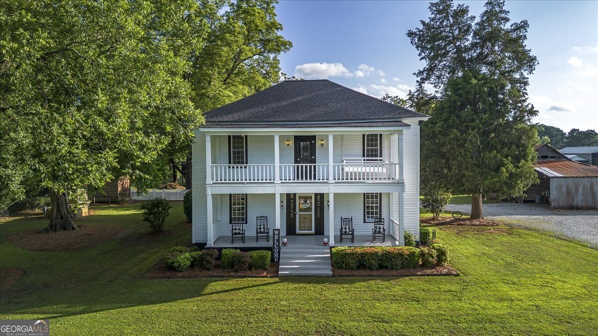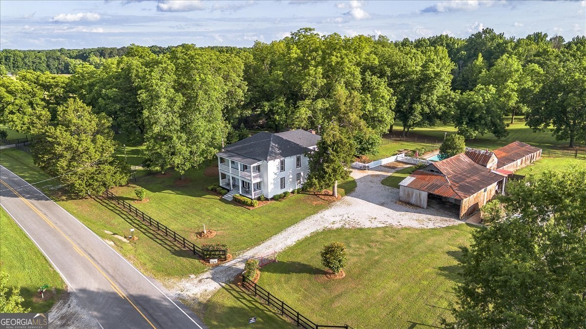 **Historic Adair Family Farmhouse: A Timeless Southern Gem** Step into a piece of history with the enchanting "Historic Adair Family Farmhouse," a stunning residence built in the 1800s that exudes charm and character. Sprawling across 3,800 square feet, this remarkable home features 5 spacious bedrooms and 3 beautifully appointed baths, all set on a picturesque 3.7-acre mini farm. The property is fully fenced, making it ideal for horses or other livestock, and offers a variety of outbuildings including an original smokehouse, a barn, and a workshop. Enjoy leisurely afternoons by the pool with a convenient half bath located in the barn area, or take a stroll along the creek that meanders at the back of the property. This property also boast 14 majestic pecan trees, 3 fig trees and a stunning 100 year old mulberry tree. Inside, the home boasts a large kitchen, dining area, and living area perfect for gatherings, complemented by a bright and airy sunroom that invites natural light. The main level features two inviting bedrooms and a full bath, while upstairs you'll discover an oversized owner's suite complete with a bath and a generous walk-in closet. Two additional bedrooms and another full bath provide ample space for family or guests. The cozy living room upstairs leads out to a double deck back porch, perfect for enjoying the tranquil views of your sprawling estate. Recent updates include in 2022 a brand-new HVAC system, extensive deck work, 2023 new roof and new paint inside, 2025 new paint outside and much more in 2020, ensuring this historic home combines timeless charm with modern conveniences. Don't miss your chance to own this extraordinary piece of Southern history-schedule a showing today and experience the beauty of the Historic Adair Family Farmhouse for yourself!