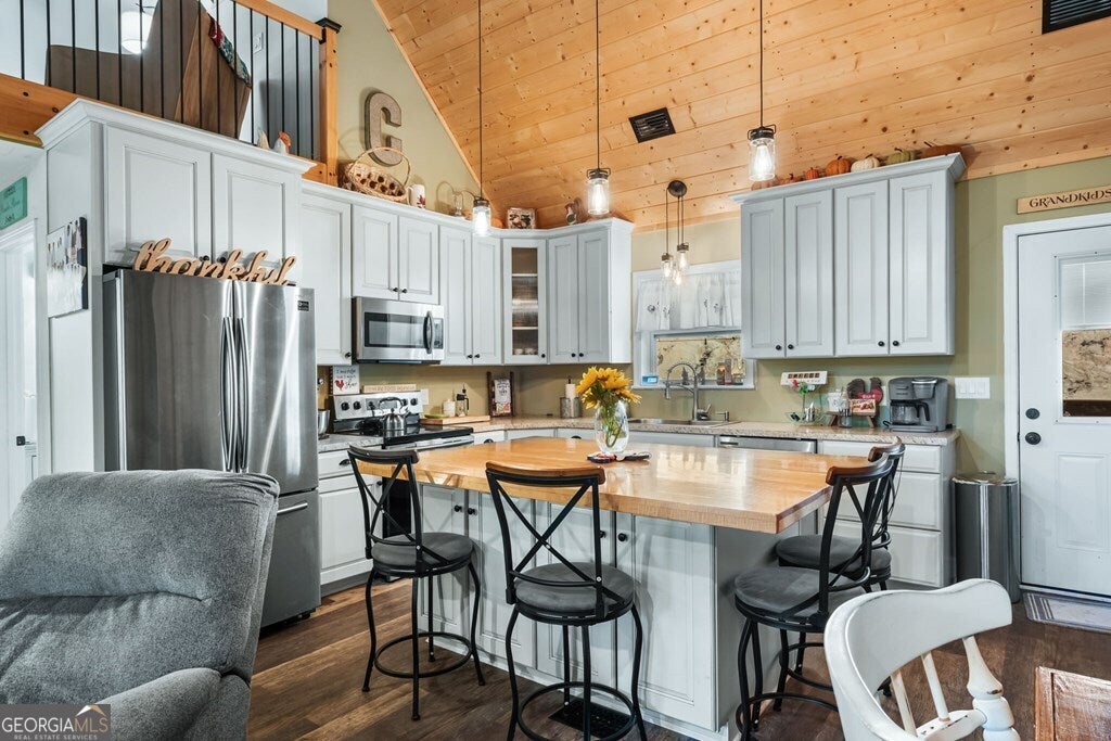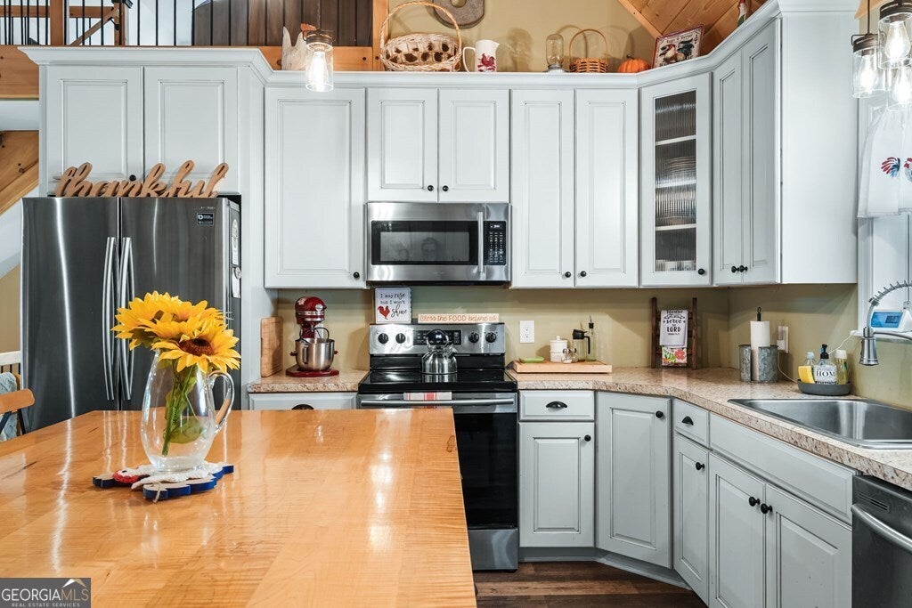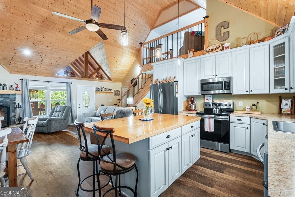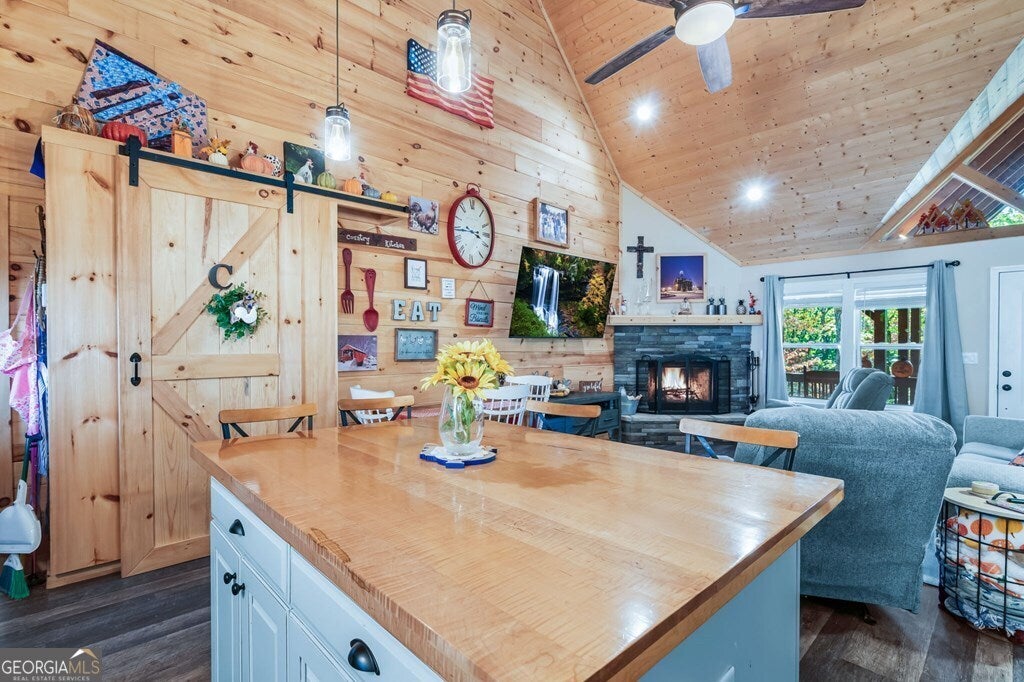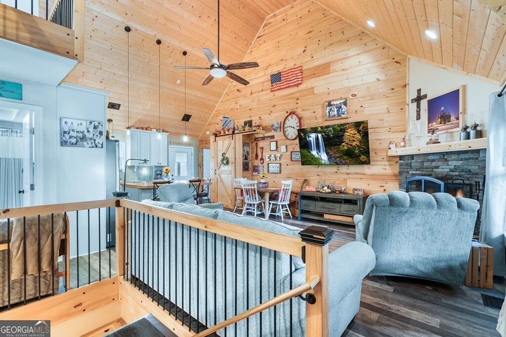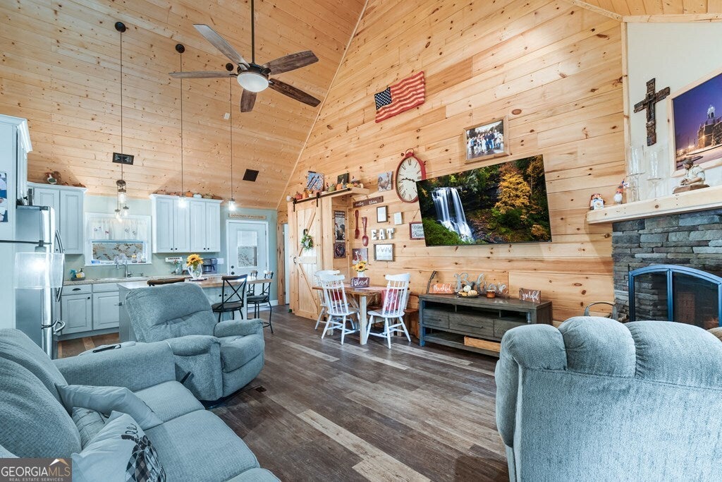Private Mountain Retreat in North Georgia! Tucked away among tall hardwoods, this inviting cabin offers the perfect blend of privacy, comfort, and mountain charm. Featuring 3 bedrooms and 3 bathrooms, the home's open floor plan welcomes you with a spacious great room showcasing cathedral ceilings, a stunning stacked-stone fireplace, and abundant natural light. The kitchen boasts stainless steel appliances and a convenient pantry, while the primary suite includes his and her closets and a luxurious bath with a custom glass and tile walk-in shower. Downstairs, a large game room-already stubbed for a wet bar-provides the perfect space for entertaining. Enjoy the outdoors from multiple covered decks, gather around the fire pit, or explore your creative side in the detached "she-shed," currently used for crafting. A rare find, the property also features an oversized 2-car garage with built-in storage. Whether as a full-time residence or mountain getaway, this home offers peace, privacy, and endless possibilities!