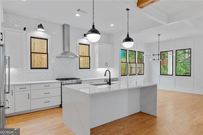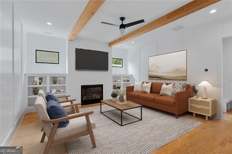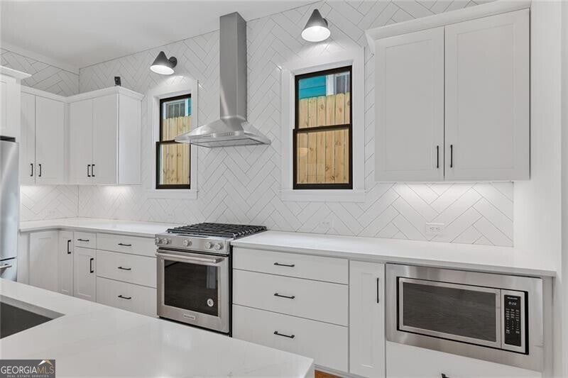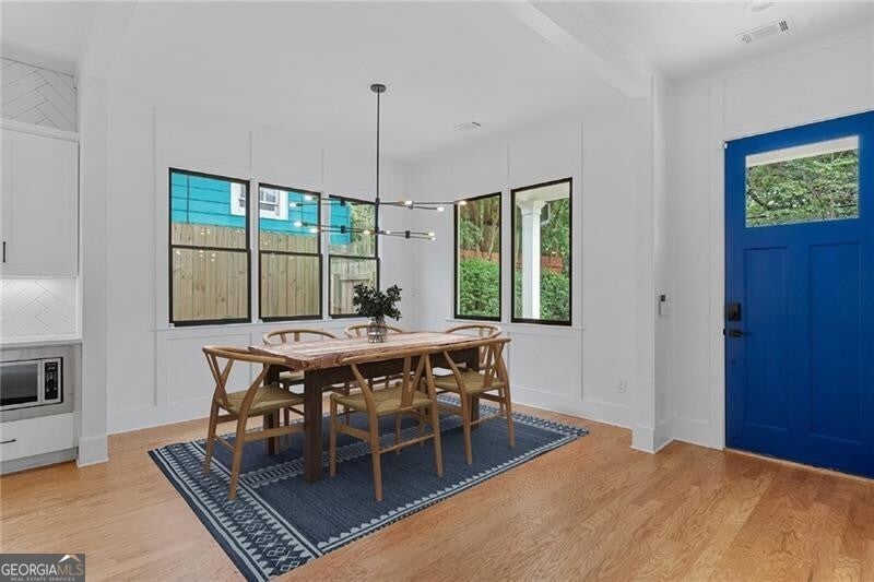 Welcome to your dream home in the charming Edgewood neighborhood! This stunning modern farmhouse, built in 2020, seamlessly combines contemporary design with timeless comfort. Boasting 4 bedrooms, 3 bathrooms, a 2-car garage, and rooftop deck, this home is perfect for both relaxation and entertaining. Step inside to discover an open floor plan that effortlessly connects the main living areas. The bright and airy kitchen is a culinary delight, featuring quartz countertops, high-end appliances, and ample cabinetry. It flows seamlessly into the expansive living room, where built-in bookshelves flank the fireplace. Rounding out the main floor are the dining area, full bathroom, and bedroom/office, perfect for your work-from-home lifestyle. Upstairs, the spacious primary suite is a true retreat, complete with a luxurious en-suite bathroom and generous closet space. Two additional bedrooms offer ample room for family or guests, while another full bathroom and a laundry room add to the home's practicality and convenience. One of the standout features of this property is the private rooftop, ideal for hosting gatherings or relaxing with your loved ones. The home also features a 2-car garage, providing plenty of space for vehicles and storage. With its modern amenities, thoughtful design, and prime location, this Edgewood gem is a rare find. Don't miss the opportunity to make it yours and experience the best of Atlanta living. Walkable to Bona Fide Deluxe, El Tesoro, Edgewood-Candler Park MARTA Station, The Flying Biscuit Cafe, and more!
