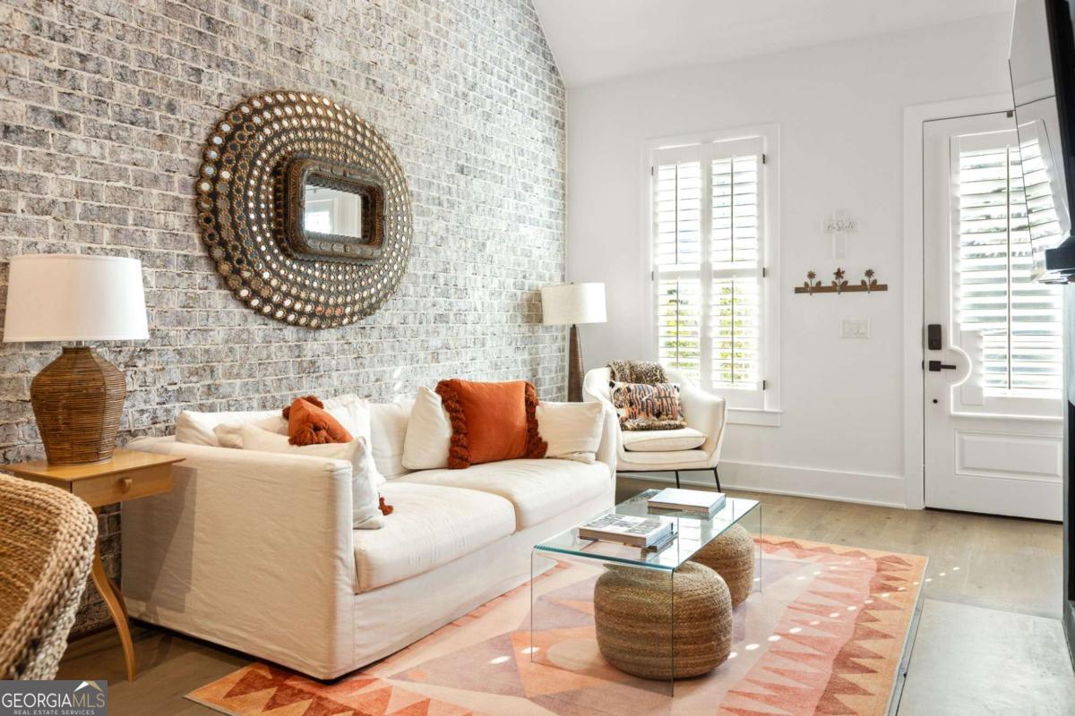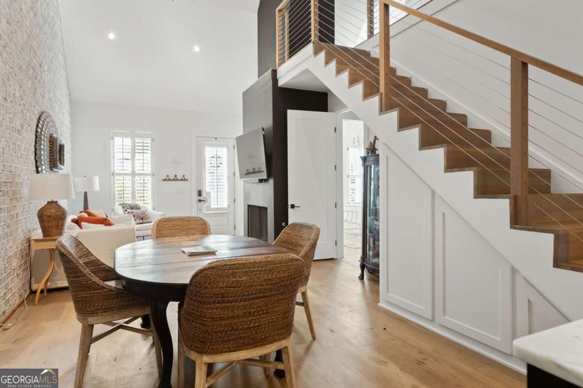 Experience European-inspired living in this charming Mado townhome featuring 2 bedrooms and 2 bathrooms. The open floor plan showcases vaulted ceilings, a cozy fireplace, and convenient pantry space, creating a perfect blend of comfort and style. The primary bedroom is conveniently located on the main level, while the upstairs loft offers flexibility for an additional living area or guest bedroom. Enjoy a private backyard with a covered porch and a serene courtyard, ideal for small gatherings or a furry friend to play. This home is a short distance from all wellness amenities that Serenbe has to offer including protected forest view nature trails + a plethora of resturants, shops + cafes.