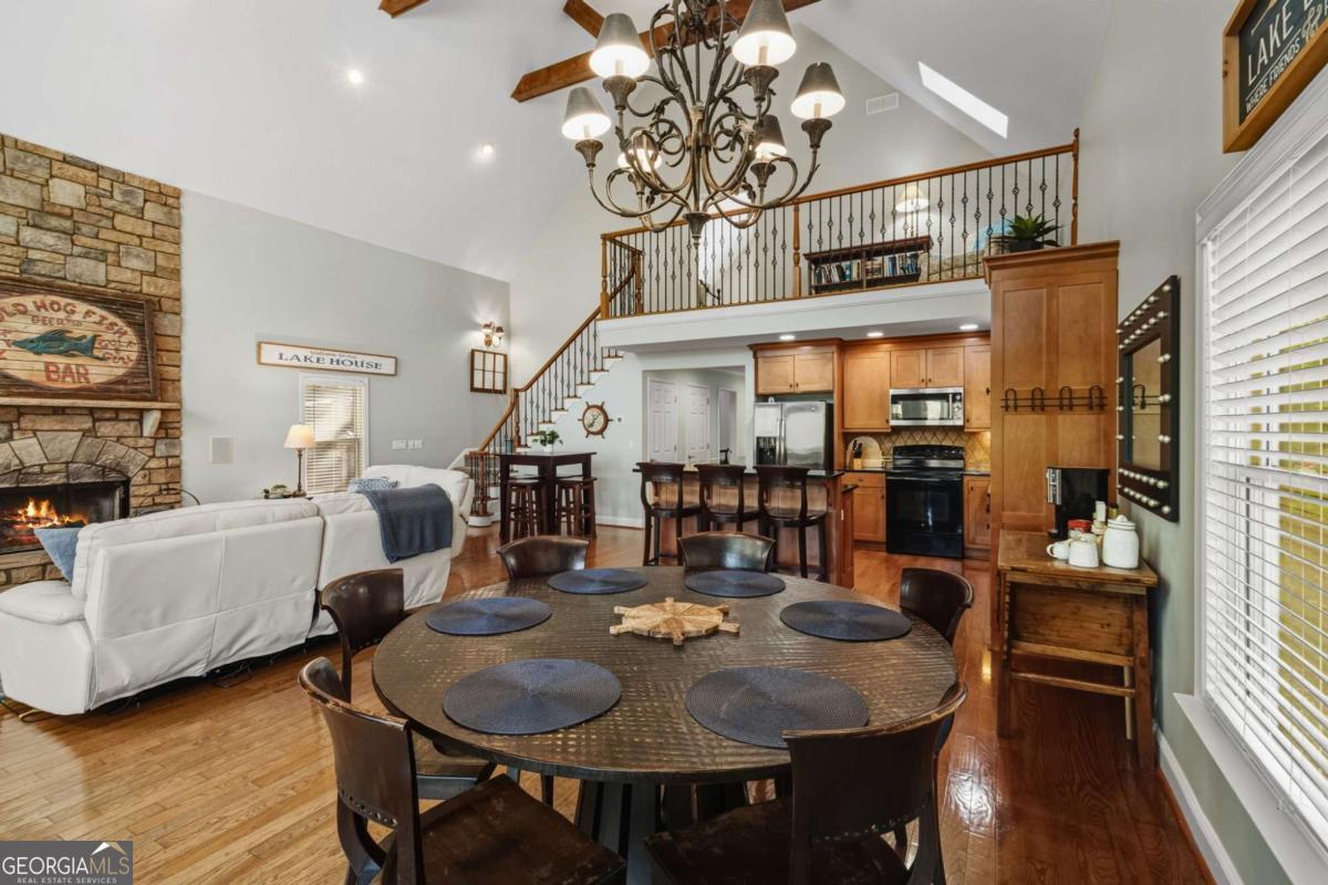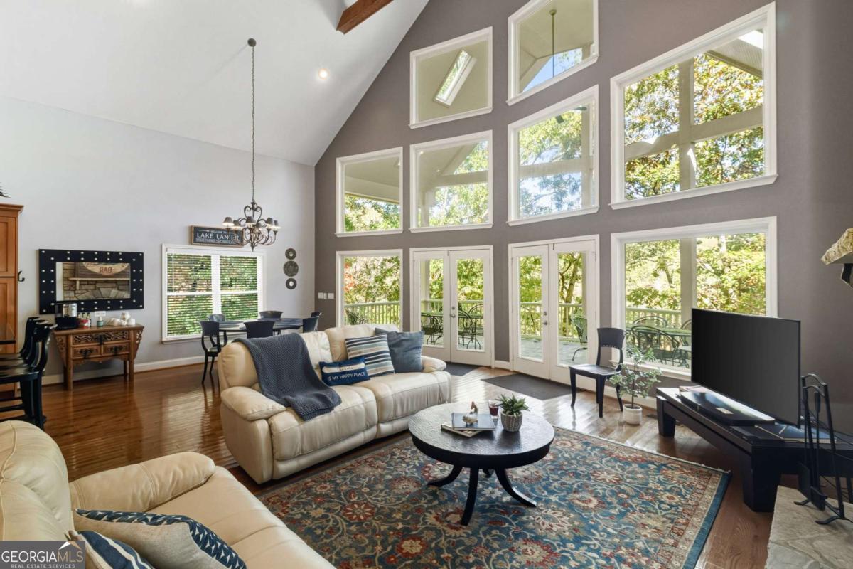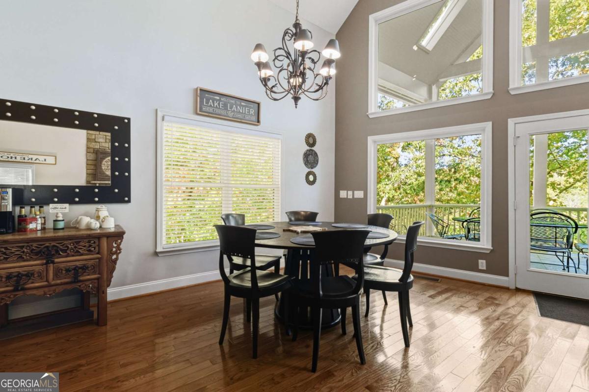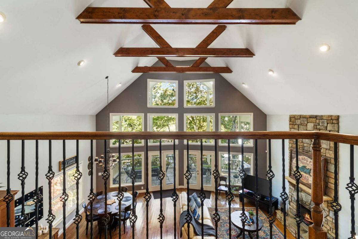 Welcome to the turn-key retreat on Lake Lanier that you've been waiting for with room for all of your family and friends! Perfectly positioned just a stone's throw from your deep-water 32x32 party dock and 120 feet of lake frontage, is this beautifully, fully furnished home designed for spacious relaxation and fun!. Nestled within a small, private, gated enclave just off GA HWY 400 in Dawsonville, it offers easy access to the best of North Georgia living-from shopping, dining, and wineries, to hiking, kayaking, boating, and fishing. Step inside to discover soaring vaulted ceilings, rich wood beams, and sunlit interiors framed by expansive windows that showcase several areas to enjoy your lake views. With multiple decks and three spacious living areas, there's no shortage of places to relax, entertain, and make lifelong memories. Designed for both privacy and connection, this thoughtfully appointed home features two bedrooms on the main level, a private, upstairs ensuite with its own cozy balcony, and two additional bedrooms downstairs, creating room for everyone to unwind. Enjoy endless entertainment with a well-equipped gym, pool table, ping pong table, and pinball machine-all included and ready for your next gathering. Whether you're seeking a luxury family retreat or a profitable short-term rental investment, this property offers the best of both worlds, with a proven rental history and professional management already in place for complete peace of mind. So why wait? Your best lake life awaits-right here on Lake Lanier. Going live Sunday, November 2 and available to be seen after 3 pm on Monday, November 3rd due to rentals.