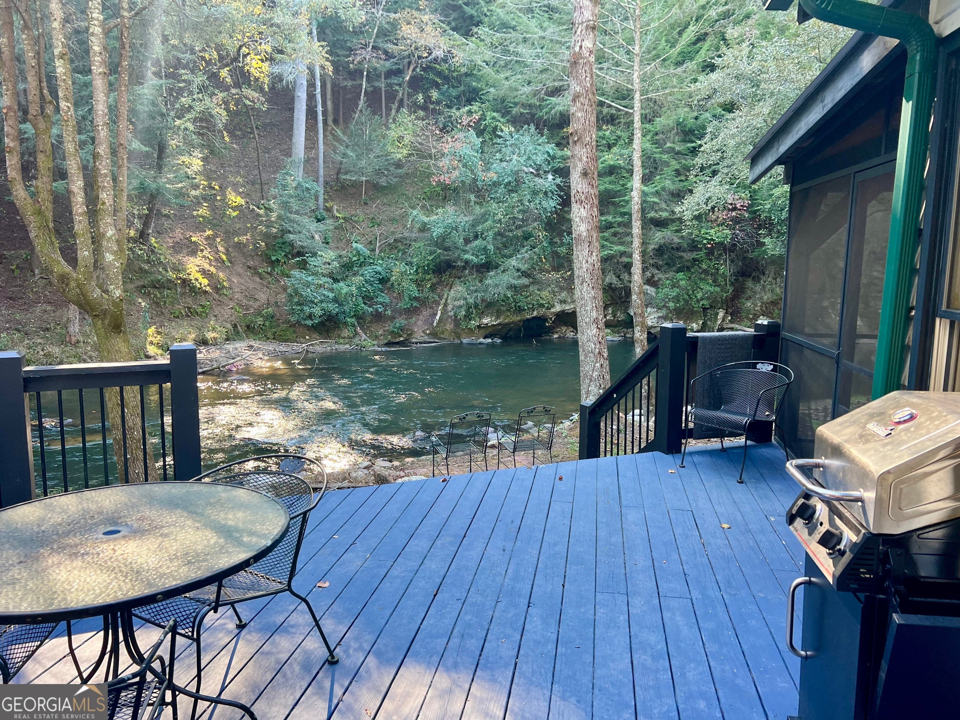 Priced $55,000 under recent appraisal ($780K) and fronts The Cartecay River. Features two furnished homes, an adorable approx 1,300 sf farmhouse Cabin and a detached, recently updated 360 sf farmhouse Cottage. Back deck is approximately 12' from the river, and a beach shoreline! Excellent Cartecay River views from both homes. Less than 10 minutes to downtown Ellijay. All paved, easy roads off of Hwy 52. Storage building included. Both properties wheelchair accessible. Owner/Agent. Estate sale.