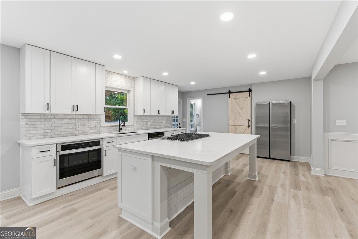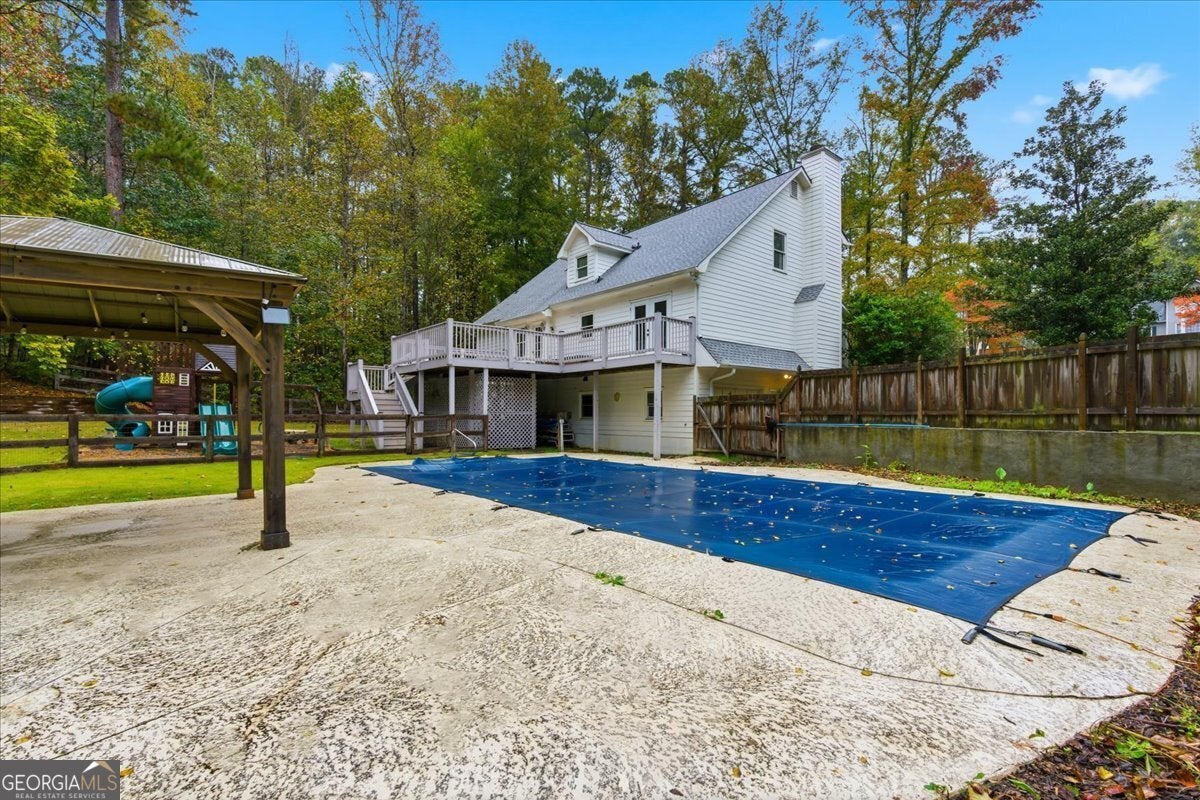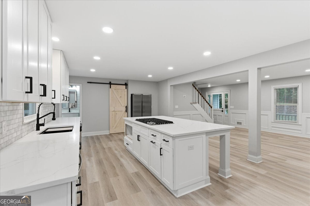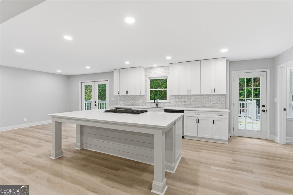 Stunningly Updated 4-Bedroom Home on 1 Acre in Twin Lakes, Woodstock Beautifully updated throughout, this 4-bedroom, 2.5-bath residence sits on a picturesque 1-acre lot in the highly sought-after Twin Lakes community. From the moment you step inside, you'll appreciate the attention to detail-gleaming luxury vinyl flooring, custom molding, and a charming wood-burning fireplace create a welcoming and stylish living space. The open-concept kitchen and dining area feature white cabinetry, granite countertops, and stainless steel appliances, providing the perfect setting for both entertaining and everyday living. The spacious primary suite on the main level includes a bay window and a beautifully renovated bathroom with a double vanity, soaking tub, and separate shower. Upstairs, two generous secondary bedrooms share an updated full bath. The finished basement offers flexible living space-ideal as a recreation room, home office, or potential fourth bedroom. Outside, enjoy the large back deck overlooking your private, tree-lined yard with a fenced-in pool-perfect for relaxing or hosting gatherings. This home offers the ideal blend of privacy and community. Thoughtful upgrades provide ample space for today's active lifestyle while enhancing the home's modern farmhouse appeal. Every room is comfortably sized, creating a balanced sense of openness and warmth. Experience the perfect combination of style, comfort, and location-this Twin Lakes gem is truly a must-see! Seller offering $10000 seller paid closing costs!!