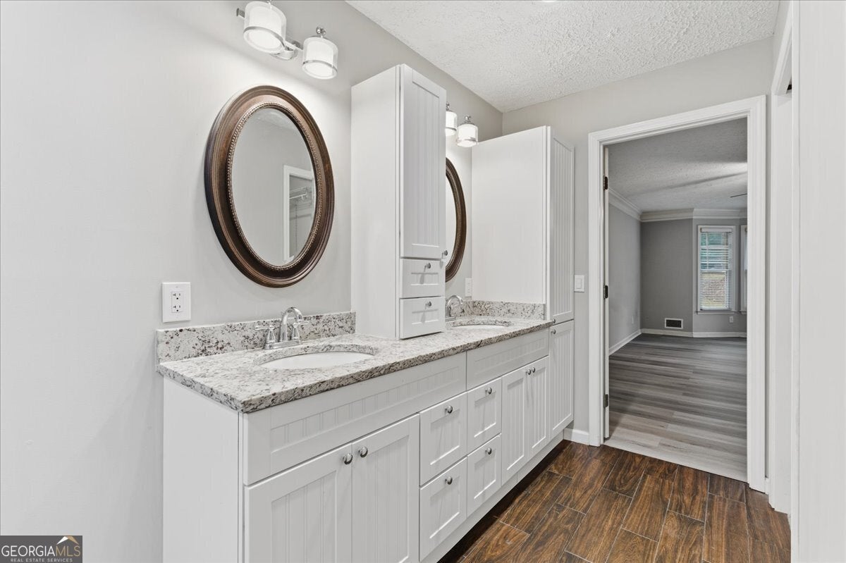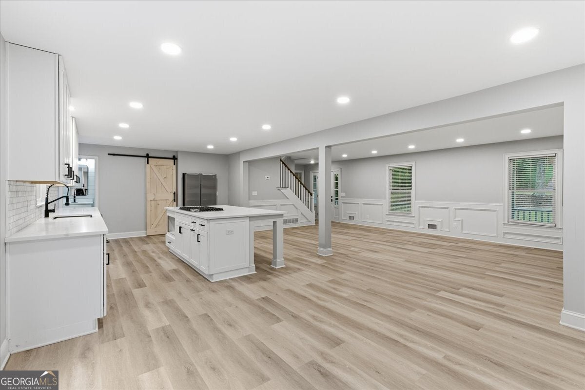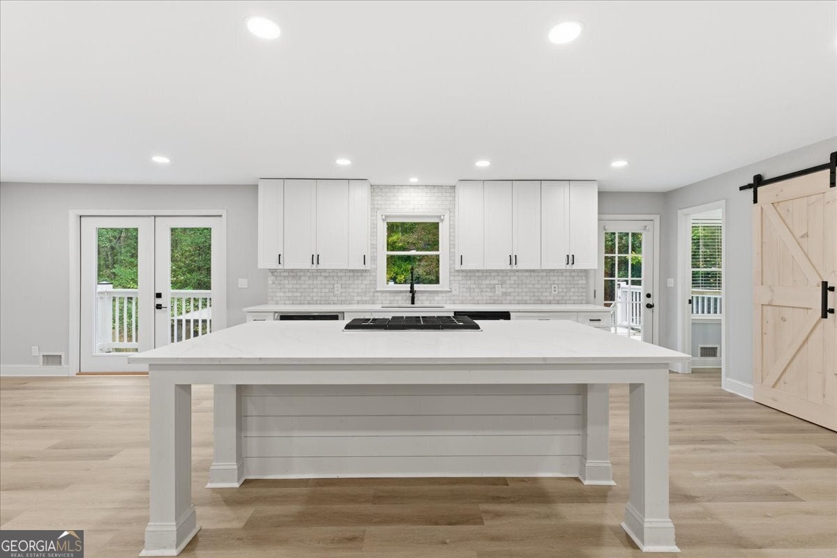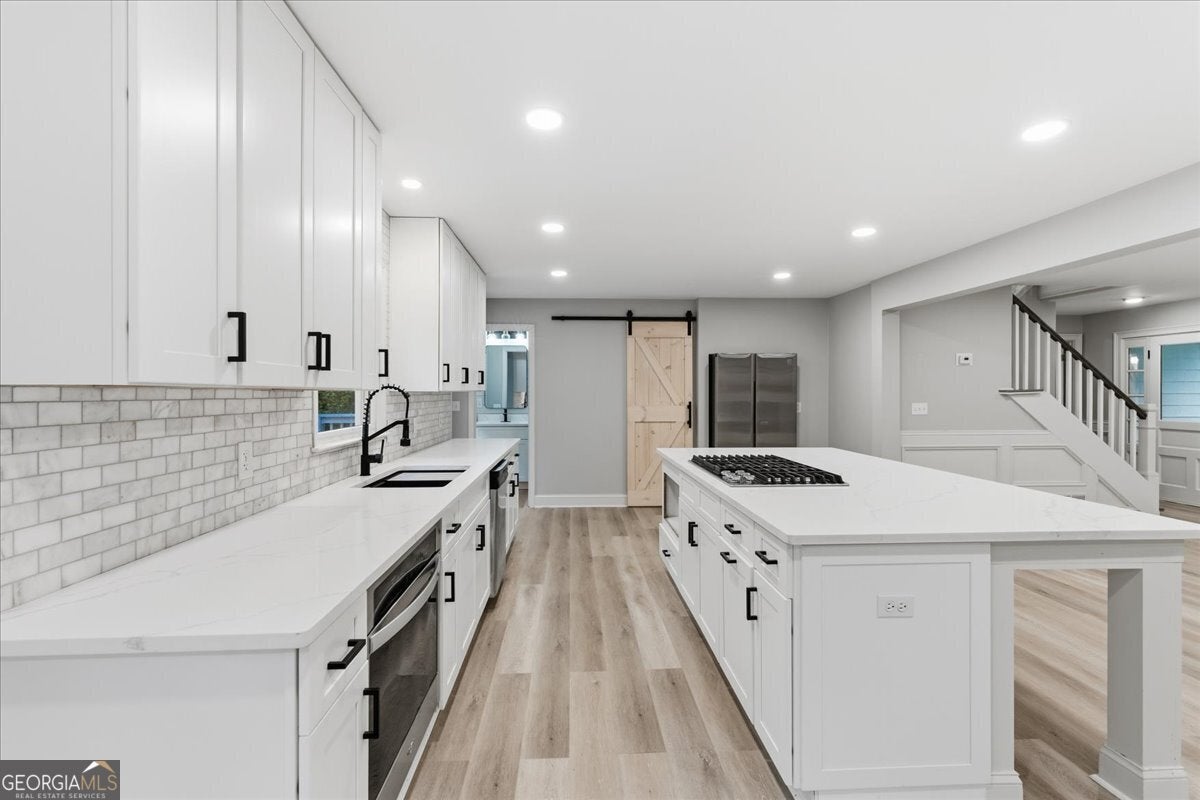 Stunningly Updated 4-Bedroom Home on 1 Acre in Twin Lakes, Woodstock Beautifully updated throughout, this 4-bedroom, 2.5-bath residence sits on a picturesque 1-acre lot in the highly sought-after Twin Lakes community. From the moment you step inside, you'll appreciate the attention to detail-gleaming luxury vinyl flooring, custom molding, and a charming wood-burning fireplace create a welcoming and stylish living space. The open-concept kitchen and dining area feature white cabinetry, granite countertops, and stainless steel appliances, providing the perfect setting for both entertaining and everyday living. The spacious primary suite on the main level includes a bay window and a beautifully renovated bathroom with a double vanity, soaking tub, and separate shower. Upstairs, two generous secondary bedrooms share an updated full bath. The finished basement offers flexible living space-ideal as a recreation room, home office, or potential fourth bedroom. Outside, enjoy the large back deck overlooking your private, tree-lined yard with a fenced-in pool-perfect for relaxing or hosting gatherings. This home offers the ideal blend of privacy and community. Thoughtful upgrades provide ample space for today's active lifestyle while enhancing the home's modern farmhouse appeal. Every room is comfortably sized, creating a balanced sense of openness and warmth. Experience the perfect combination of style, comfort, and location-this Twin Lakes gem is truly a must-see! Seller offering $10000 seller paid closing costs!!