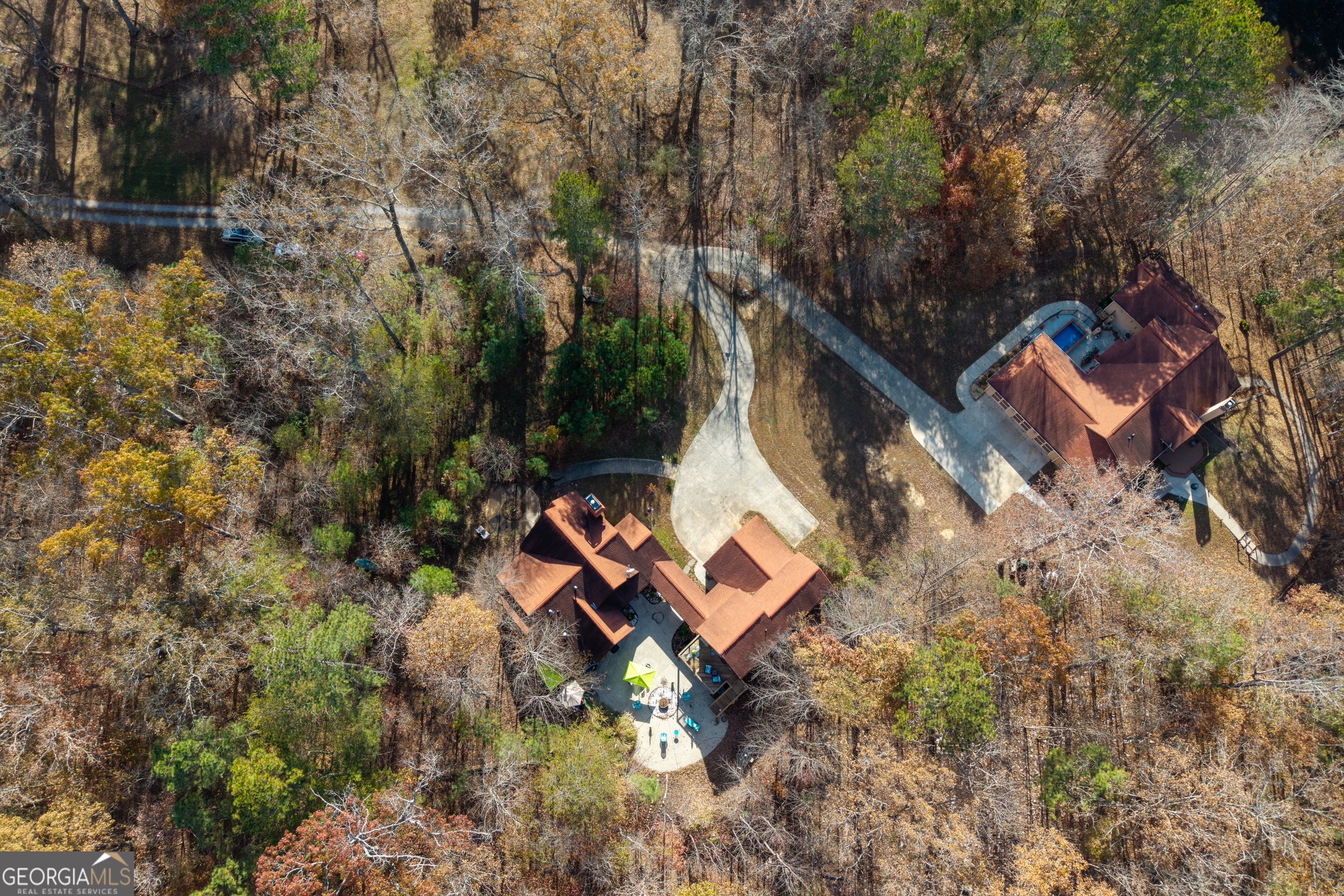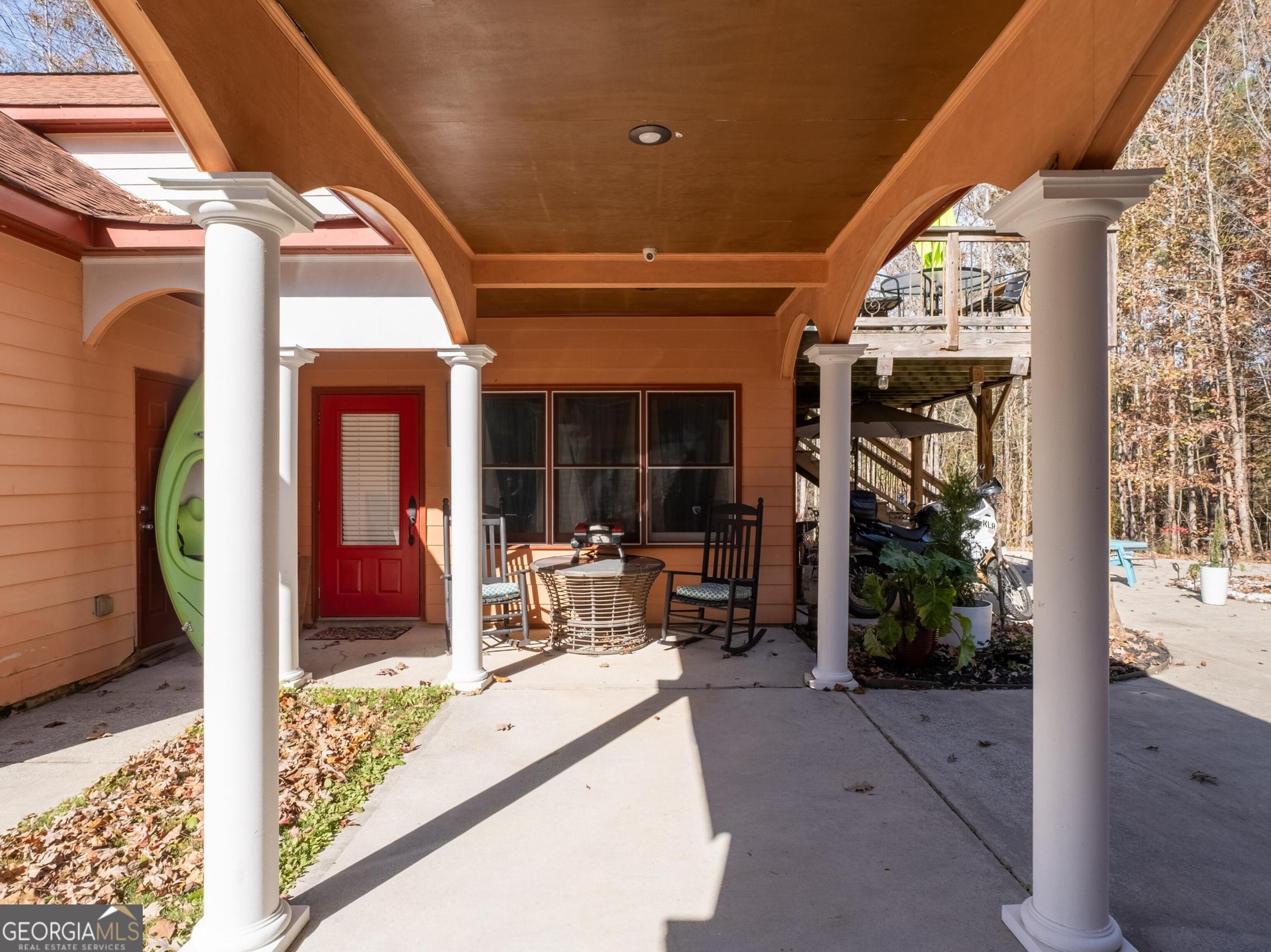 Private hideaway, FAMILY COMPOUND, AND INCOME-PRODUCING property with 2 detached APARTMENTS (with STR rental history) on-sight! This beautiful and expansive Spanish style villa on 2.61 acres is located in a quiet area with NO HOA (!) that is centrally located and just 15 mins to Canton, 15 mins to Cartersville and only 10 minutes to Waleska (and Reinhardt College)! This property is a nature-lovers retreat and has a seasonal view of a private lake, and it is only 5 mins to the boat launch at Lake Allatoona with a parking pad for your boat or your RV! Step into the main 2-bedroom dwelling which is all one-level, where you will be greeted by grand cathedral ceilings and WALL TO WALL windows with a tree-lined view throughout the home, that will unfold beautifully with the seasons. Start your day with coffee over the custom painted tile in the kitchen, or take it out to the quiet courtyard and entertain your guests at the kitchen bar or dine in the open-concept dining room. The main bathrooms boasts a jetted tub with picture windows over a private patio with a gorgeous view of nature where you can even see the moon and stars at night, and stay cozy next to your double-sided fireplace after the bath, that turns on with the flip of a switch, in your bedroom. Through the breezeway you will find the garage and 2 detached apartments, waiting for your family, your guests or immediate passive income. Each one-bedroom apartment can house guests with room for a king bed in each. One has stepless access and the other is located upstairs with its own entrance and a fantastic view of a lovely lake from the private deck. Occupied, no drive-bys. Please call or text to schedule your appointment soon!