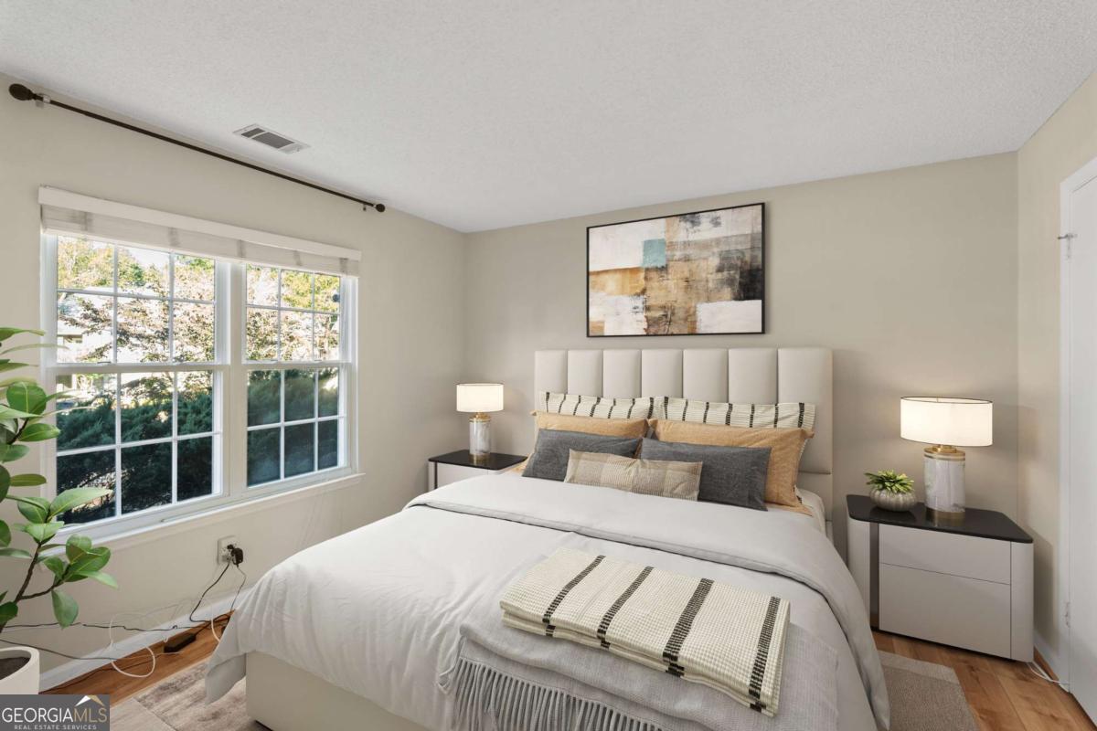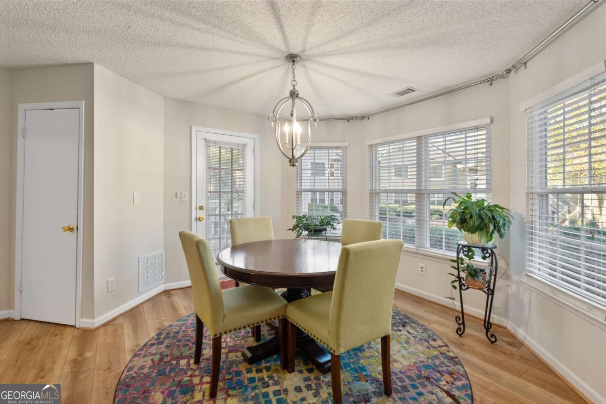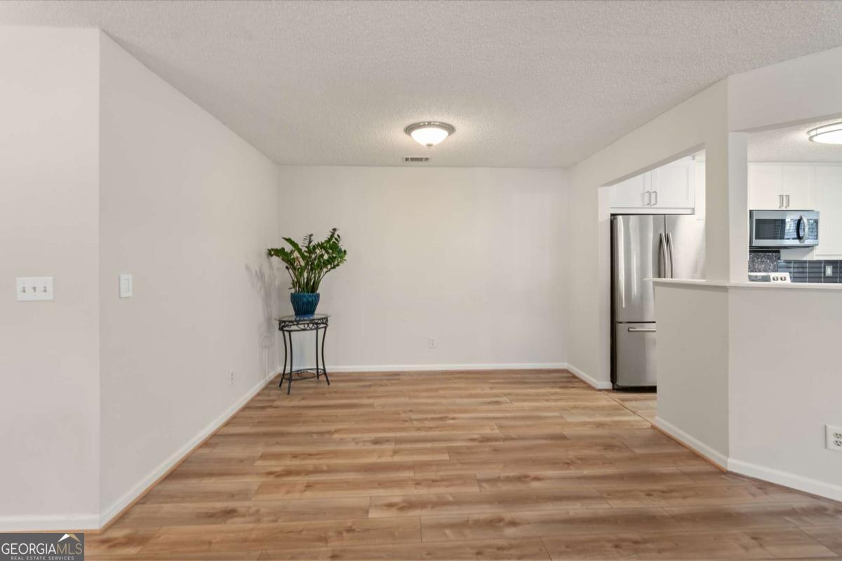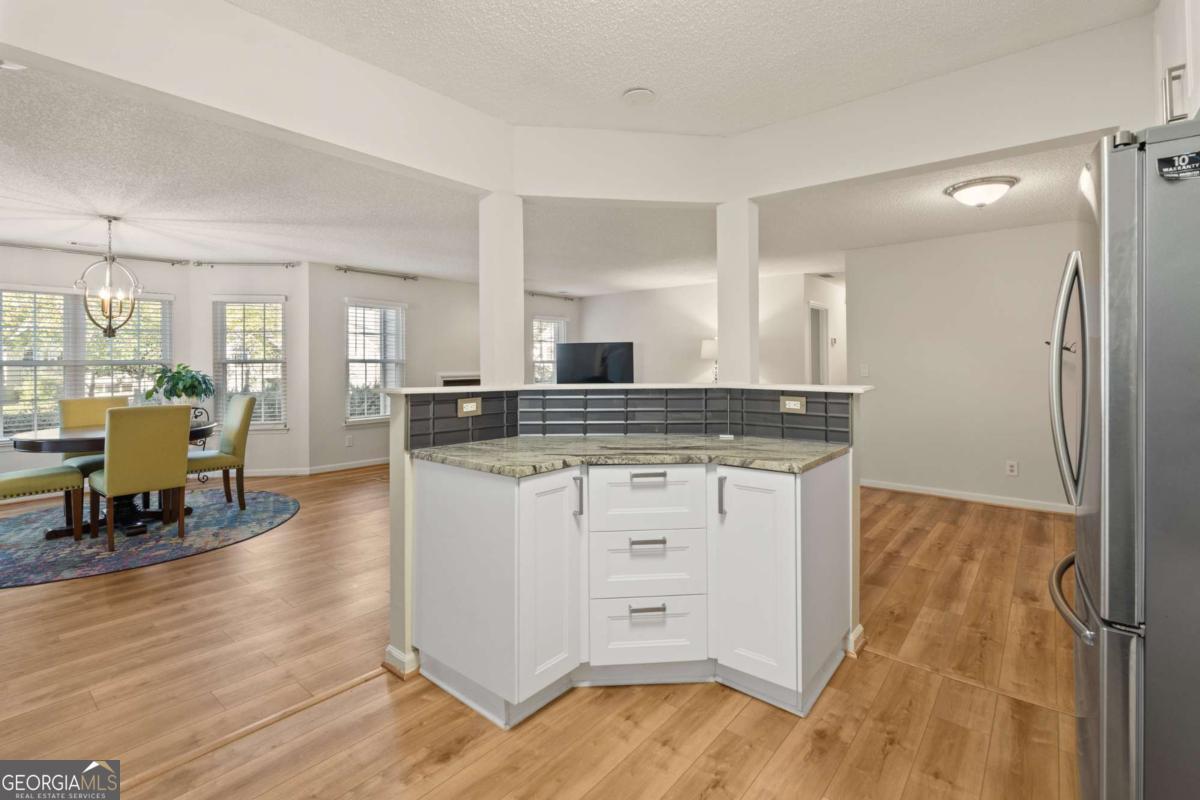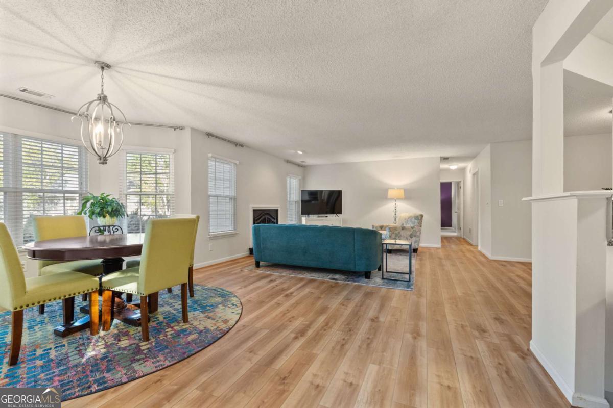 Welcome to Hidden Lake at Roswell, where modern comfort meets serene living. Located just minutes from DT Roswell's Canton St corridor with easy access to Ga-400, this community offers the perfect blend of quiet, low-traffic living and access to vibrant shopping, dining and entertainment. This beautifully updated 2-bedroom, 2-bath condo offers style, space, and convenience in one of Roswell's most sought-after communities. Step inside to find an inviting open floor plan with prefinished hardwood flooring mostly throughout, a cozy fireplace that anchors the open family room, and large windows that fill the home with natural light. The updated kitchen features crisp NEW white cabinetry, NEW stone countertops, tile backsplash, stainless-steel appliances, and a convenient breakfast bar - perfect for everyday living or entertaining. Linger in both the formal dining and casual eating space or use one as the flex space curated to your lifestyle. The primary suite provides a spacious retreat with a custom walk-in closet and updated private bath. Easily convert the owner's bath vanity back to dual sinks if needed. The split-bedroom layout ensures privacy for guests or a home office (if needed). Enjoy peaceful mornings or relaxing evenings on the patio with tranquil pond views- just close enough to enjoy ambient views of the neighborhood string lite lakeside seating. Move in ready with refrigerator, washer & dryer included! Residents of Hidden Lake also enjoy access to a pool, tennis courts, and walking areas surrounded by mature trees and well-kept grounds. Ample parking abounds for residents and their guest so you can simply enjoy entertaining. BEST OF ALL, this prime location is just minutes from downtown Roswell's shops, restaurants, and parks! Go a little farther north and you'll end up in DT Alpharetta. This is low maintenance living without compromise on location or lifestyle. Comee see the condo that checks all the boxes. You'll love calling 605 Mill Pond Rd HOME!