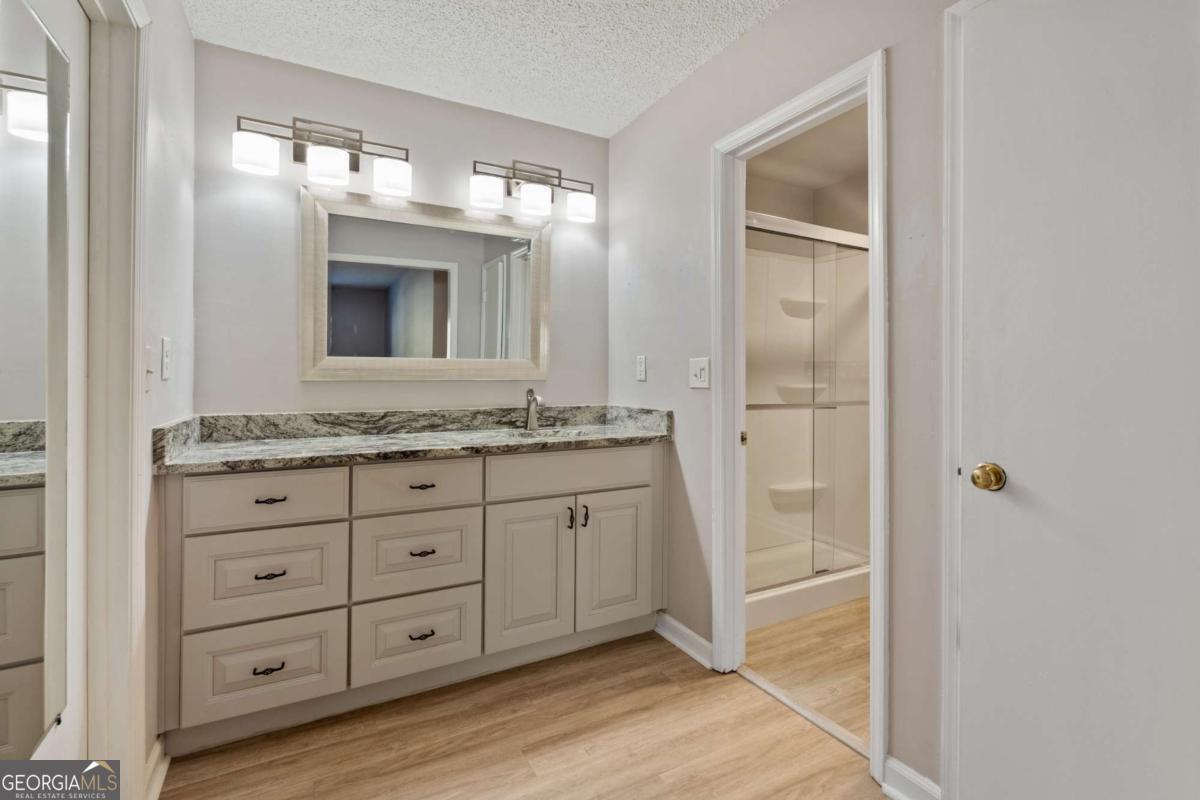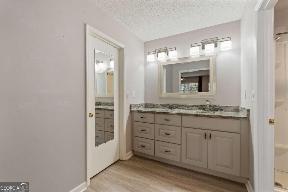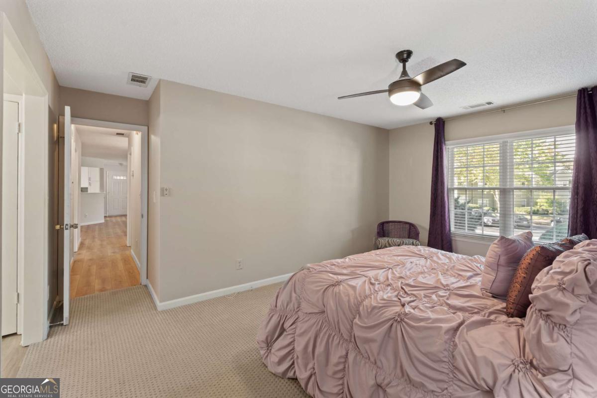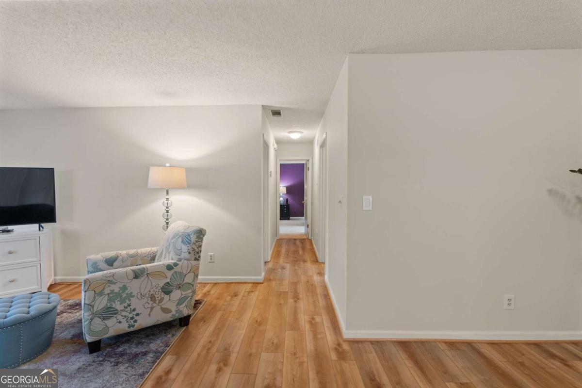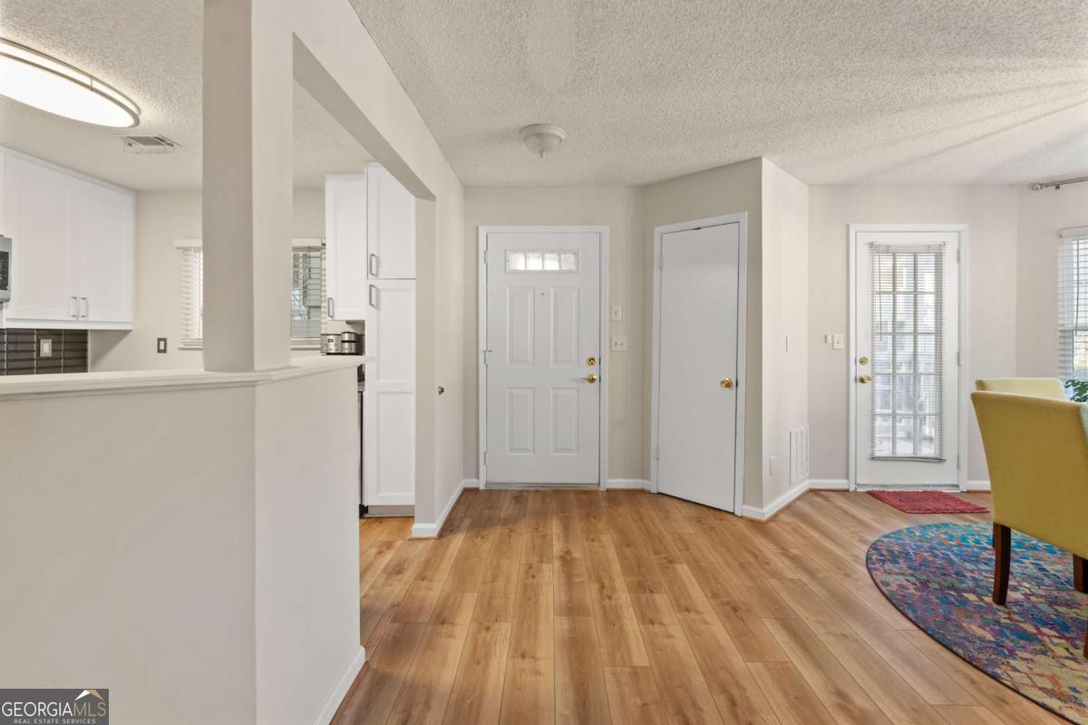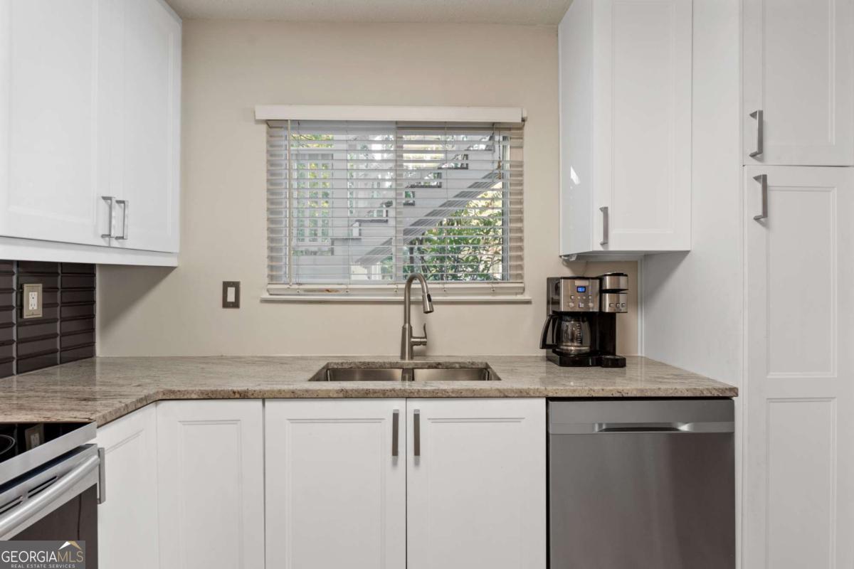 Welcome to Hidden Lake at Roswell, where modern comfort meets serene living. Located just minutes from DT Roswell's Canton St corridor with easy access to Ga-400, this community offers the perfect blend of quiet, low-traffic living and access to vibrant shopping, dining and entertainment. This beautifully updated 2-bedroom, 2-bath condo offers style, space, and convenience in one of Roswell's most sought-after communities. Step inside to find an inviting open floor plan with prefinished hardwood flooring mostly throughout, a cozy fireplace that anchors the open family room, and large windows that fill the home with natural light. The updated kitchen features crisp NEW white cabinetry, NEW stone countertops, tile backsplash, stainless-steel appliances, and a convenient breakfast bar - perfect for everyday living or entertaining. Linger in both the formal dining and casual eating space or use one as the flex space curated to your lifestyle. The primary suite provides a spacious retreat with a custom walk-in closet and updated private bath. Easily convert the owner's bath vanity back to dual sinks if needed. The split-bedroom layout ensures privacy for guests or a home office (if needed). Enjoy peaceful mornings or relaxing evenings on the patio with tranquil pond views- just close enough to enjoy ambient views of the neighborhood string lite lakeside seating. Move in ready with refrigerator, washer & dryer included! Residents of Hidden Lake also enjoy access to a pool, tennis courts, and walking areas surrounded by mature trees and well-kept grounds. Ample parking abounds for residents and their guest so you can simply enjoy entertaining. BEST OF ALL, this prime location is just minutes from downtown Roswell's shops, restaurants, and parks! Go a little farther north and you'll end up in DT Alpharetta. This is low maintenance living without compromise on location or lifestyle. Comee see the condo that checks all the boxes. You'll love calling 605 Mill Pond Rd HOME!