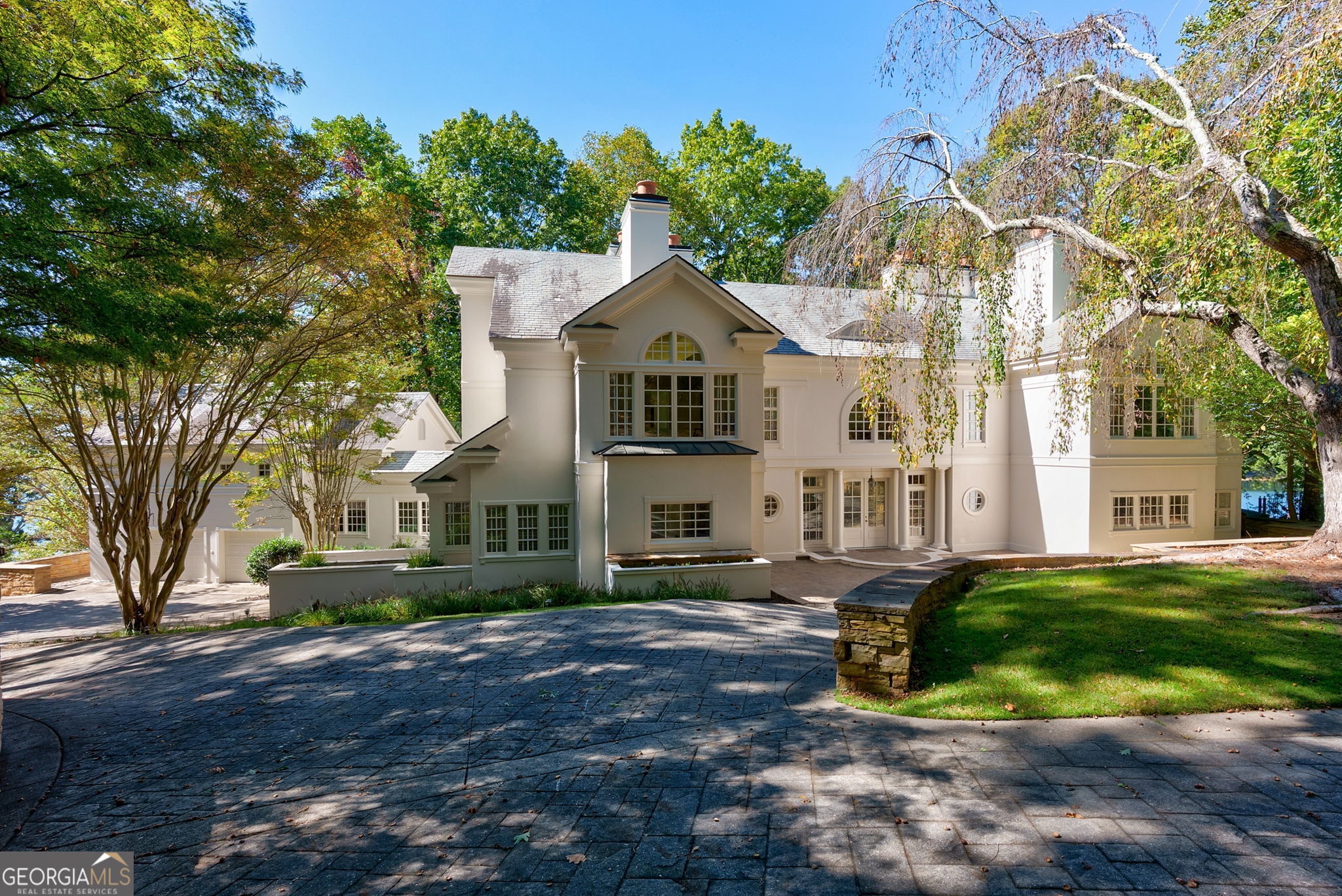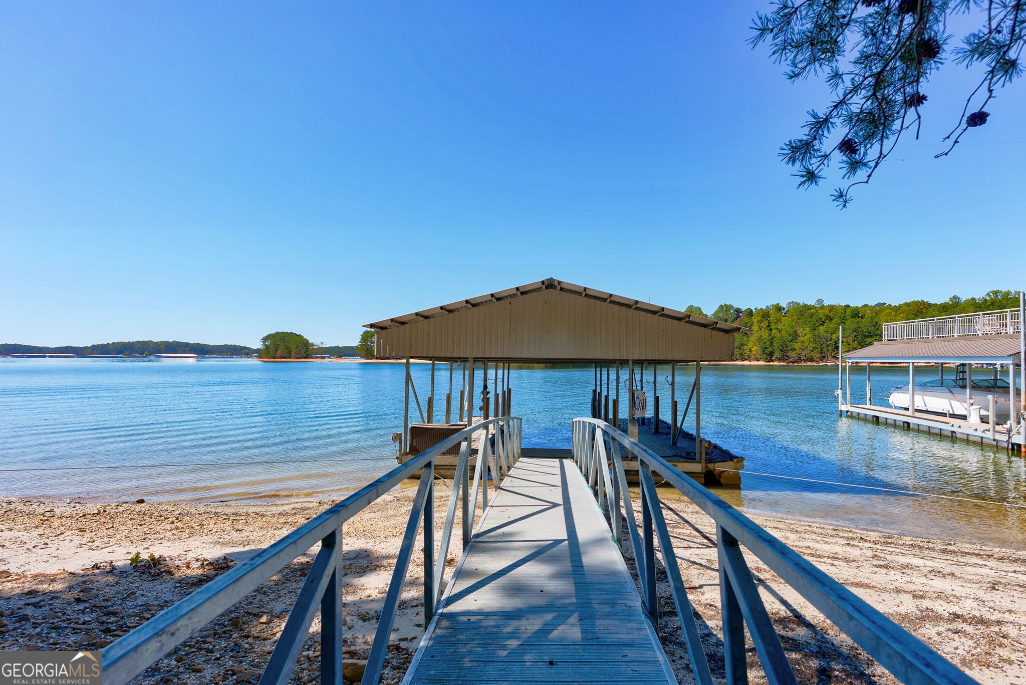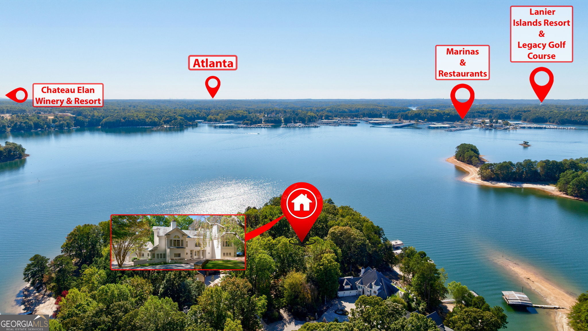 Experience refined lake living in this custom-built stucco home with a slate roof, perfectly sited on a secluded point overlooking Lake Lanier. Thoughtfully refreshed and freshly painted, the residence offers 4 bedrooms, 7 bathrooms and roughly 6,000+ square feet of gracious living and entertaining space. Interior highlights include marble tile floors, a masonry fireplace with gas starter, soaring 10plusfoot windows flanking broad staircases, an expansive formal dining room, plus a game room, library and dedicated music area-spaces designed for family gatherings and memorable holiday celebrations. Outside, an expansive patio, plunge pool and an intricately crafted trellis set the stage for alfresco living. A private path winds down to your boat dock on a peaceful cove, directly across from Holiday Marina, and continues to the point-perfect for sunrise coffees, sunset cocktails or front-row views of the Yacht Club's Fourth of July fireworks. Located minutes from Lake Lanier Islands' hotels, dining and championship golf, and within a swim/tennis neighborhood that places pool and courts just a short walk or golf-cart ride away. Easy access from Atlanta completes the picture of effortless lake living.