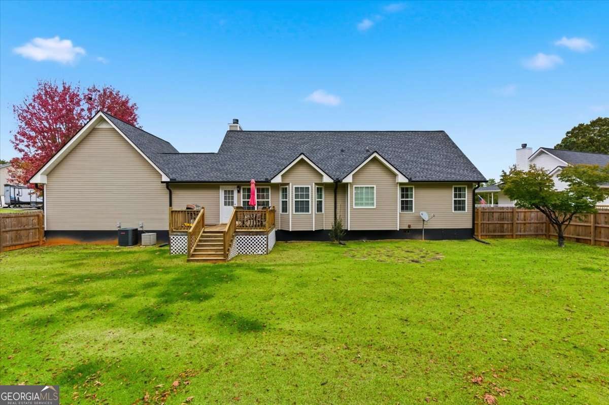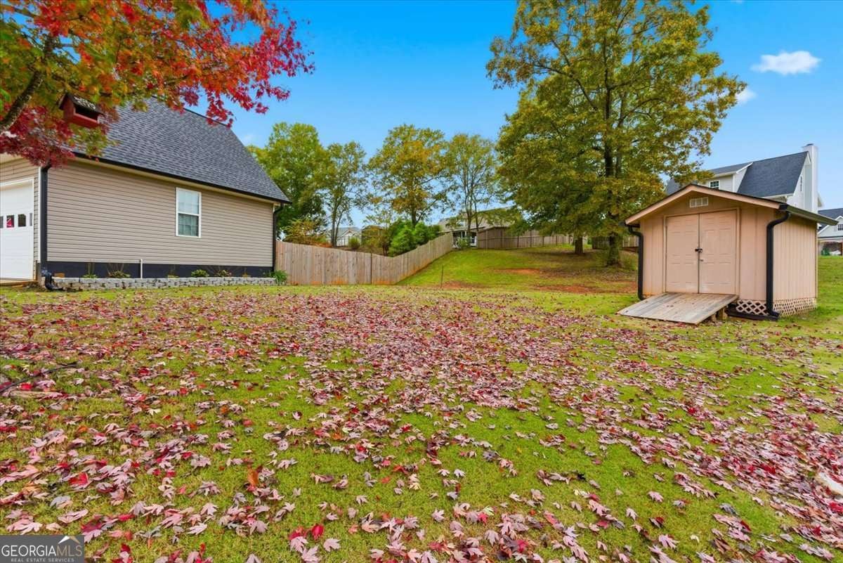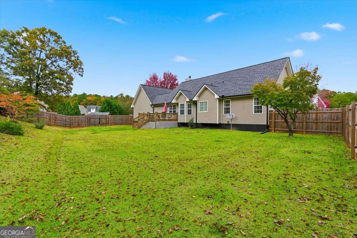 Welcome to this beautifully updated home in Calloway Estates-a sought-after Rockmart community with no HOA! This charming property offers space, comfort, and versatility on nearly an acre. The main level features 3 bedrooms and 2 bathrooms with gorgeous hardwood floors throughout, fresh interior paint, and brand-new appliances that make this home truly move-in ready. Upstairs, you'll find a private 1-bedroom, 1-bathroom suite over the garage-perfect for guests, a home office, or multigenerational living. The attic is spray foam insulated and provides tons of storage, while the exterior boasts new gutters and a fenced backyard ideal for pets or outdoor entertaining. Sitting on double lots, the property also includes an additional lot with a gravel pad-perfect for parking your boat, RV, or other toys. This Rockmart gem in Calloway Estates truly has it all-modern updates, flexible living space, and freedom from HOA restrictions!