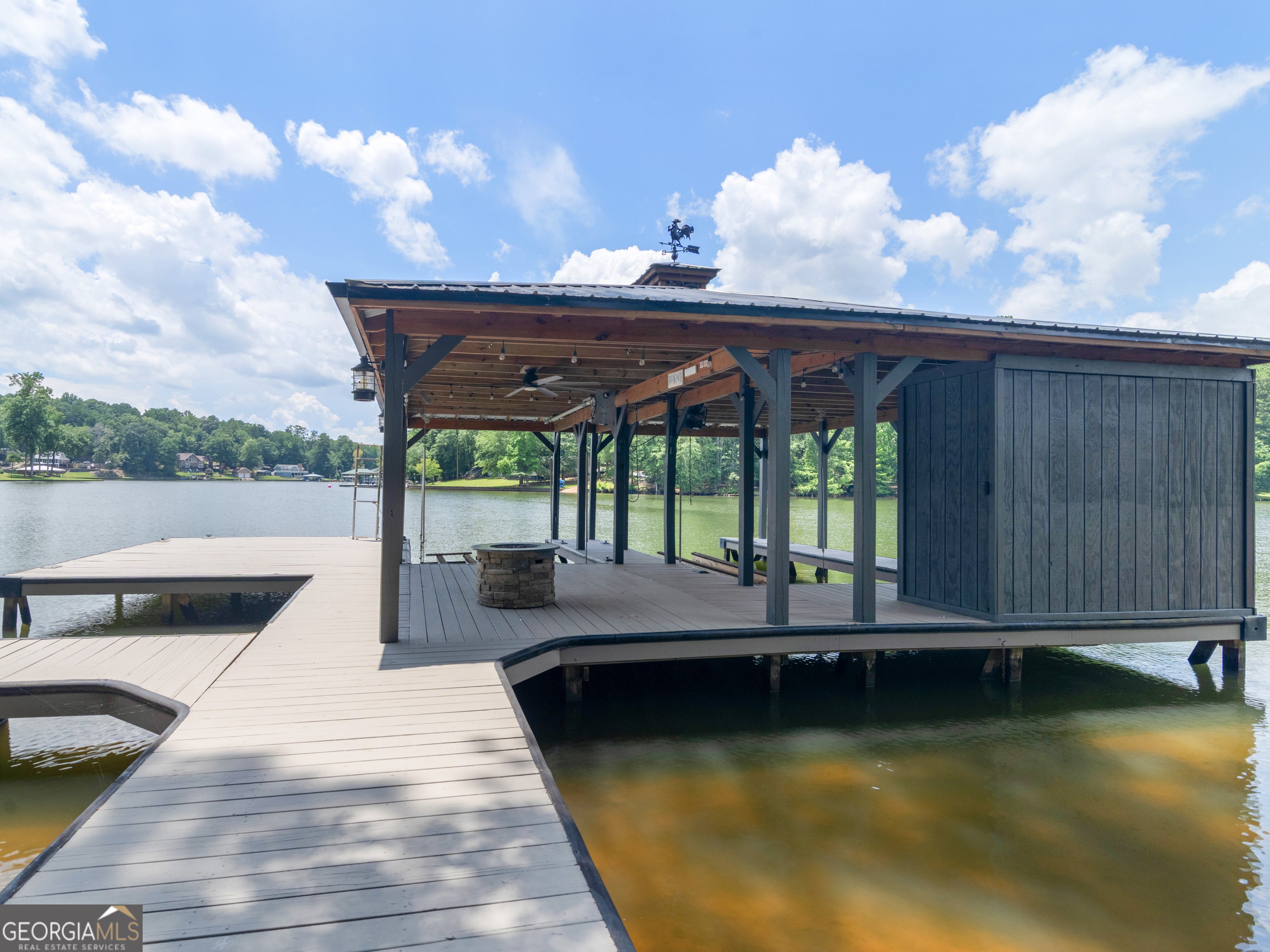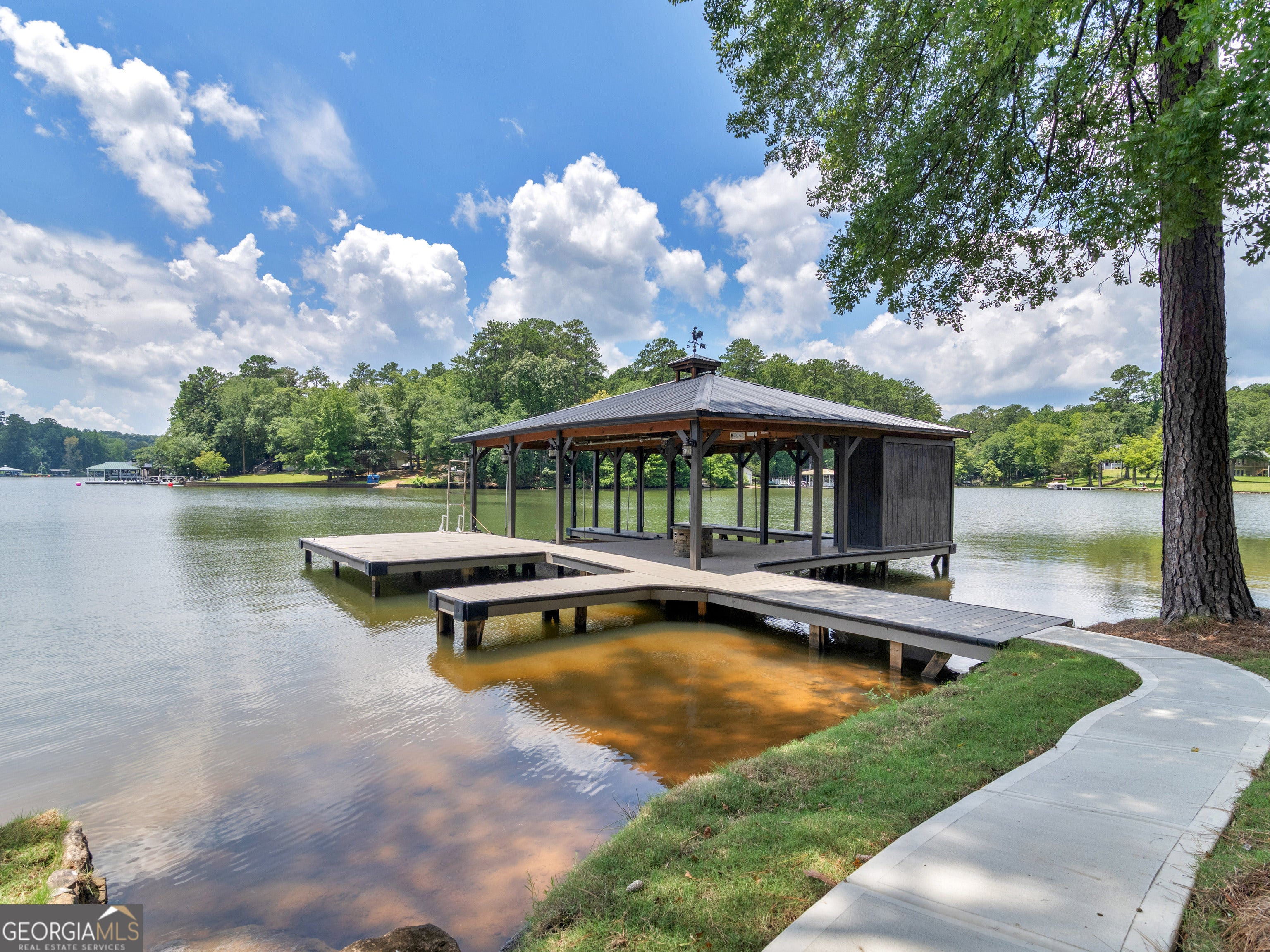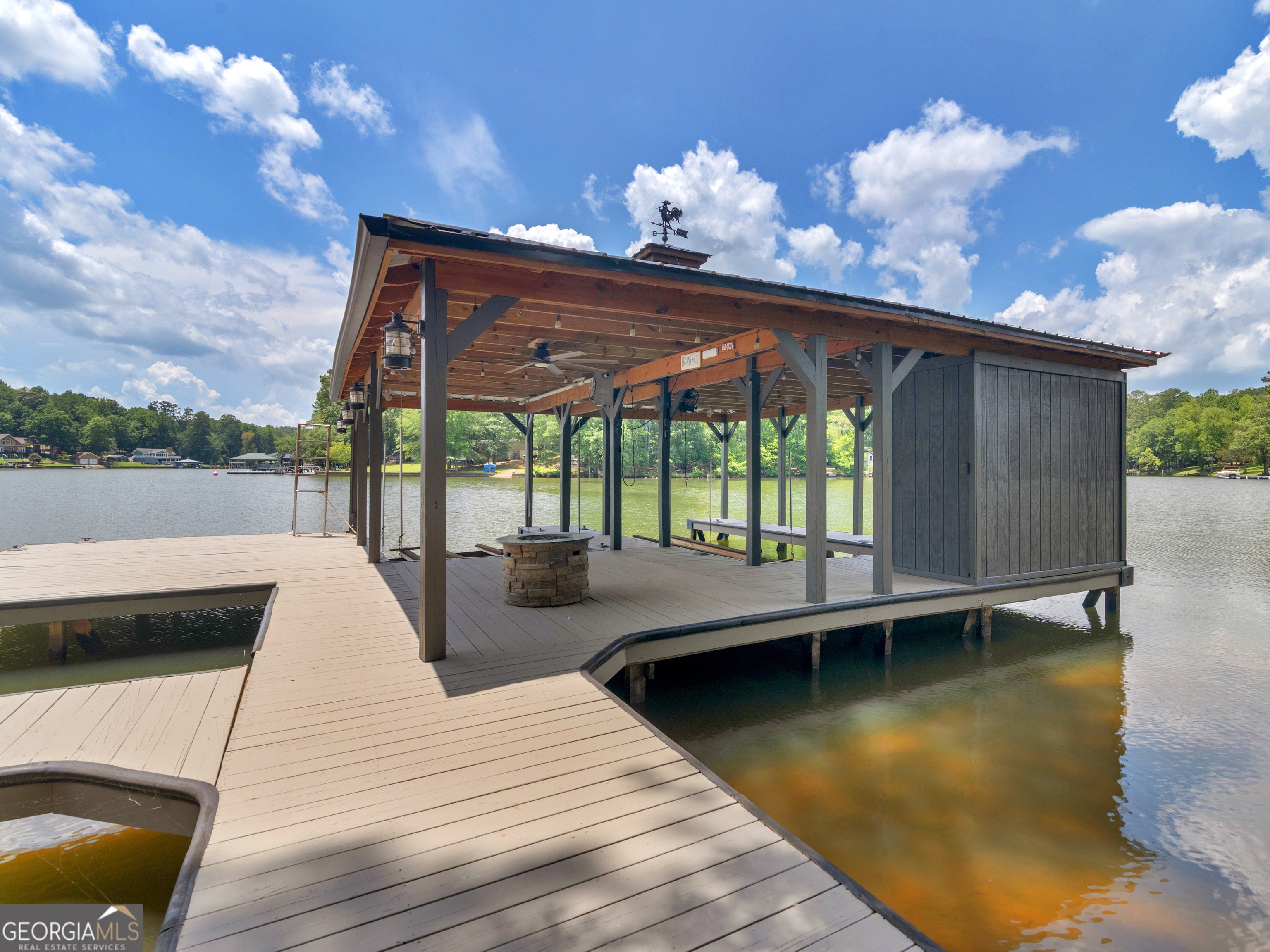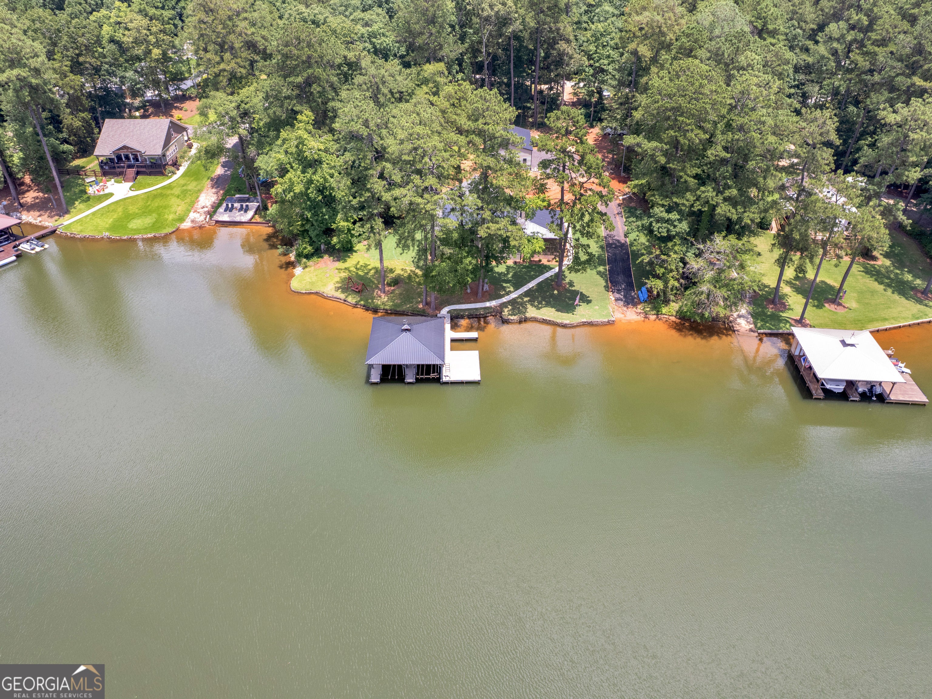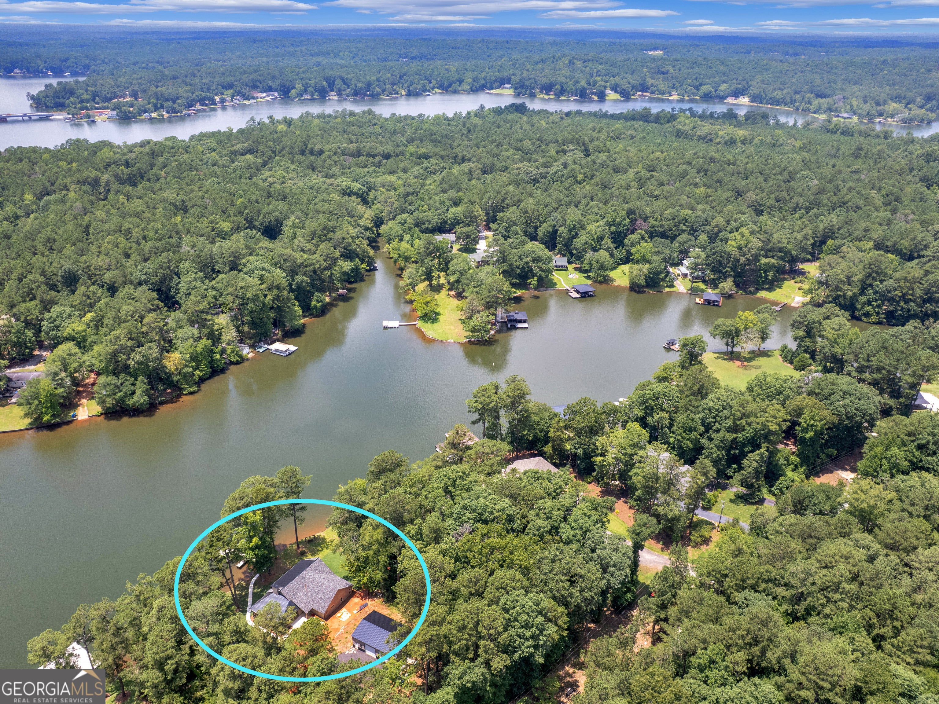 PRICED BELOW RECENT APPRAISAL IN HAND! EXORBITANT AMOUNT OF EQUITY FOR A BUYER! Brand new construction situated on deep water up in a cove on desired Jackson Lake. Situated on a GA Power Lease lot w/ amazing views from all rooms of the home including the secondary guest rooms. Inside features approx. 2,000+/- sq. ft, open concept floor plan w/large kitchen overlooking spacious living room & dining room, 3 bedrooms on the main & 1 bedroom upstairs. Windows all along the front of the home allow for ample lighting thru out the main living area & pristine views of the water. The kitchen features high end finishes such as professional SS 6 burner cooktop, vented exhaust hood, double wall oven, not 1 but 2 french door refrigerators w/freezers, walk in pantry w/cabinets & shelving, 10 ft island w/work station & quartz c'tops & backsplash. LVT flooring thru out entire home allows for easier maintenance. Fireside living room featuring wood beams on the ceiling. Spacious laundry room w/cabinets, folding/hanging area & cleaning supply closet. Relax in the primary suite offering an electric fireplace & more water views. Step into the en-suite bath boasting a double vanity w/quartz c'tops, tiled walk in shower & free standing soaking tub. As if this isn't enough, outside showcases an expansive covered deck perfect for relaxing and/or entertaining while o'looking the lake. Board & Batten exterior finish, double covered dock, approx. 300ft of water frontage, two bay metal shop on a slab & much more! This home is considered a Green Home w/features such as a 16 Plus Sear Heating & Air Unit, Spray foam insulation in walls & ceilings, energy efficient appliances, tankless hot water heater & lifetime shingles and metal roof. Come take a look at this custom build today! ****Please note original structure was torn down except two walls and new structure has been built. Tax records are not accurate.****